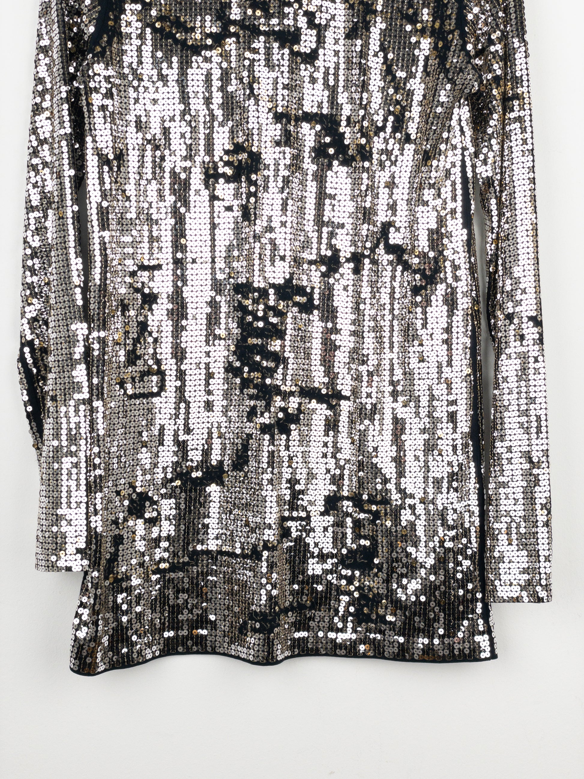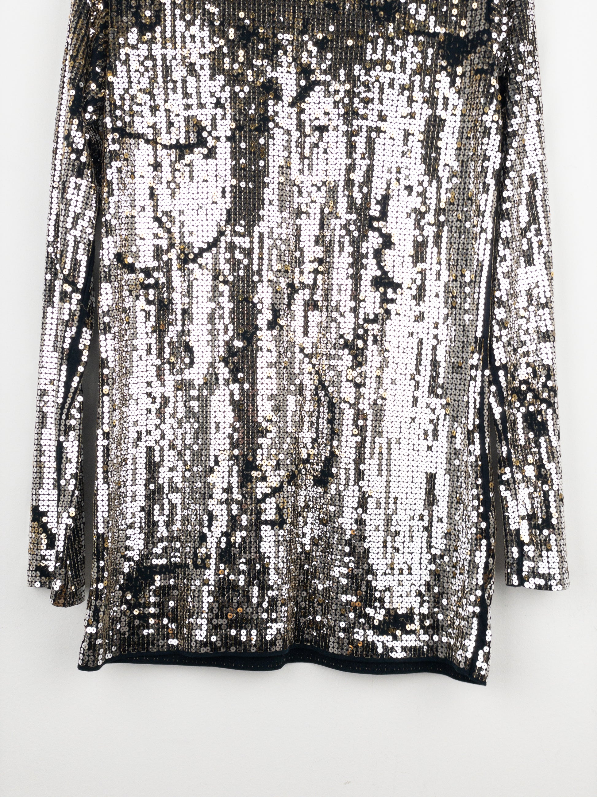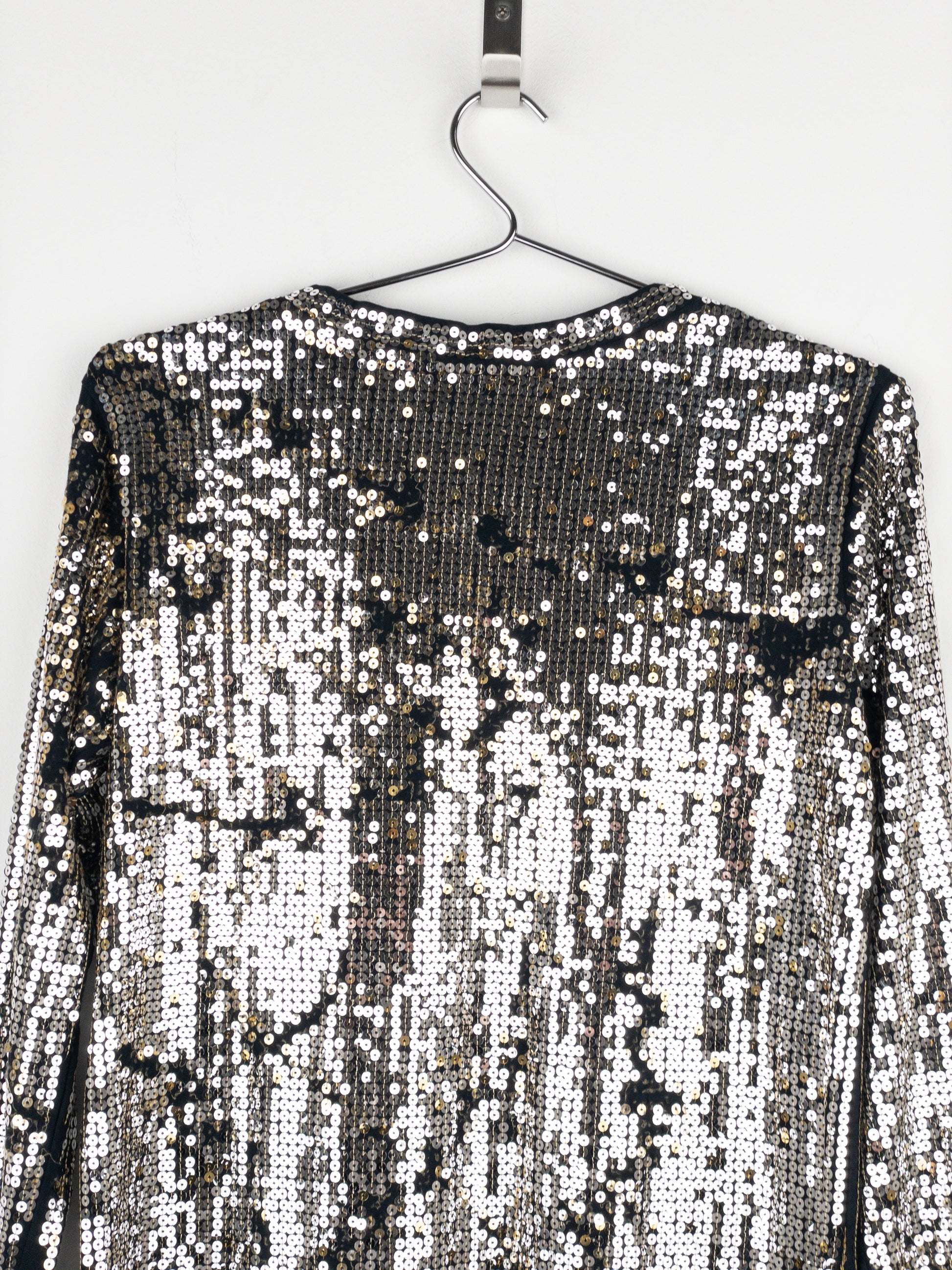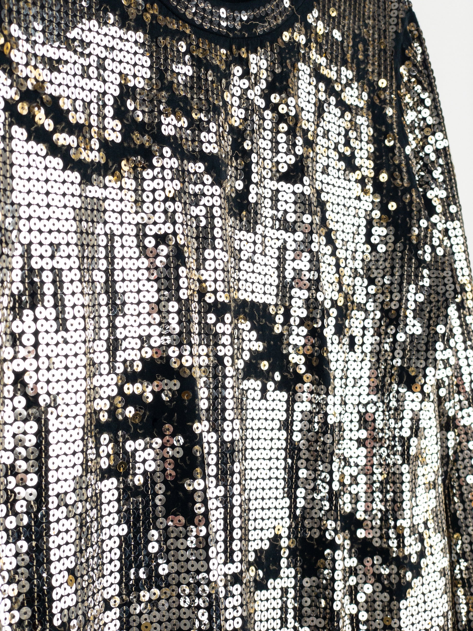 Black longsleeve shirt with silver sequins added unevenly thorughout to create a distressd and worn look, from the autumn-winter 2010 collection.