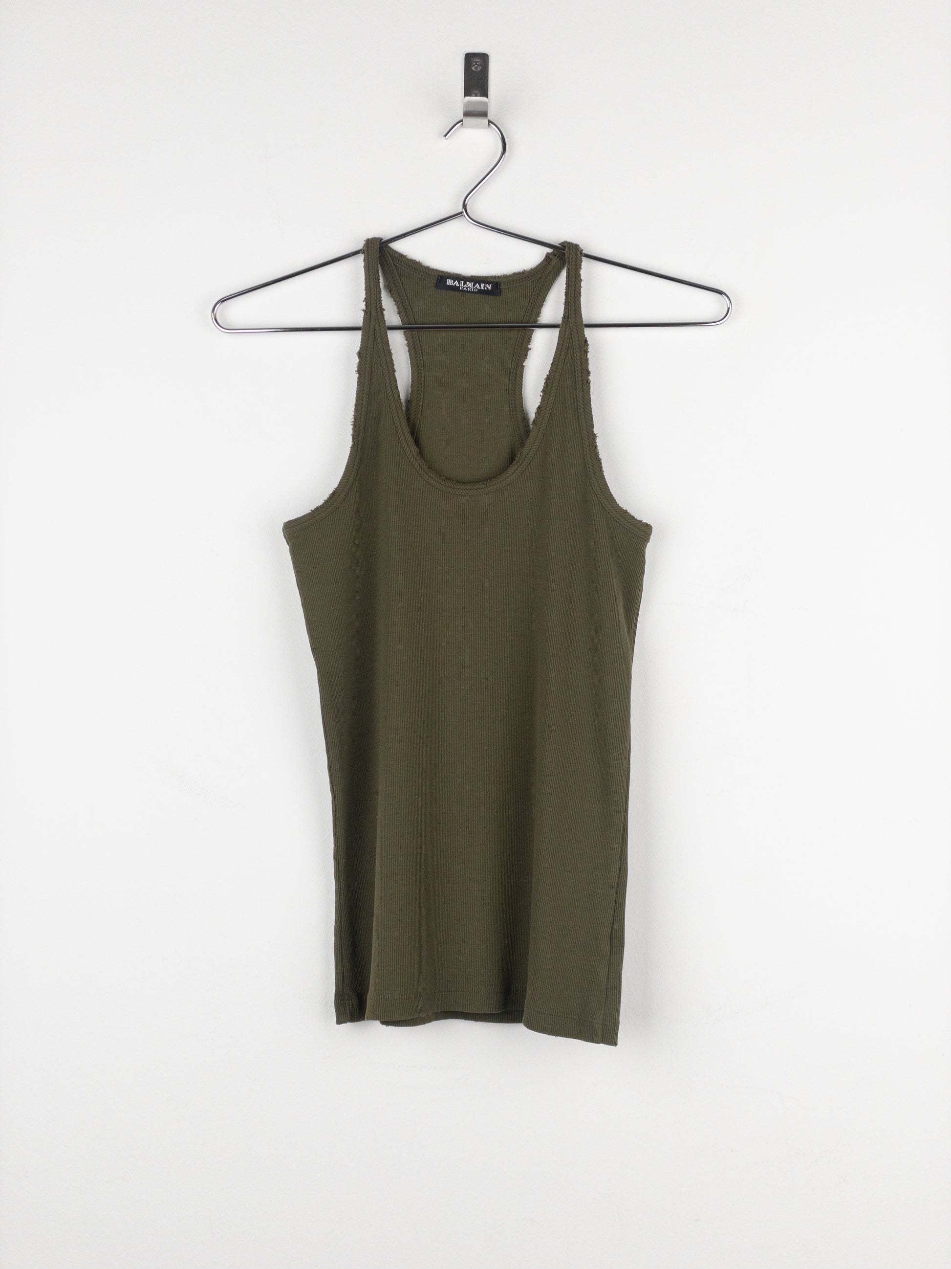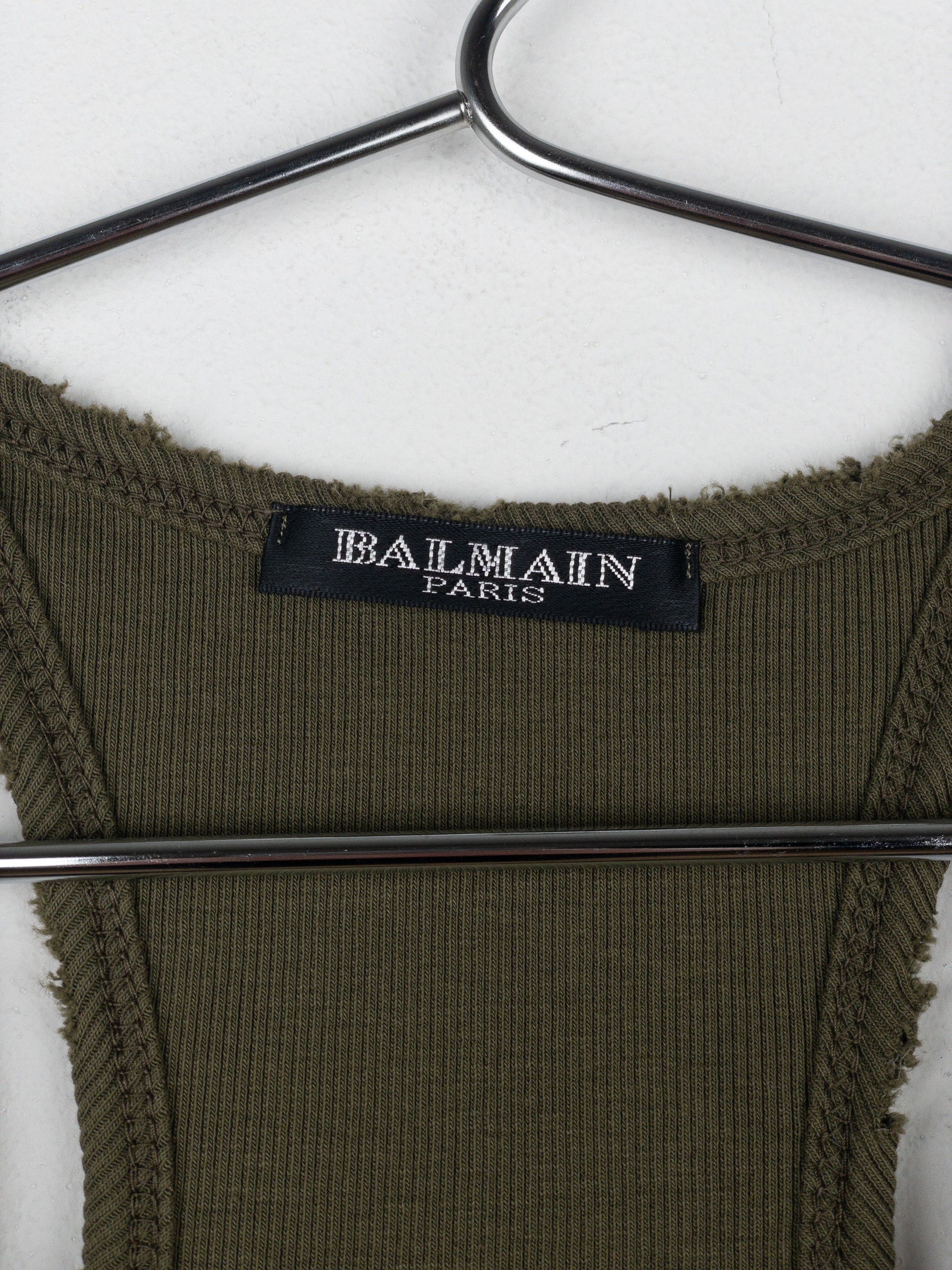 Balmain by Decarnin Distressed Ribbed Tank Top