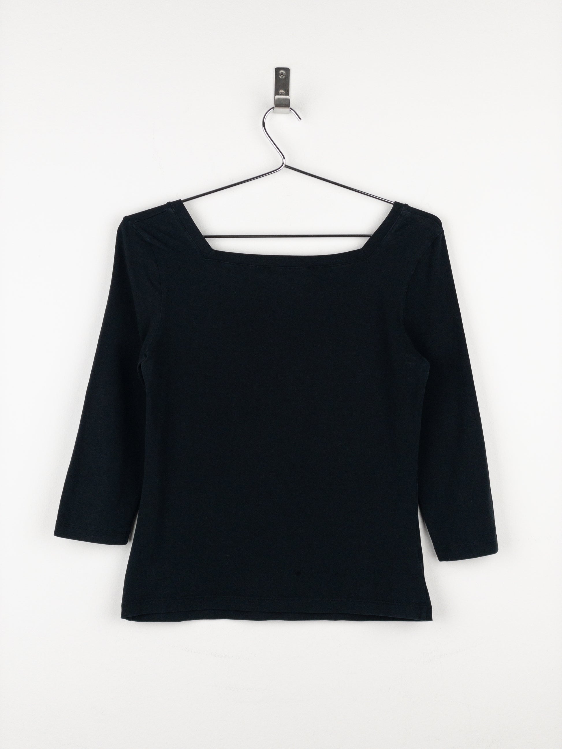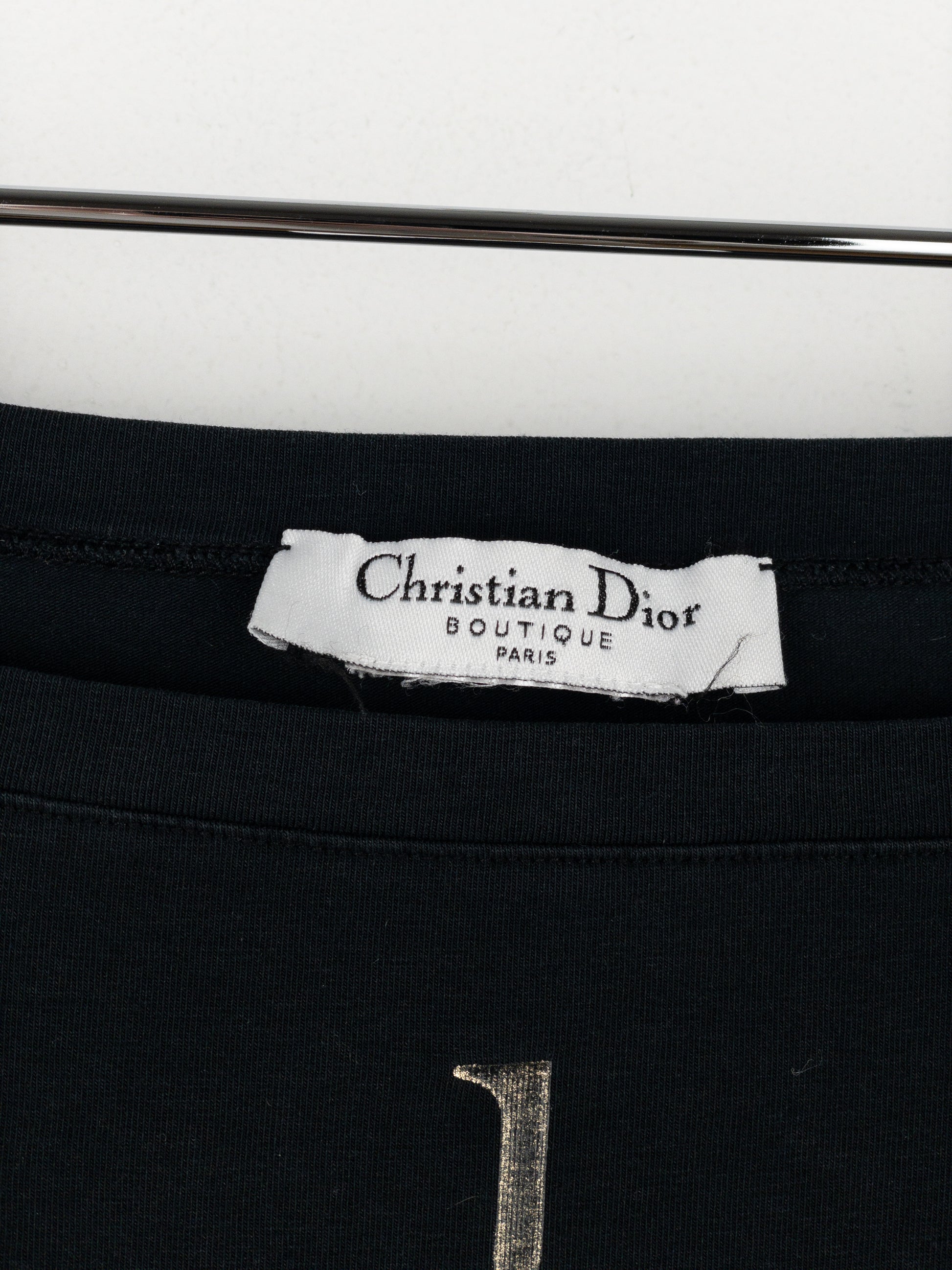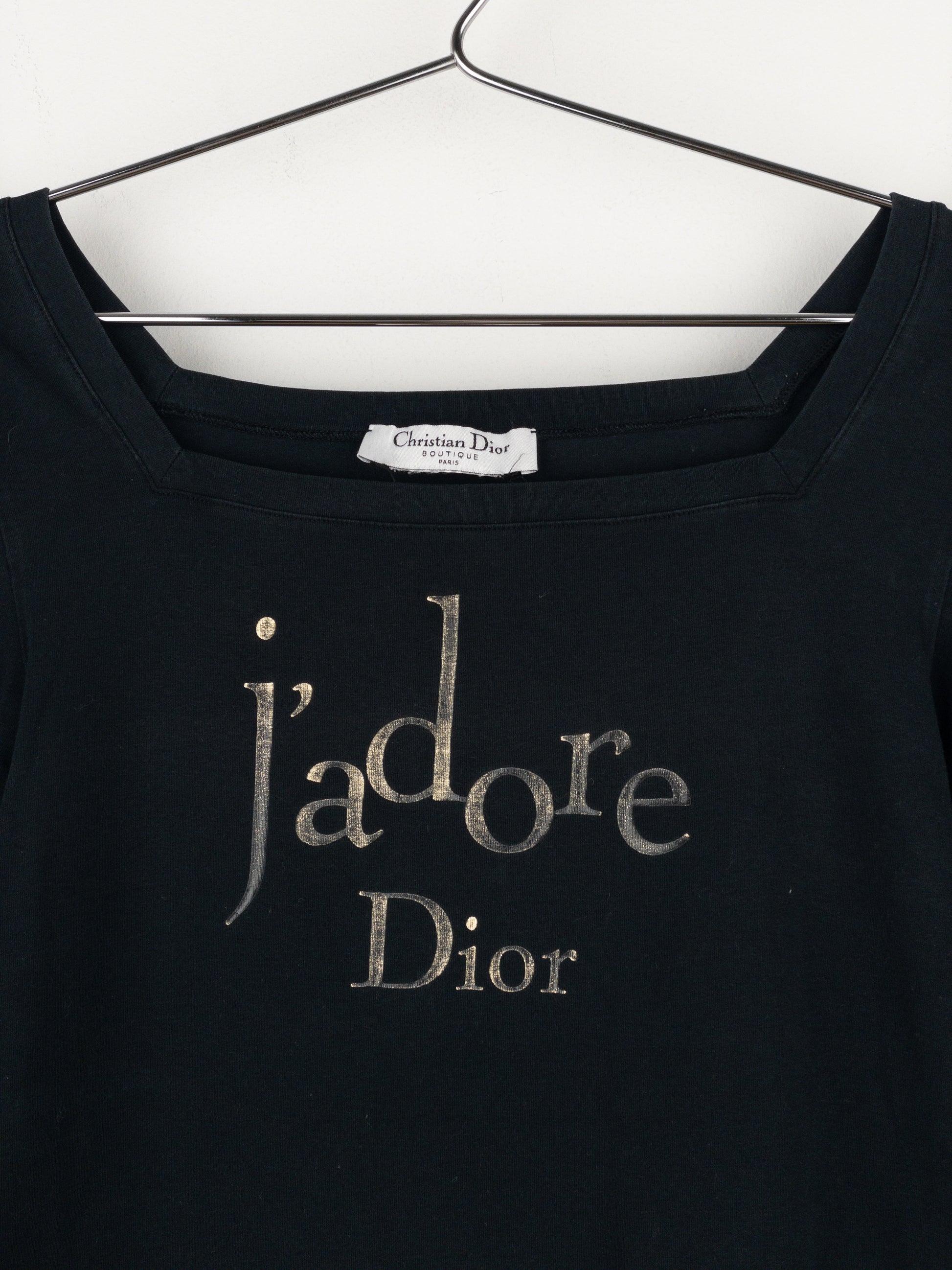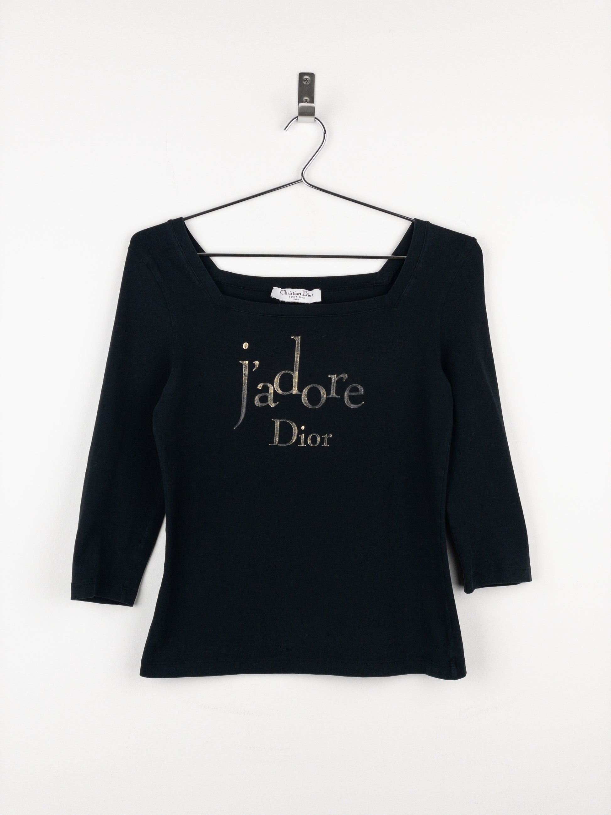 Black shirt with ‘J´adore Dior’ print in shiny black and ¾ sleeves, from the 2000s.
