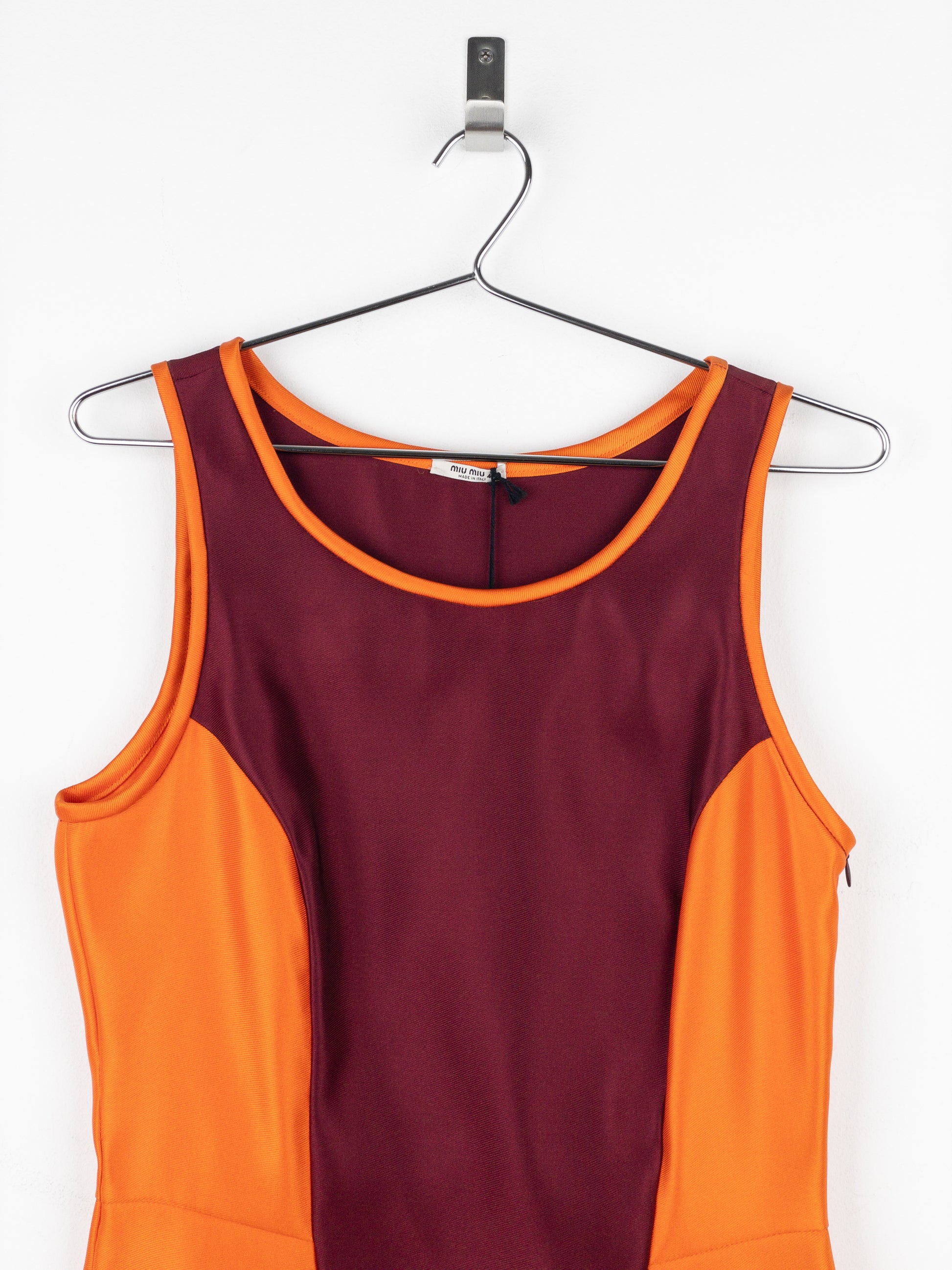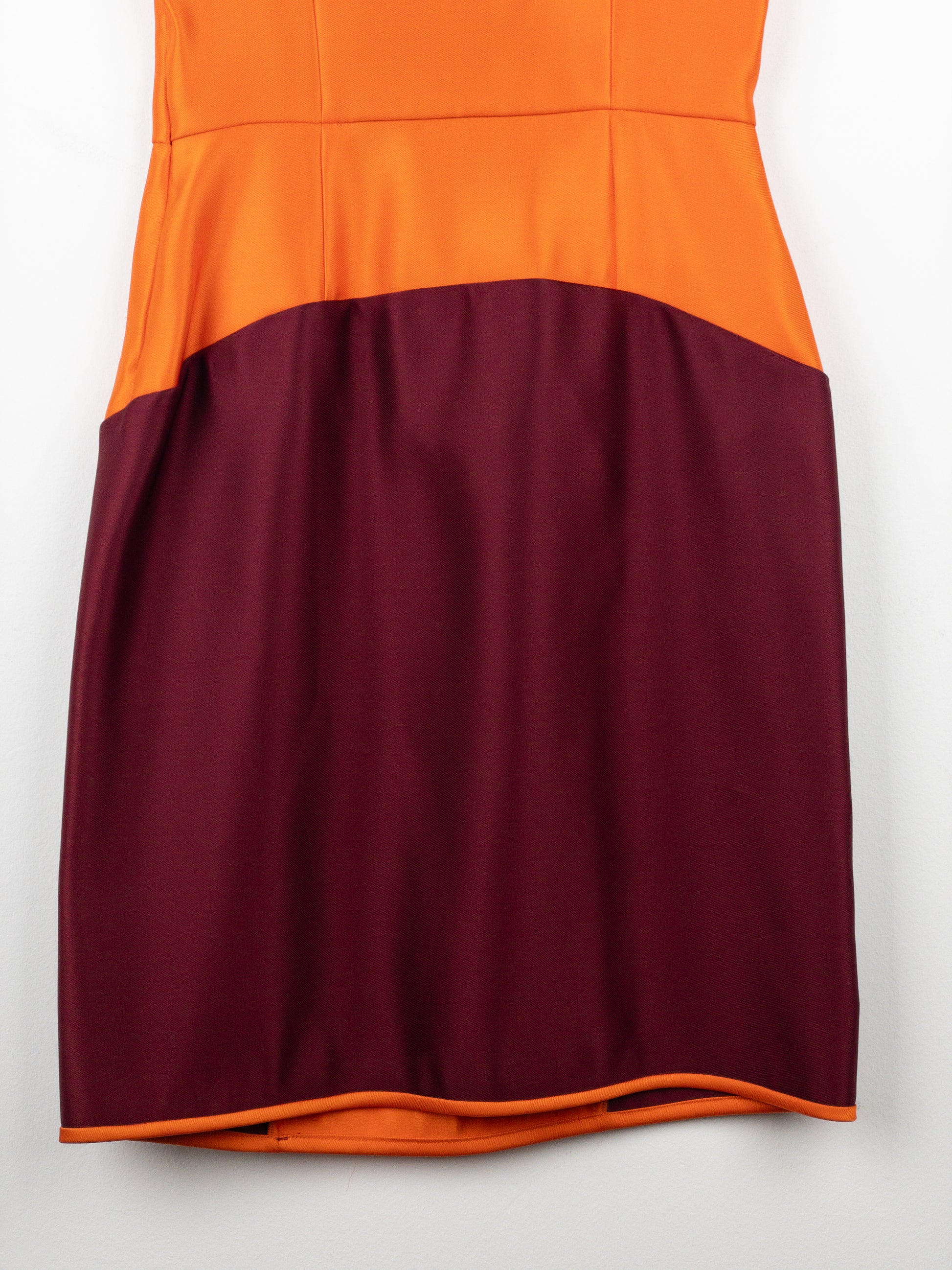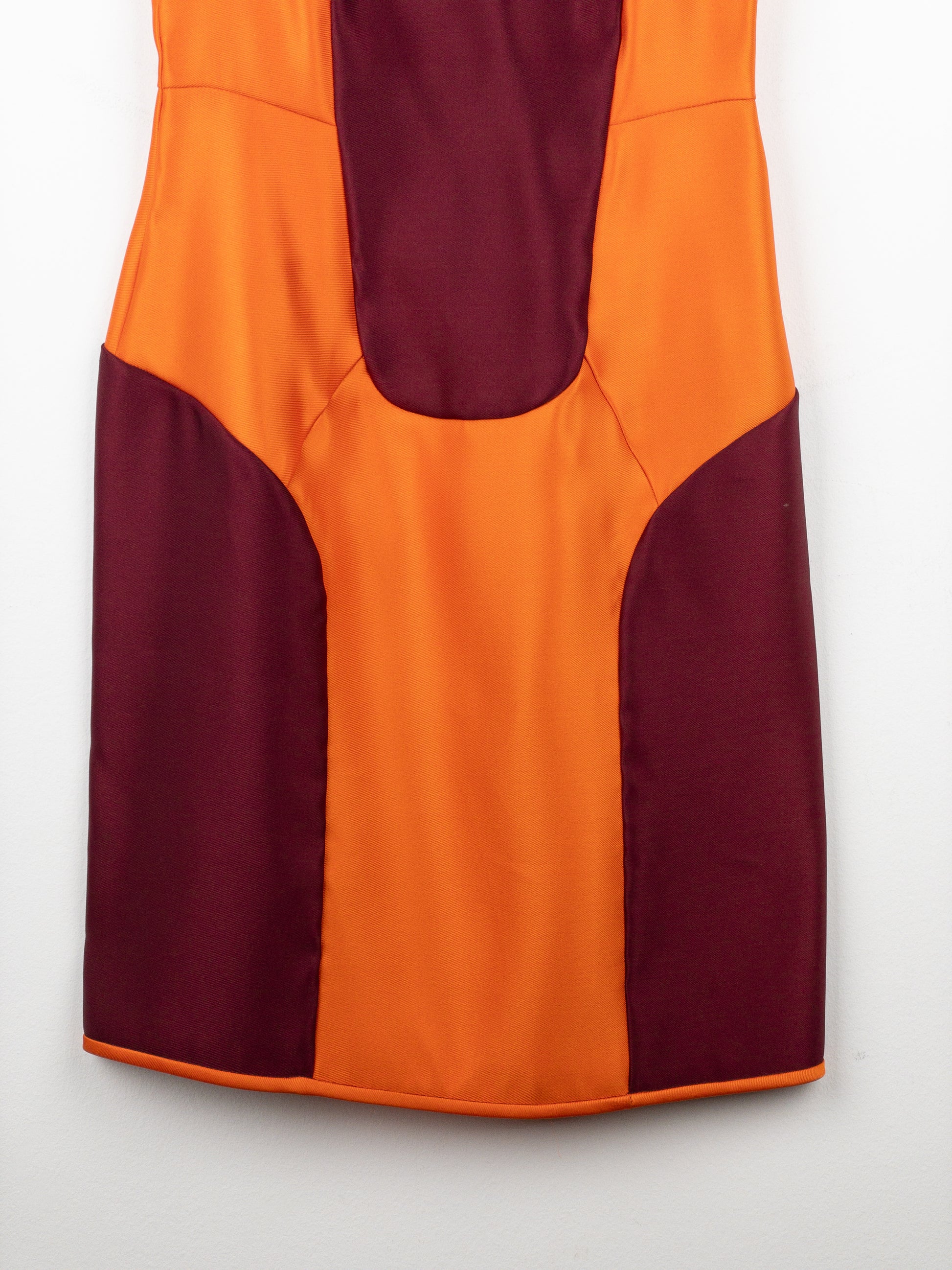 Midi-length sports dress made of orange and burgundy panels, from the autumn-winter 2008 collection.