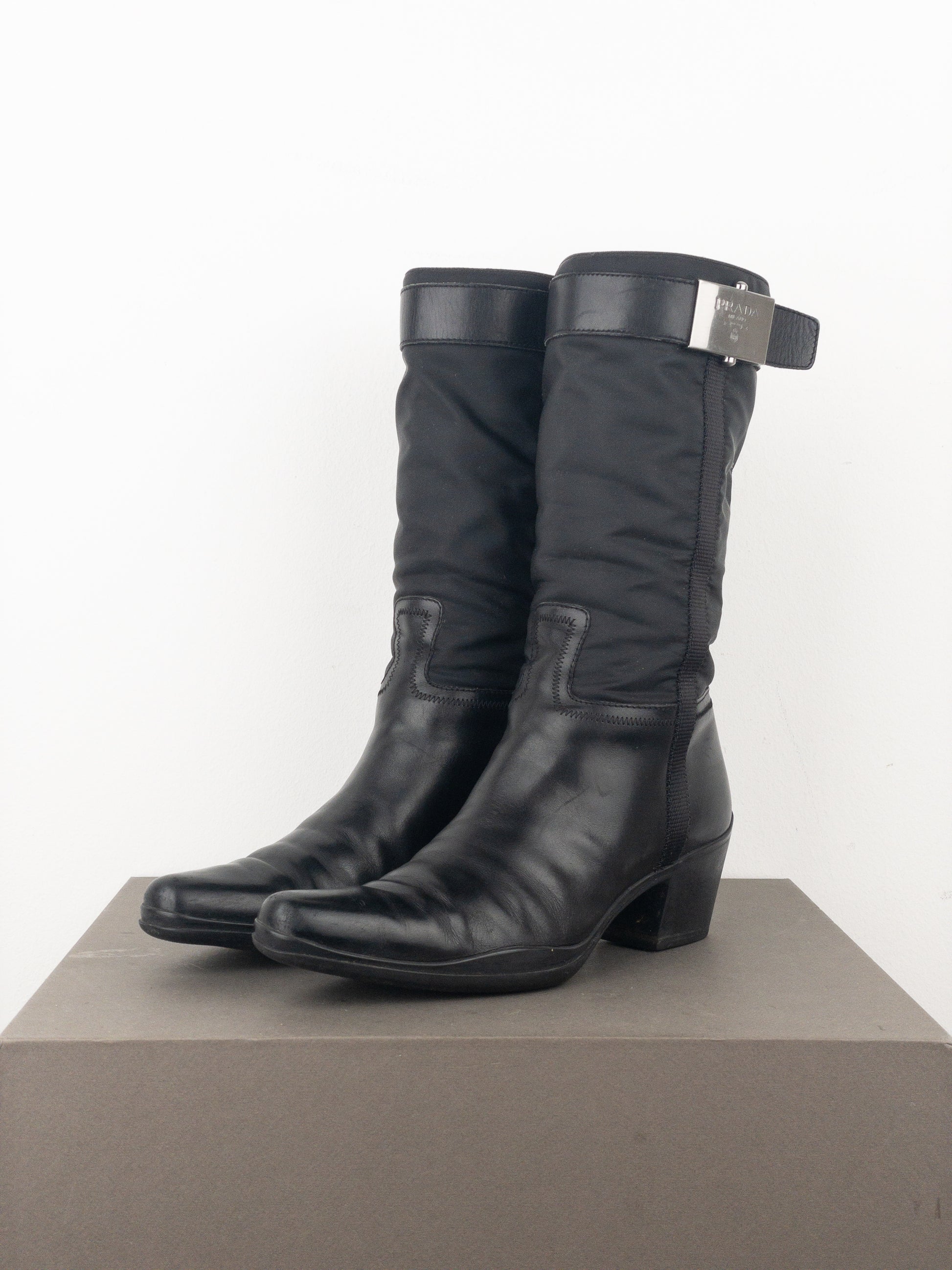 Prada 2000s Knee-High Hybrid Buckle Sports Cowboy Boots