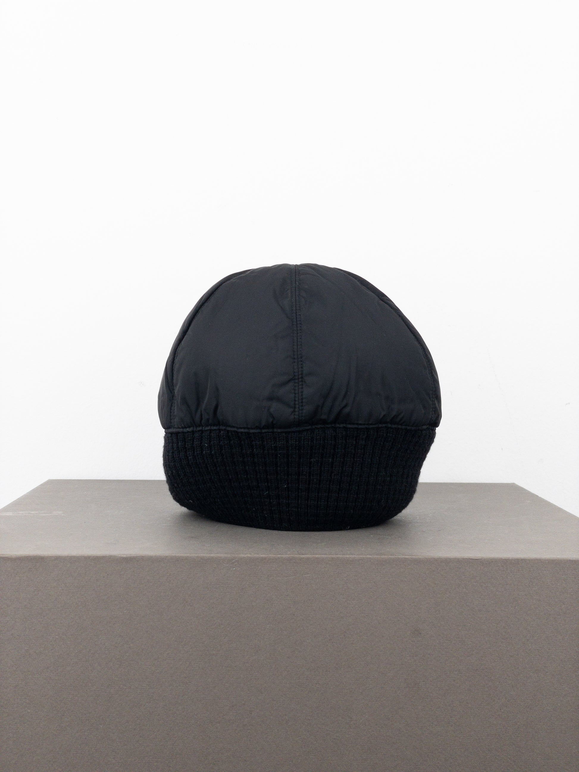 Black hybrid beanie with knit headband and the signature red “Linea Rossa” tab on the front, from the 2000s.