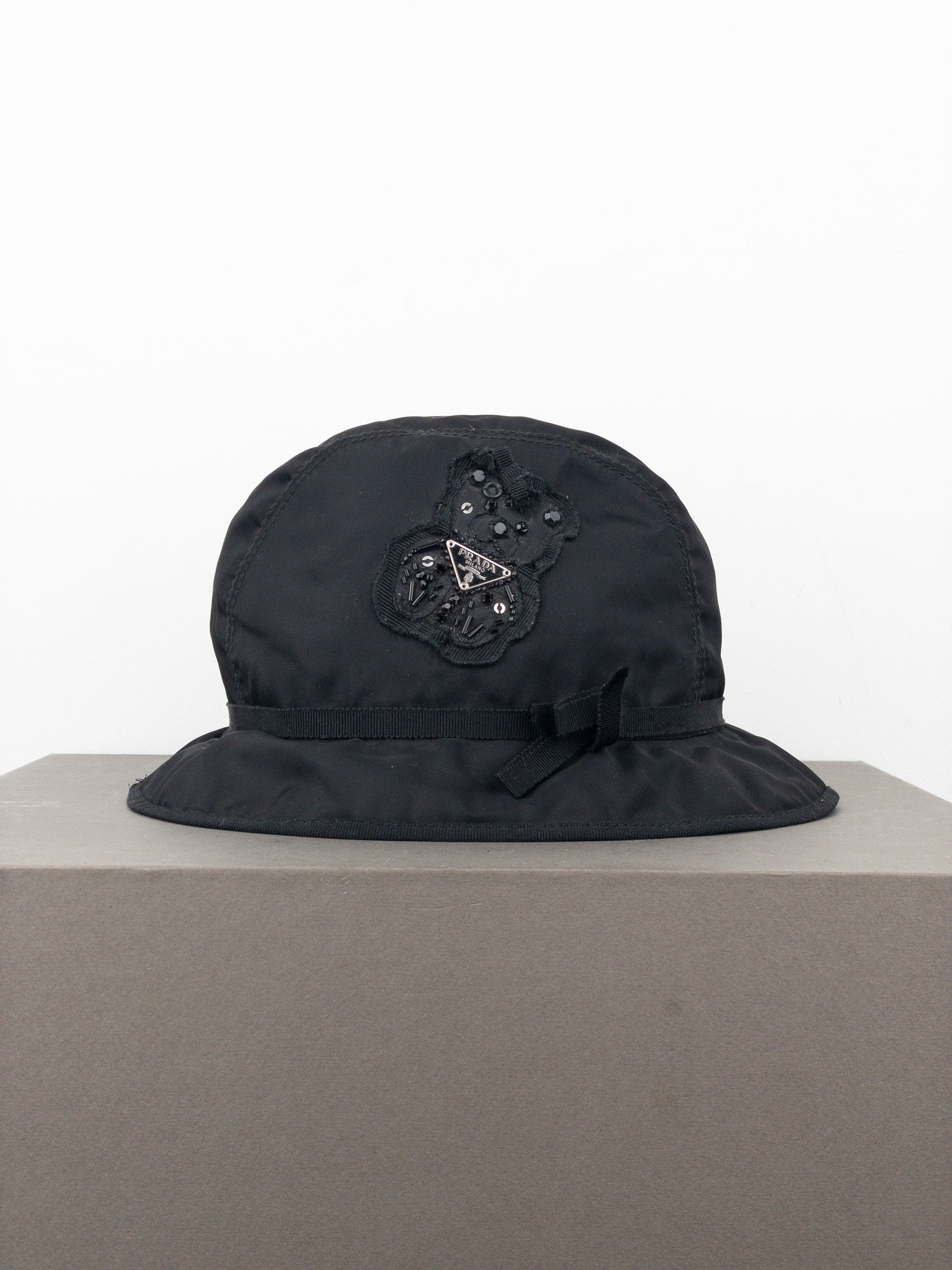 Prada 2000s Rhinestone Triangle Logo Bucket Hat