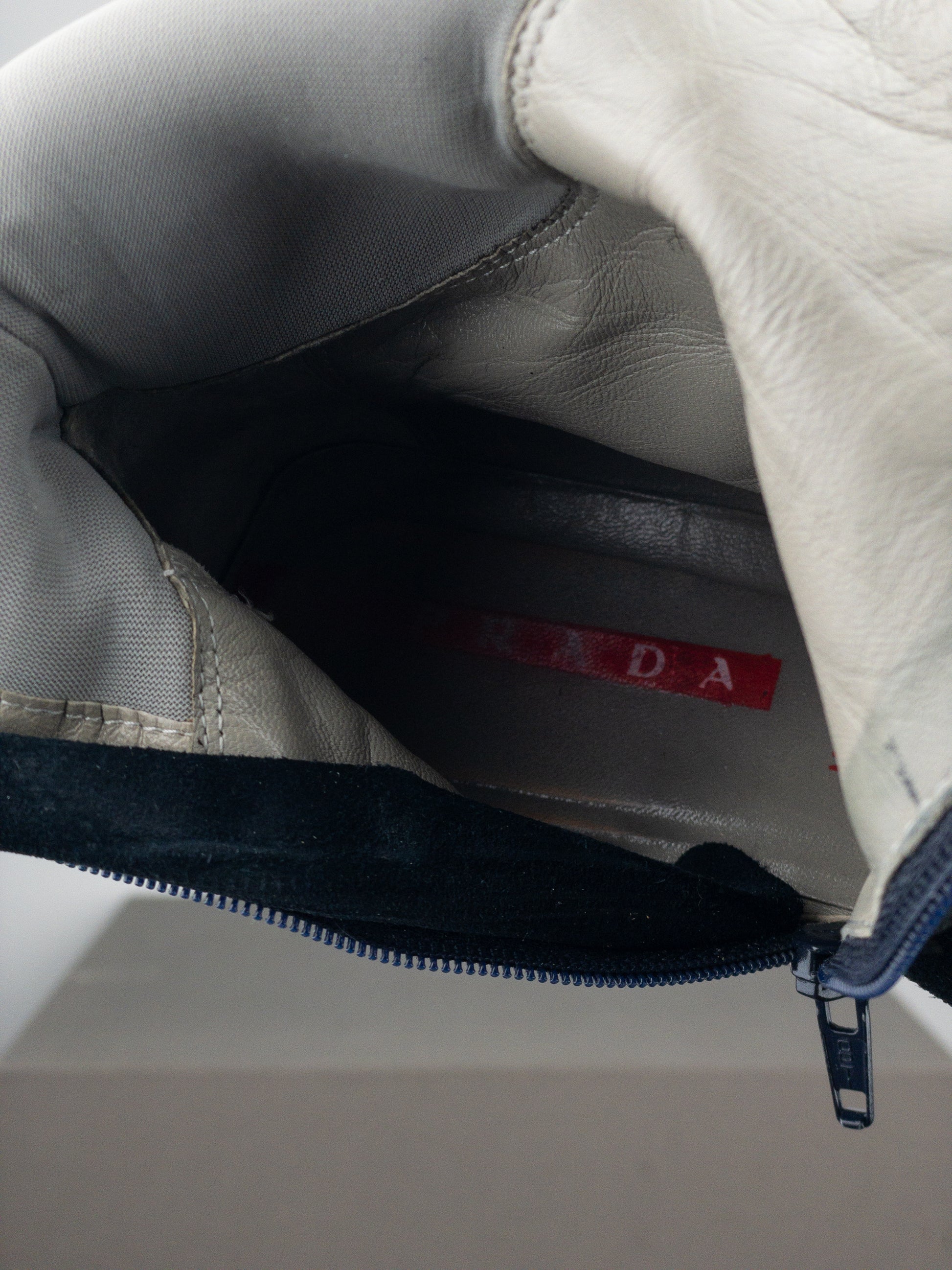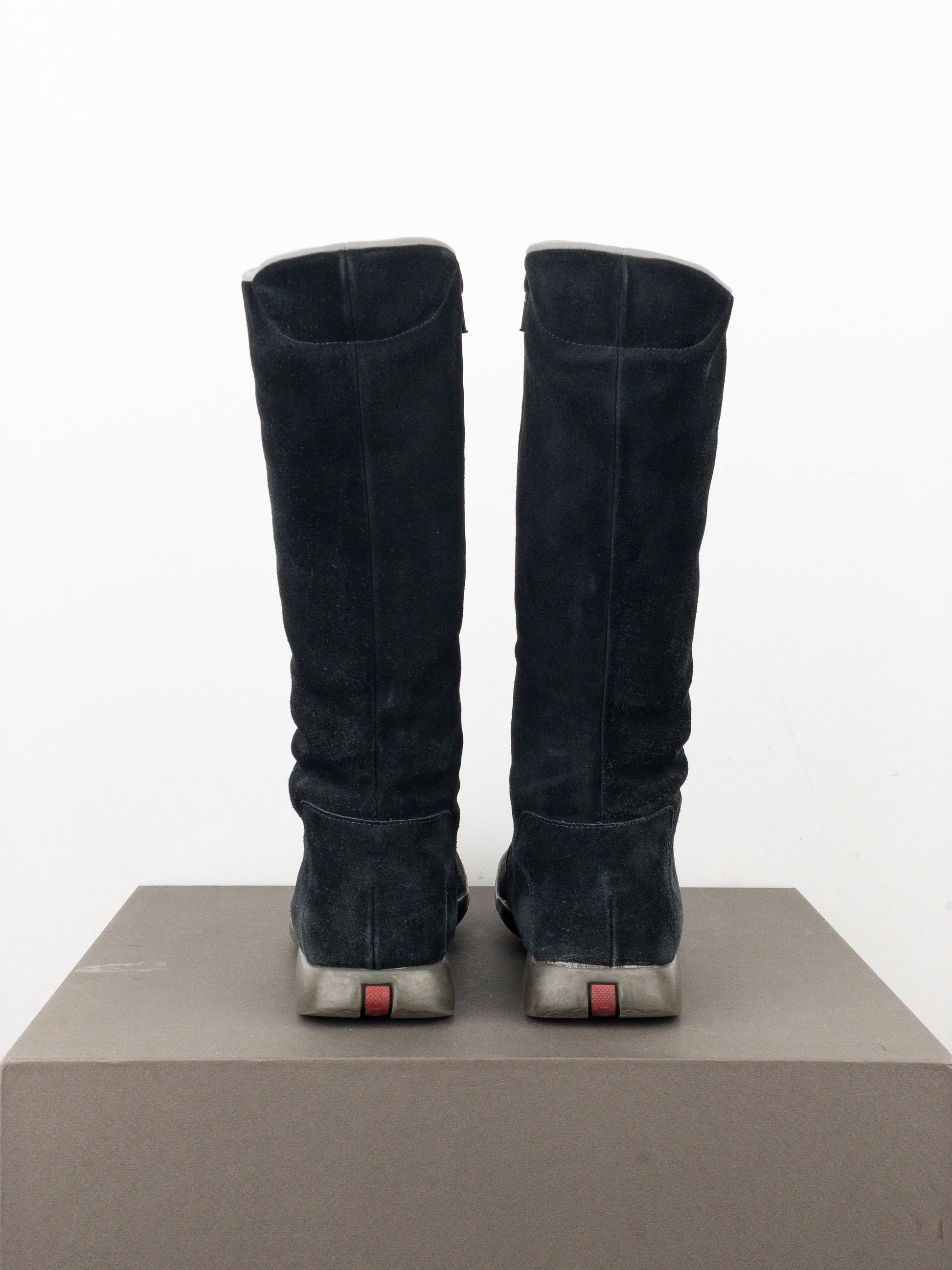 Prada AW99 Suede Knee High Square Toe Biker Moto Sports Boots