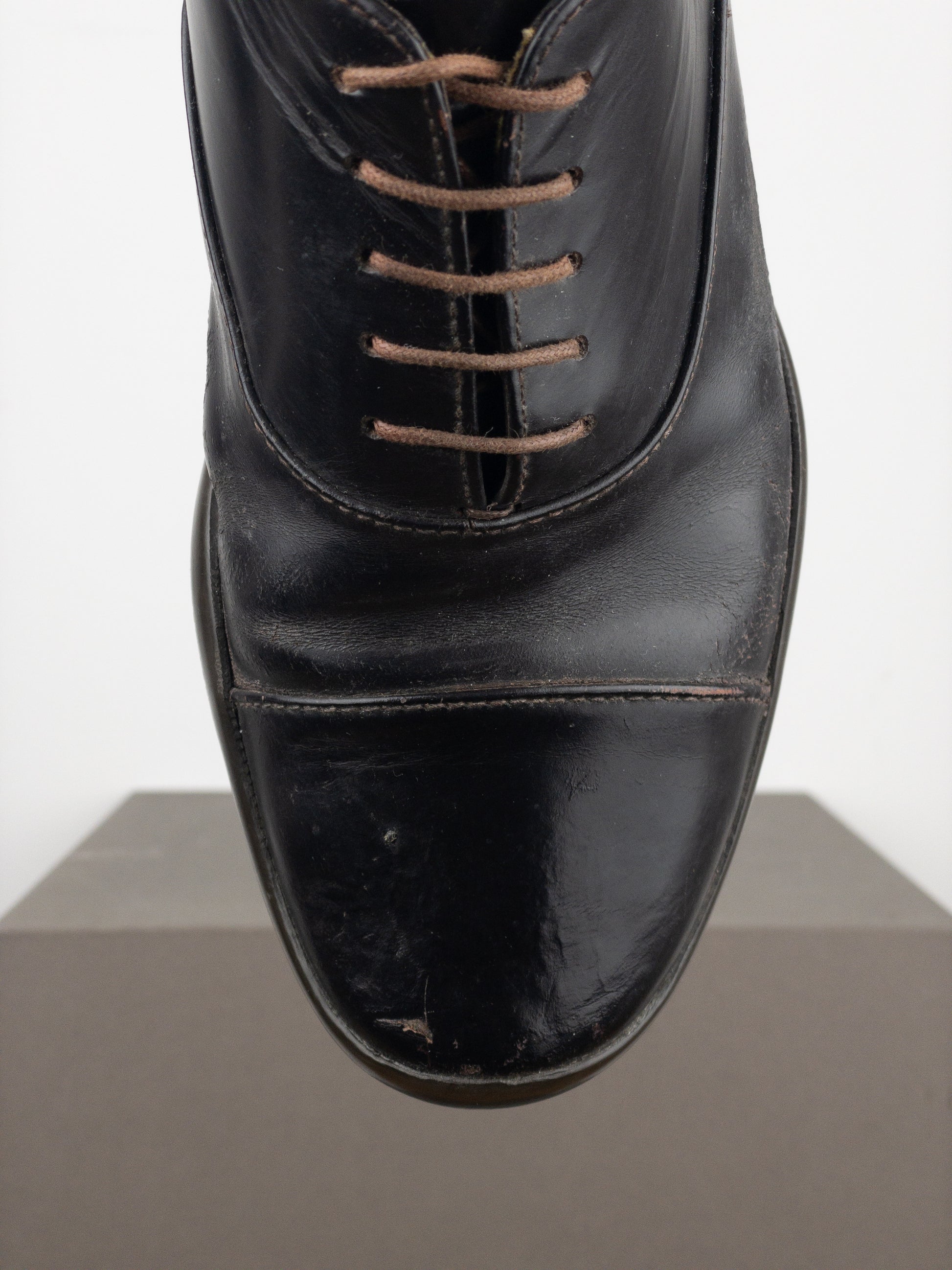 Black/Brown leather derby shoes with a rounded toe and chunky Vibram® sole, from the autumn-winter 1999 collection.