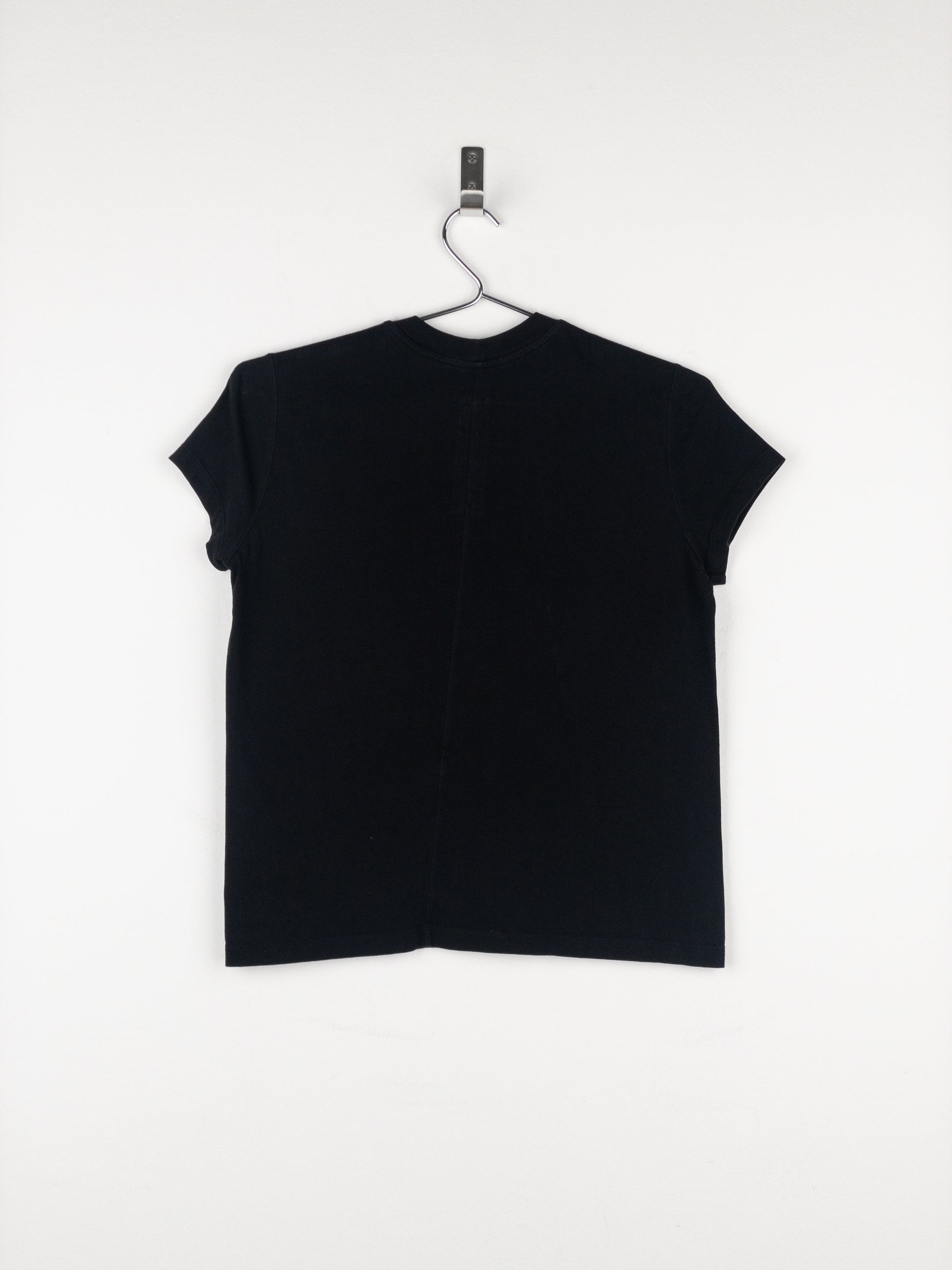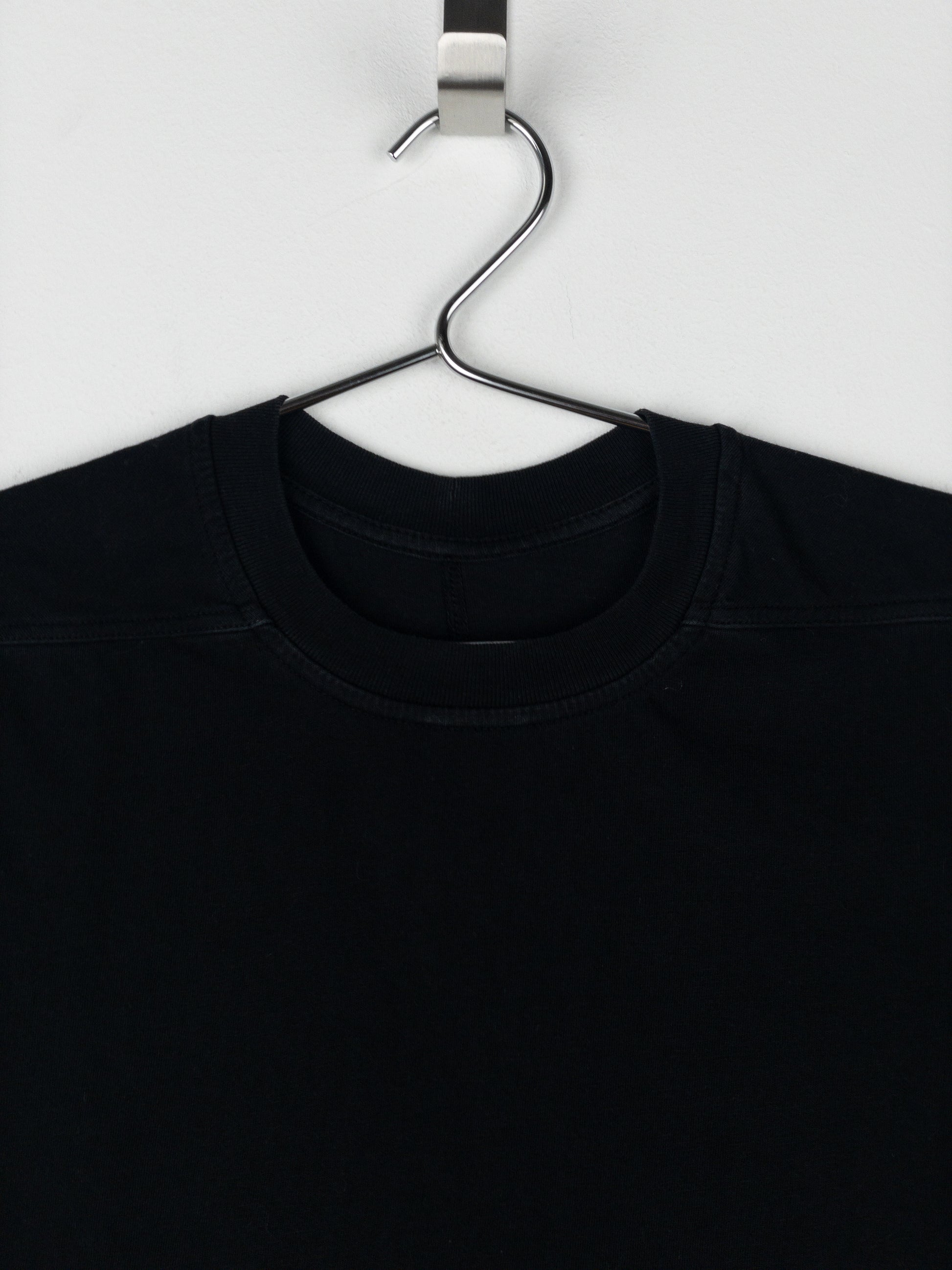 Heavy-weight t-shirt in black, featuring the signature “Level” seams across the shoulders and a thick ribbed collar, from the spring-summer 2018 collection.