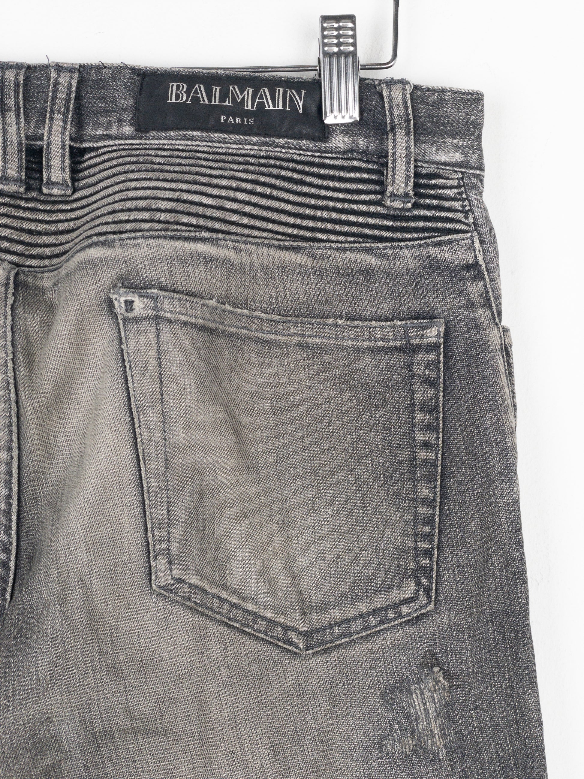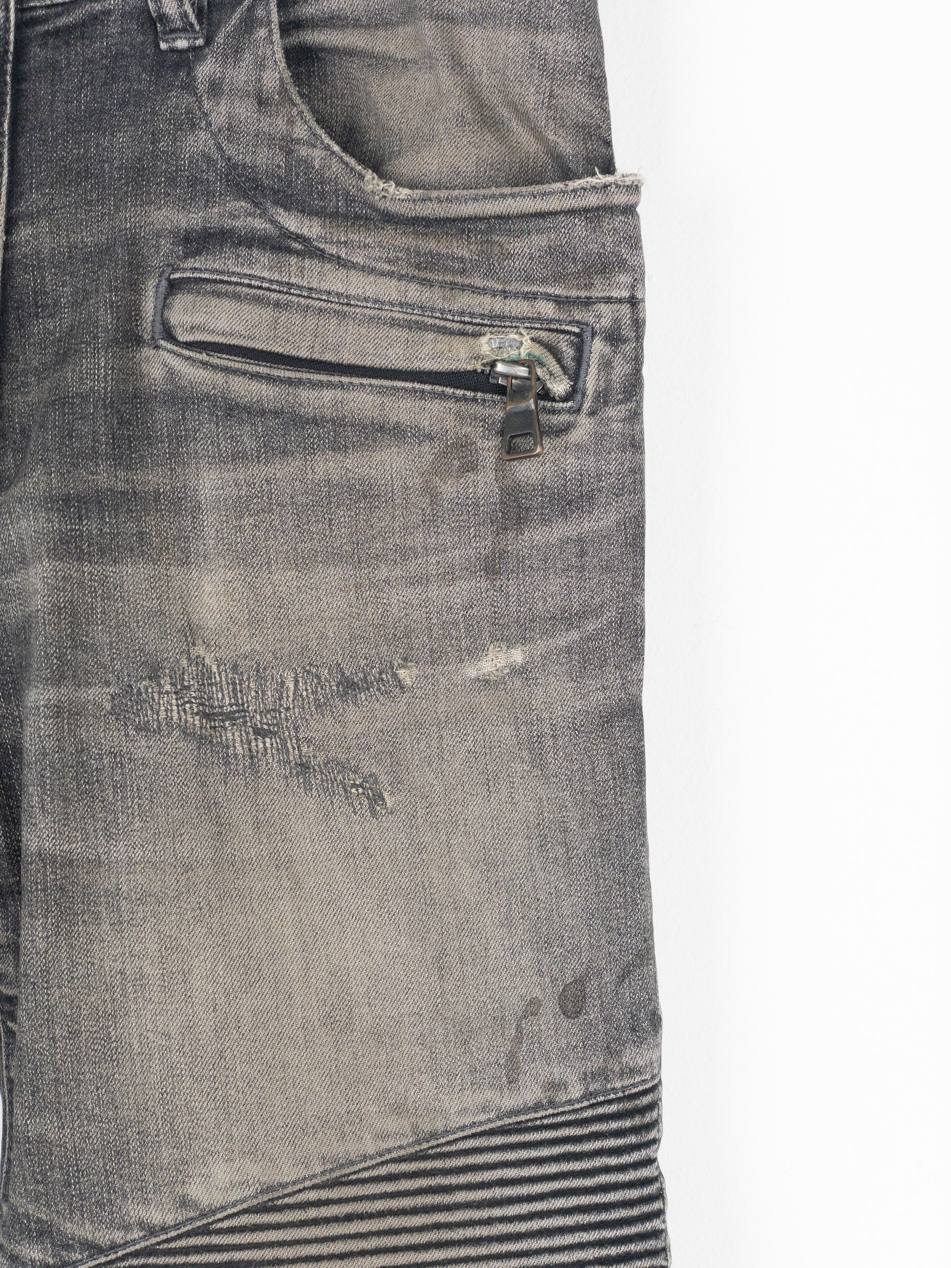 Balmain Dirt-Wash Distressed Biker Denim Jeans