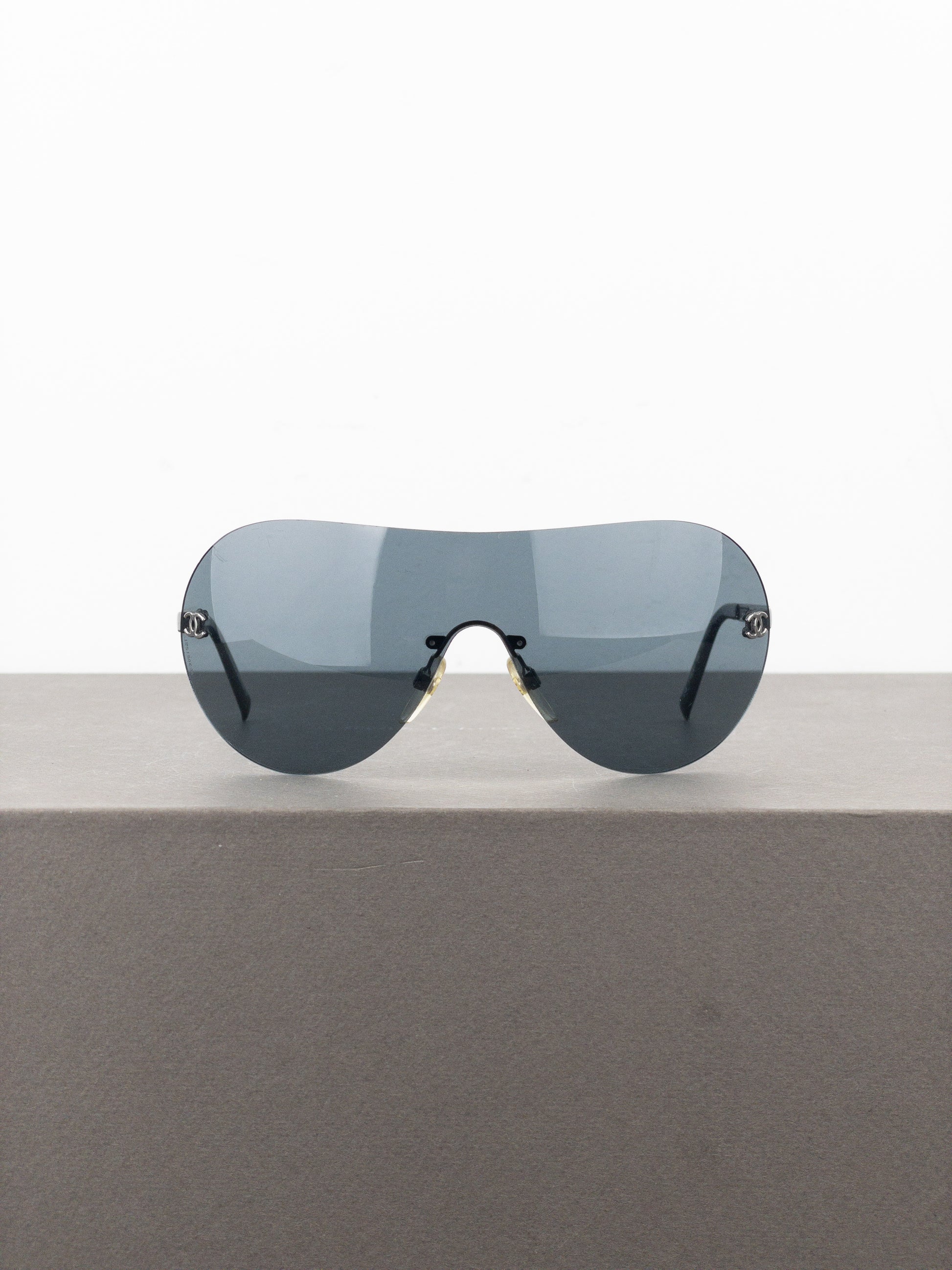 Chanel 2000s ‘108/87’ CC Rimless Aviator Wrap Mask Shield Sunglasses