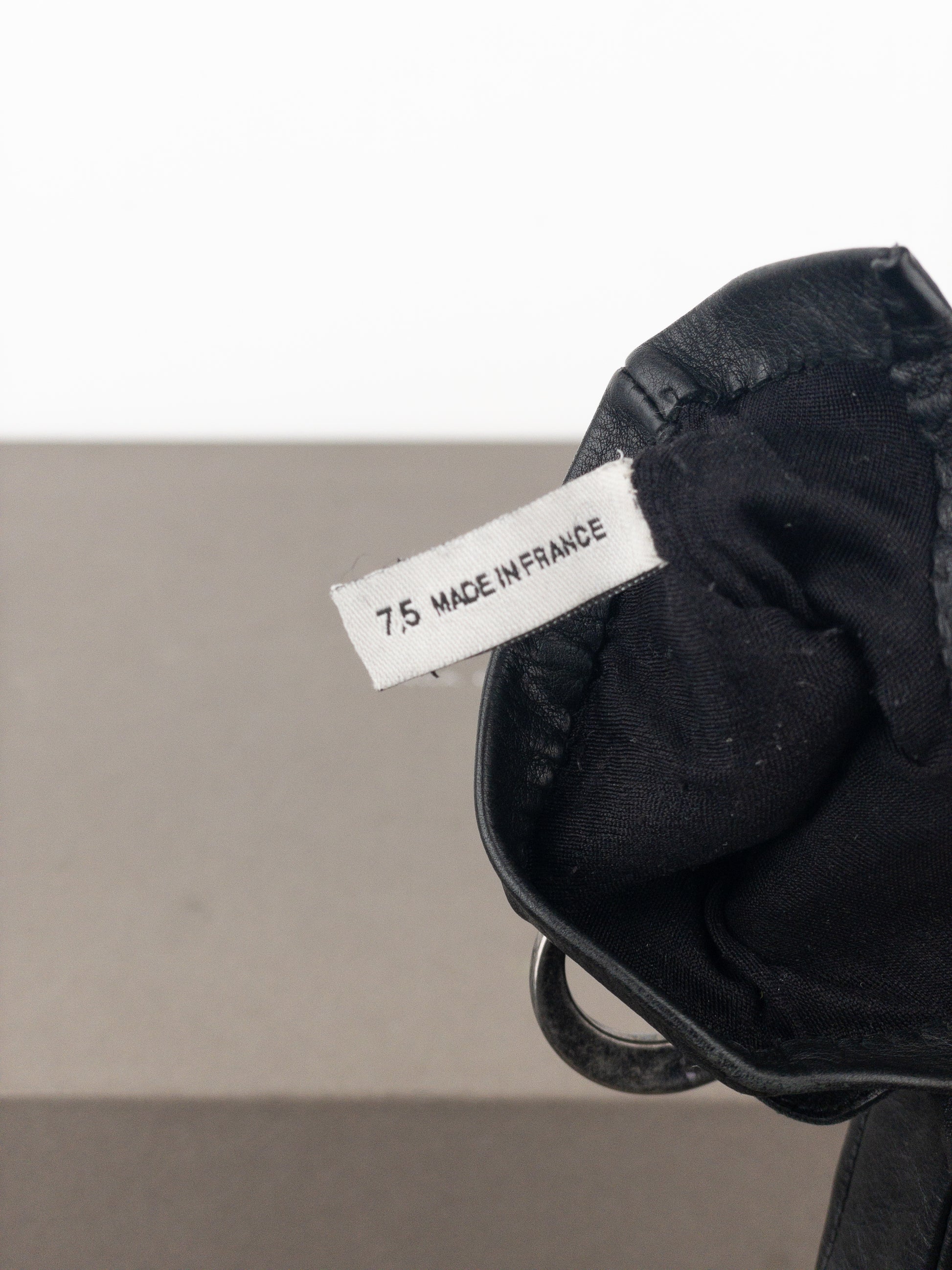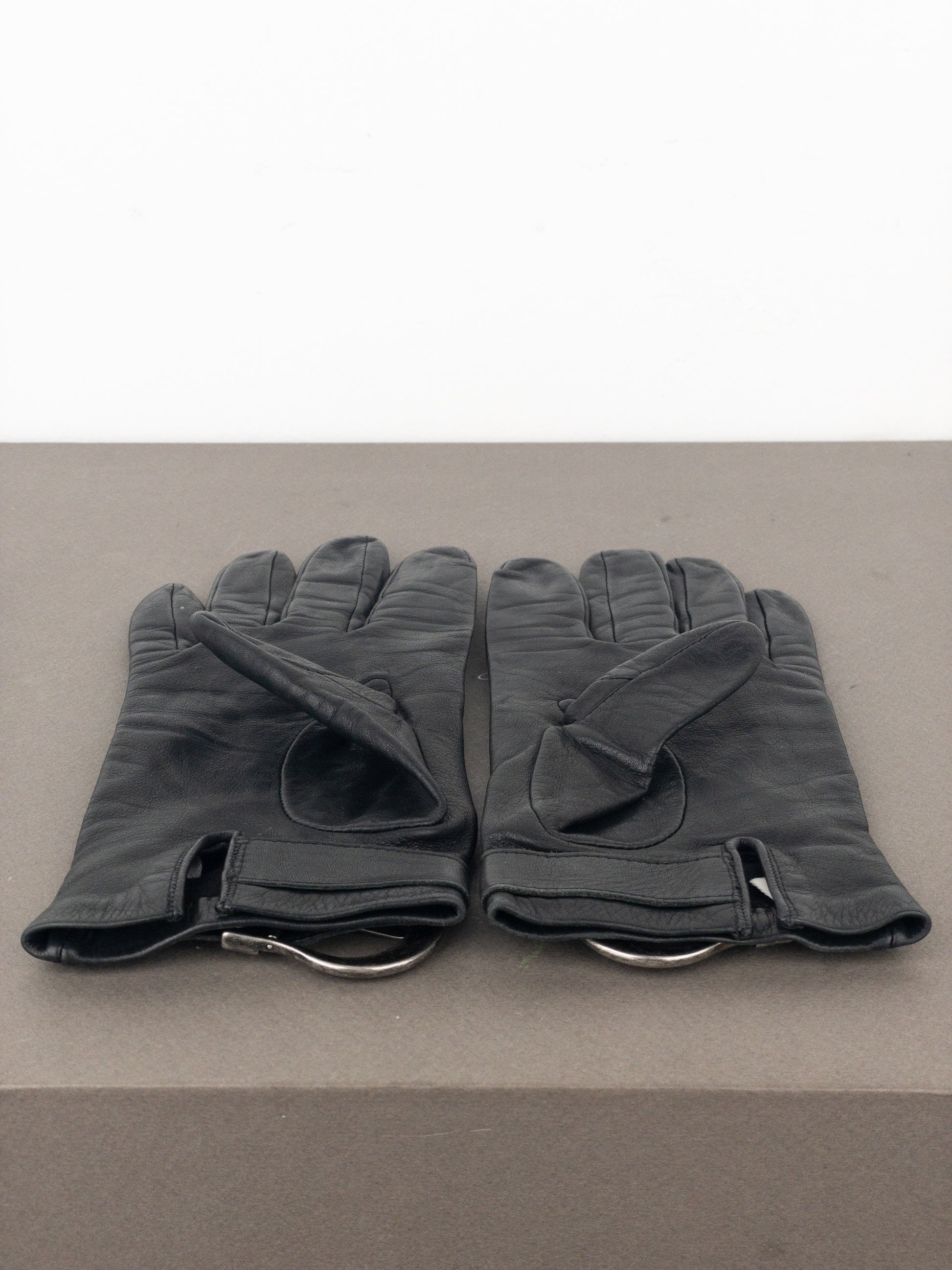 Black leather gloves with signature ‘Gaucho’ details and buckle in aged silver color, from the spring-summer 2006 collection.