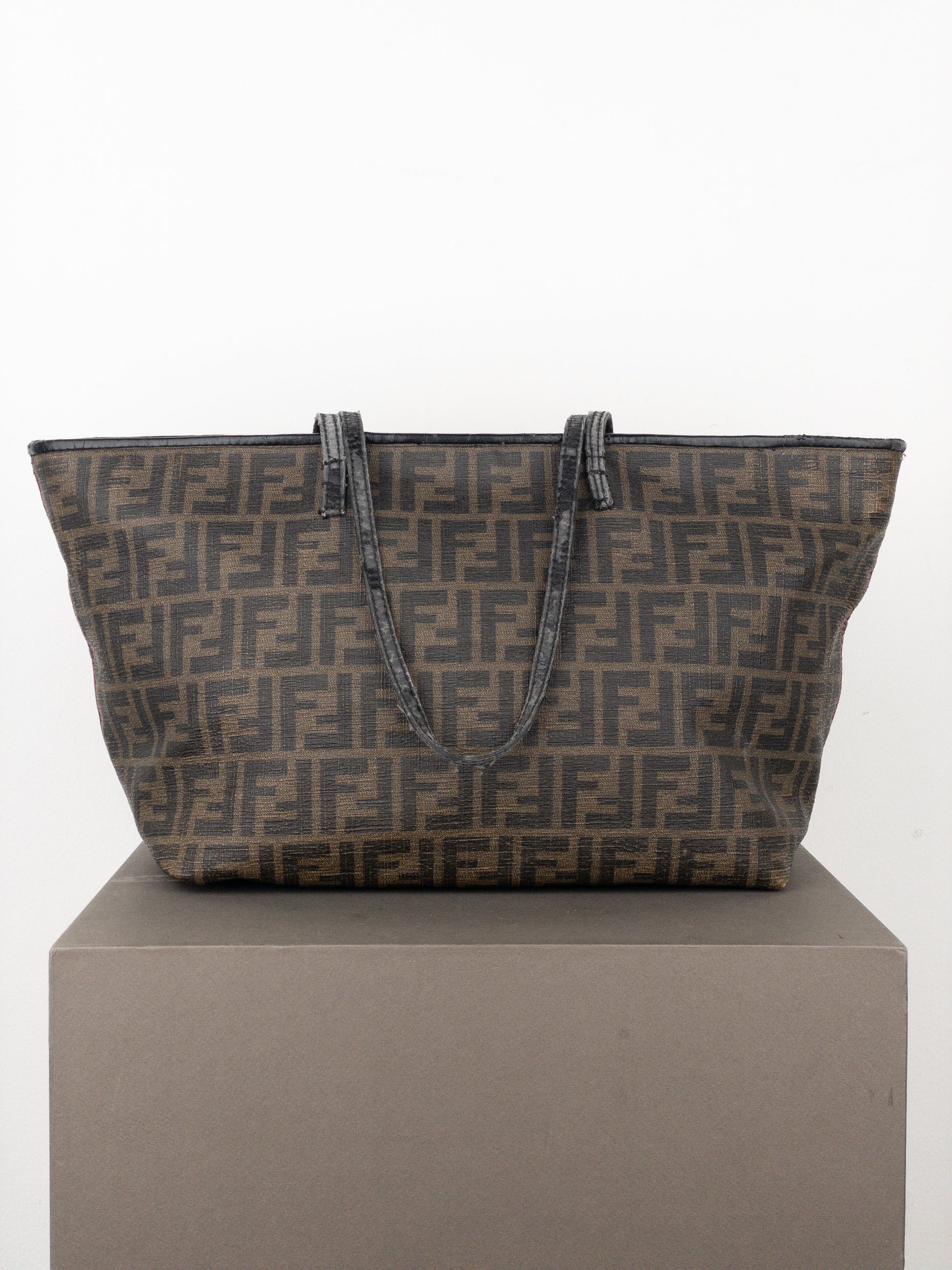 Dark brown shopper handbag in coated canvas with ‘Zucca’ monogram thorughout, from the 2000s.