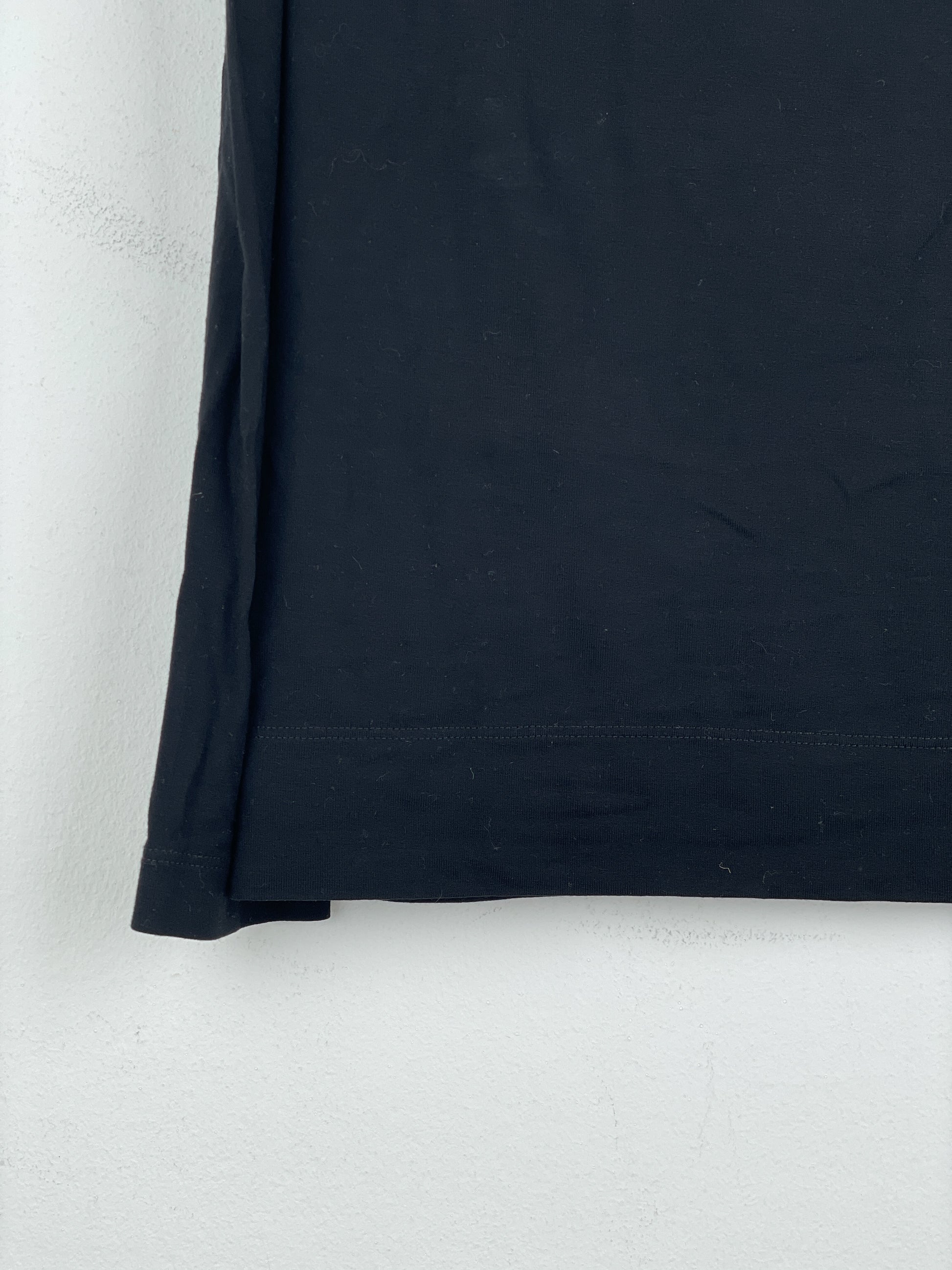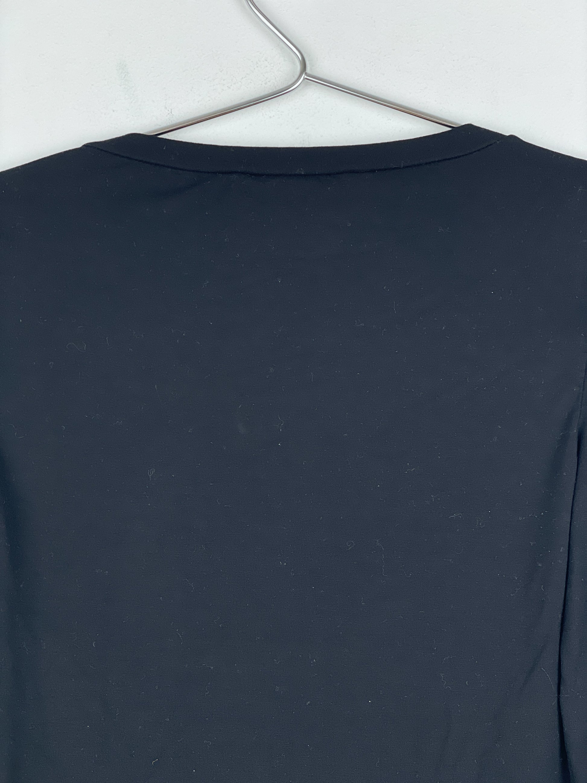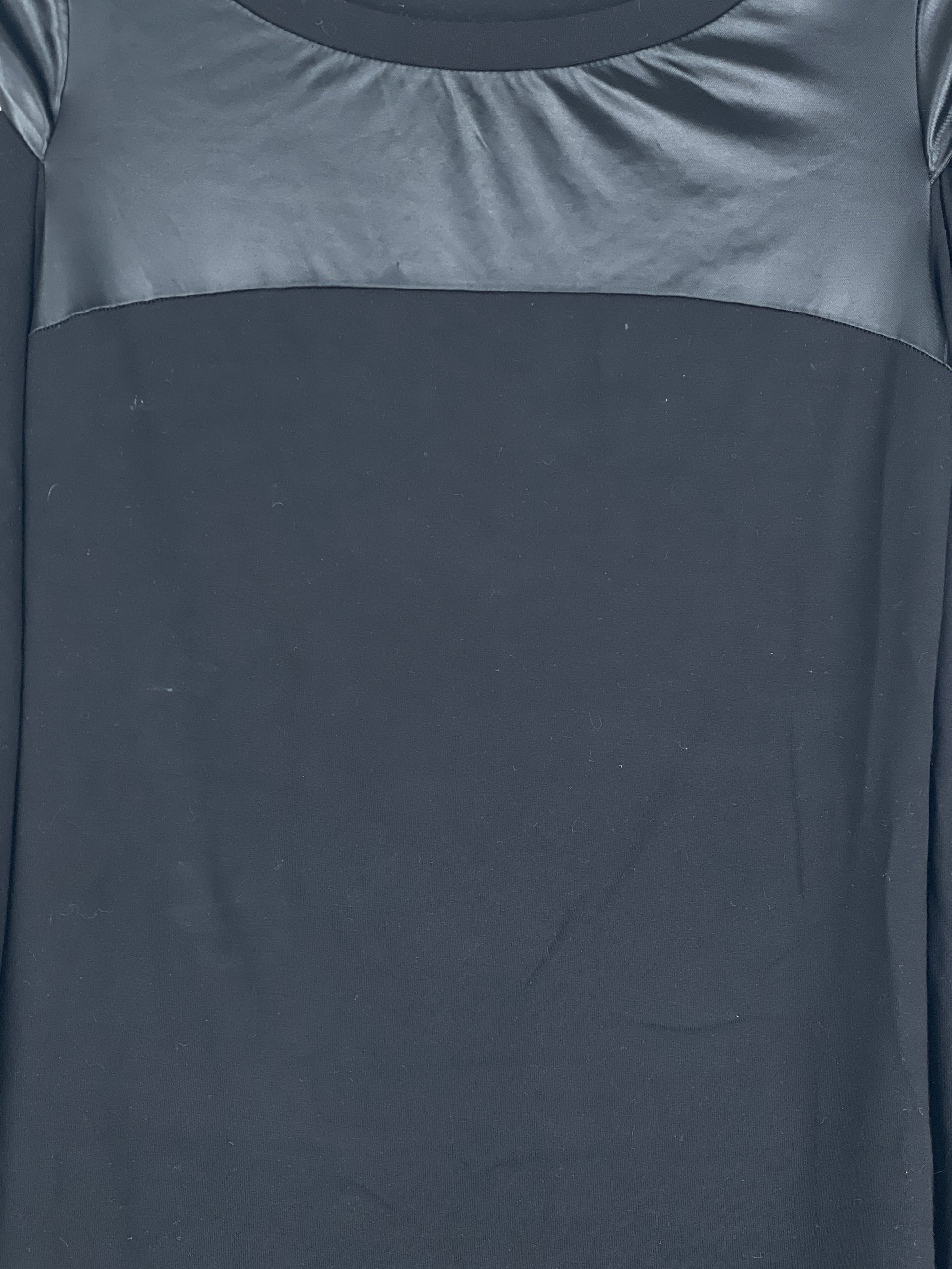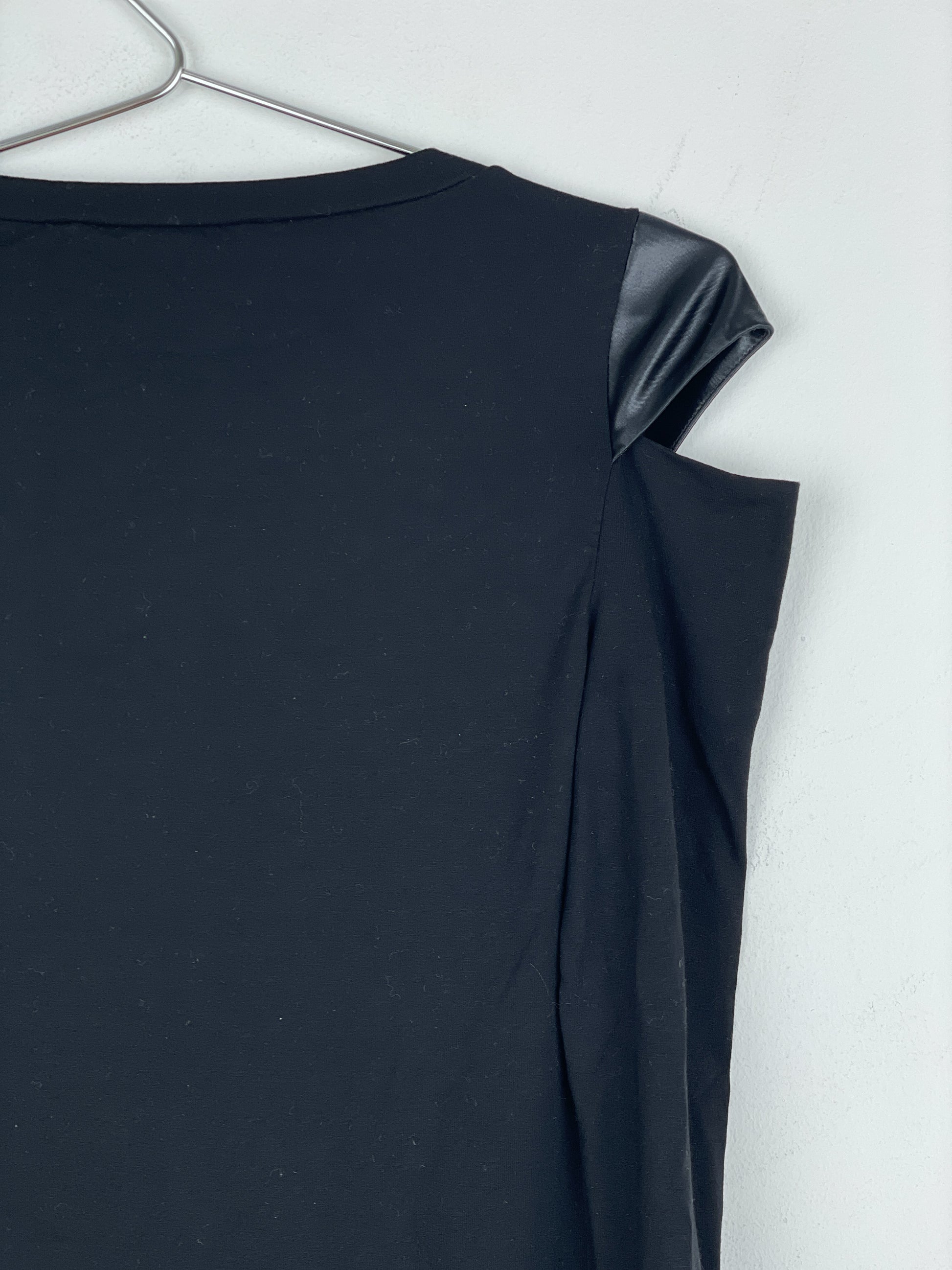 Black longsleeve top with cutouts at the shoulders and a panel with shiny finish across the bust, from the 1990s.