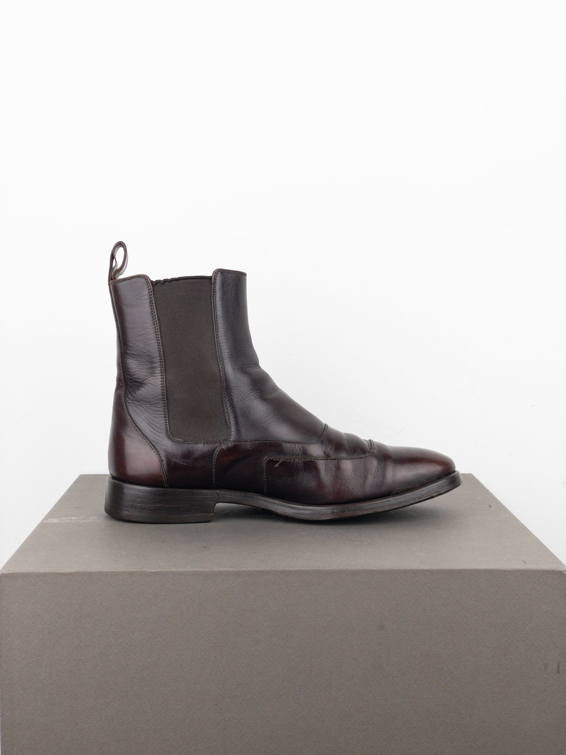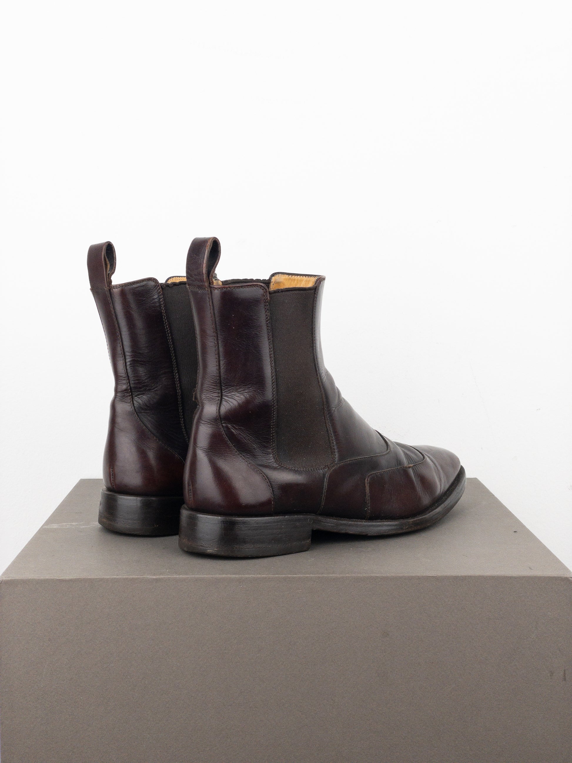 Dark brown leather chelsea boots with a multi-layer panelled upper, from the 1990s.