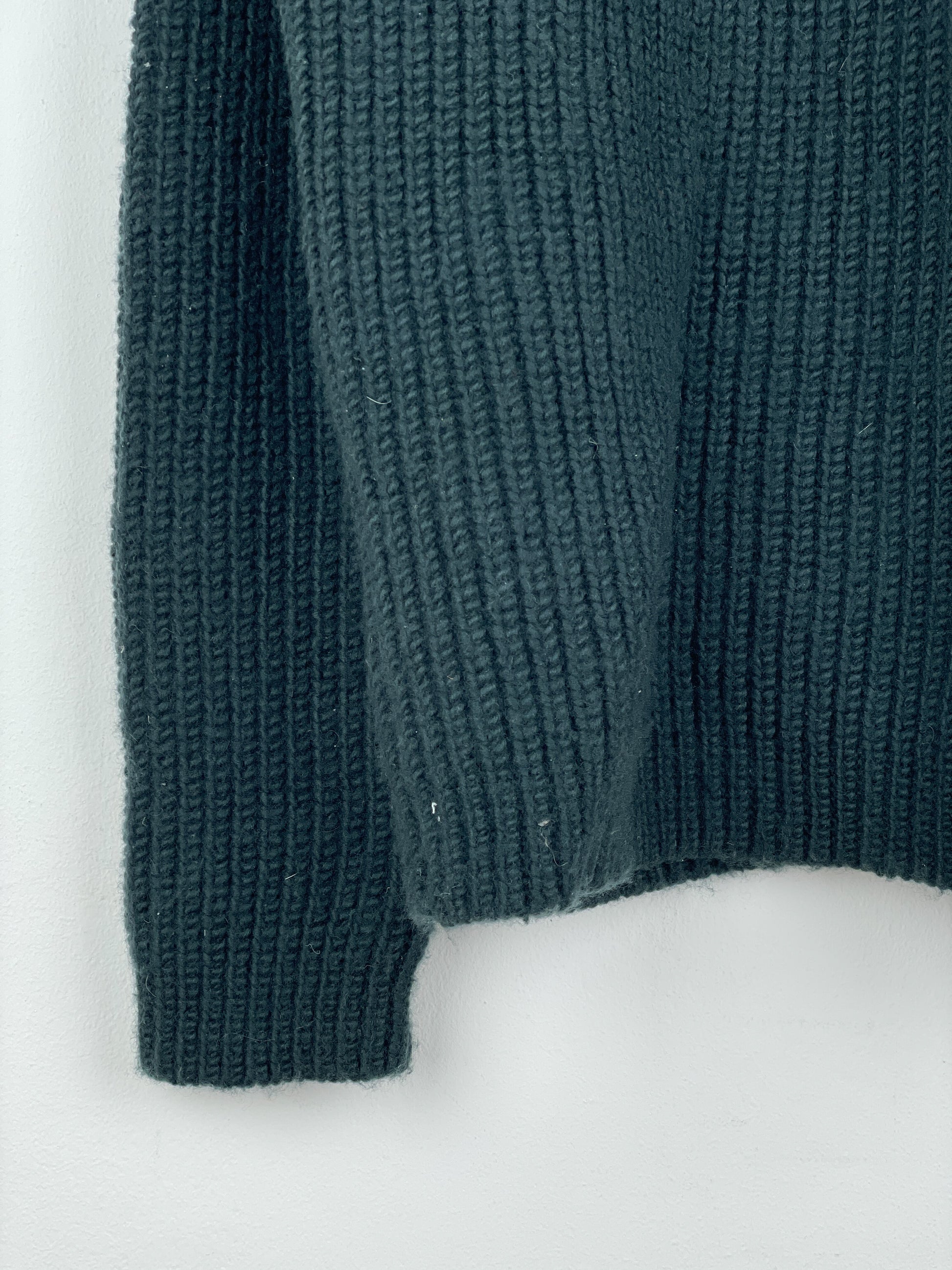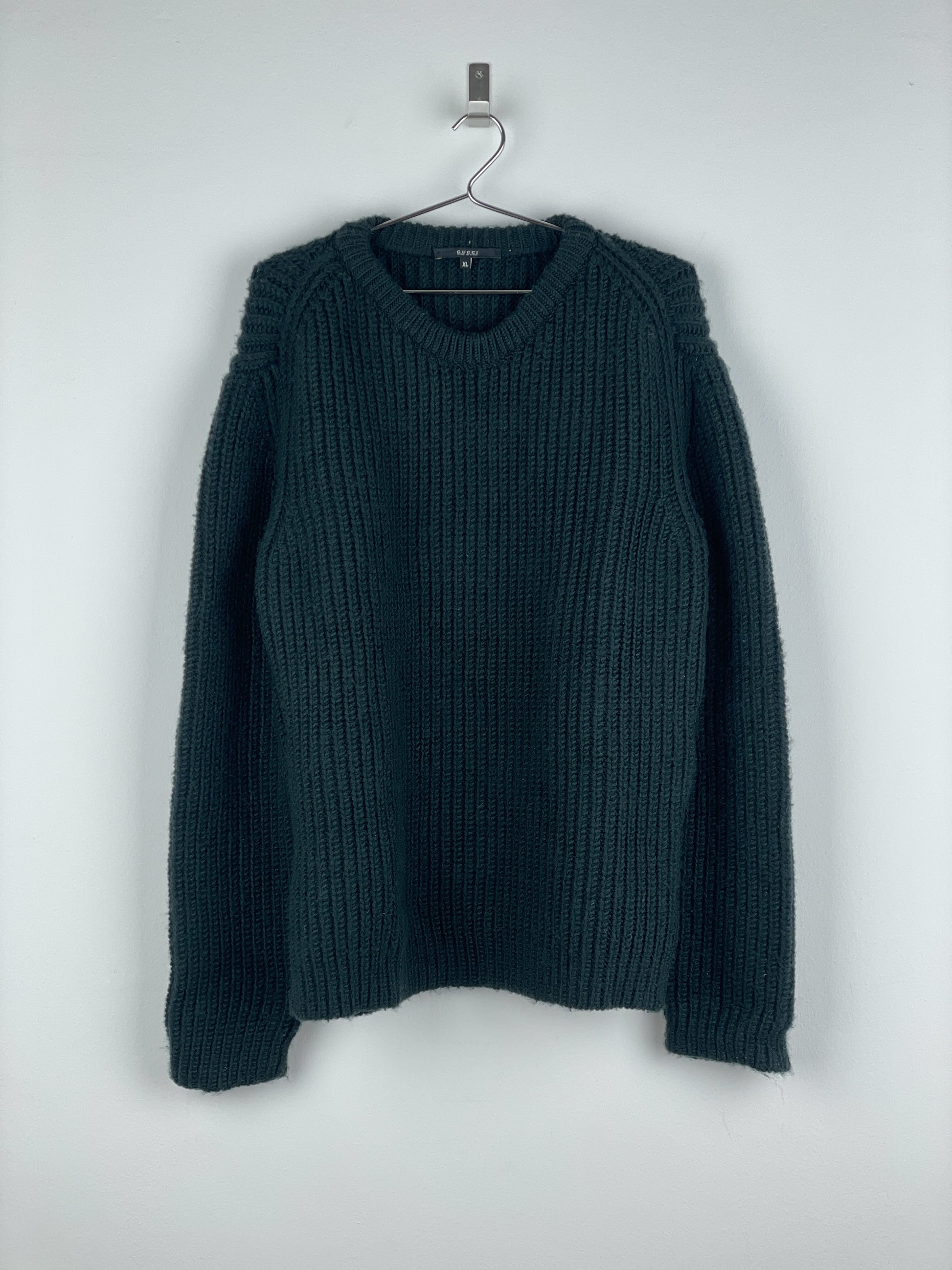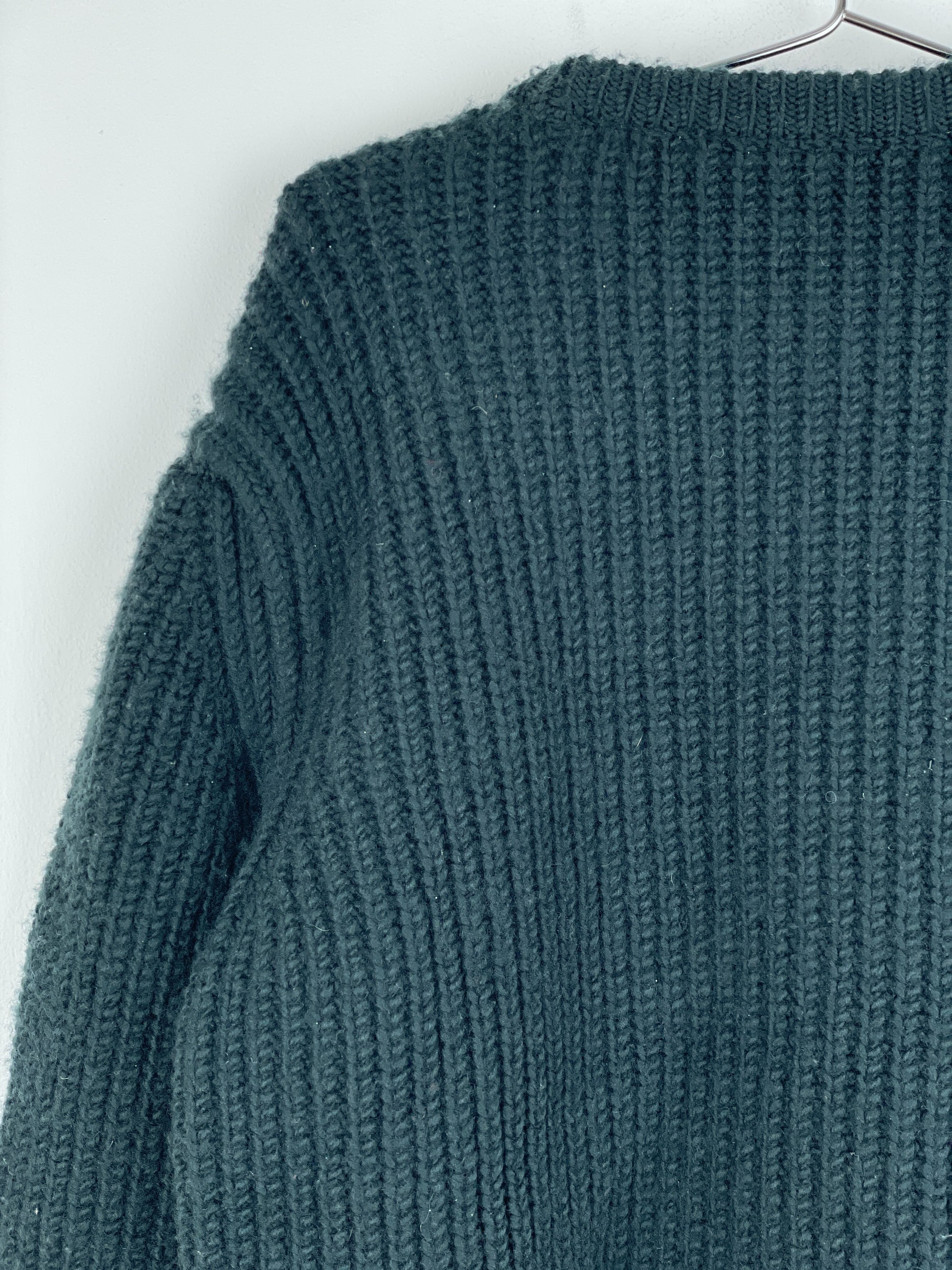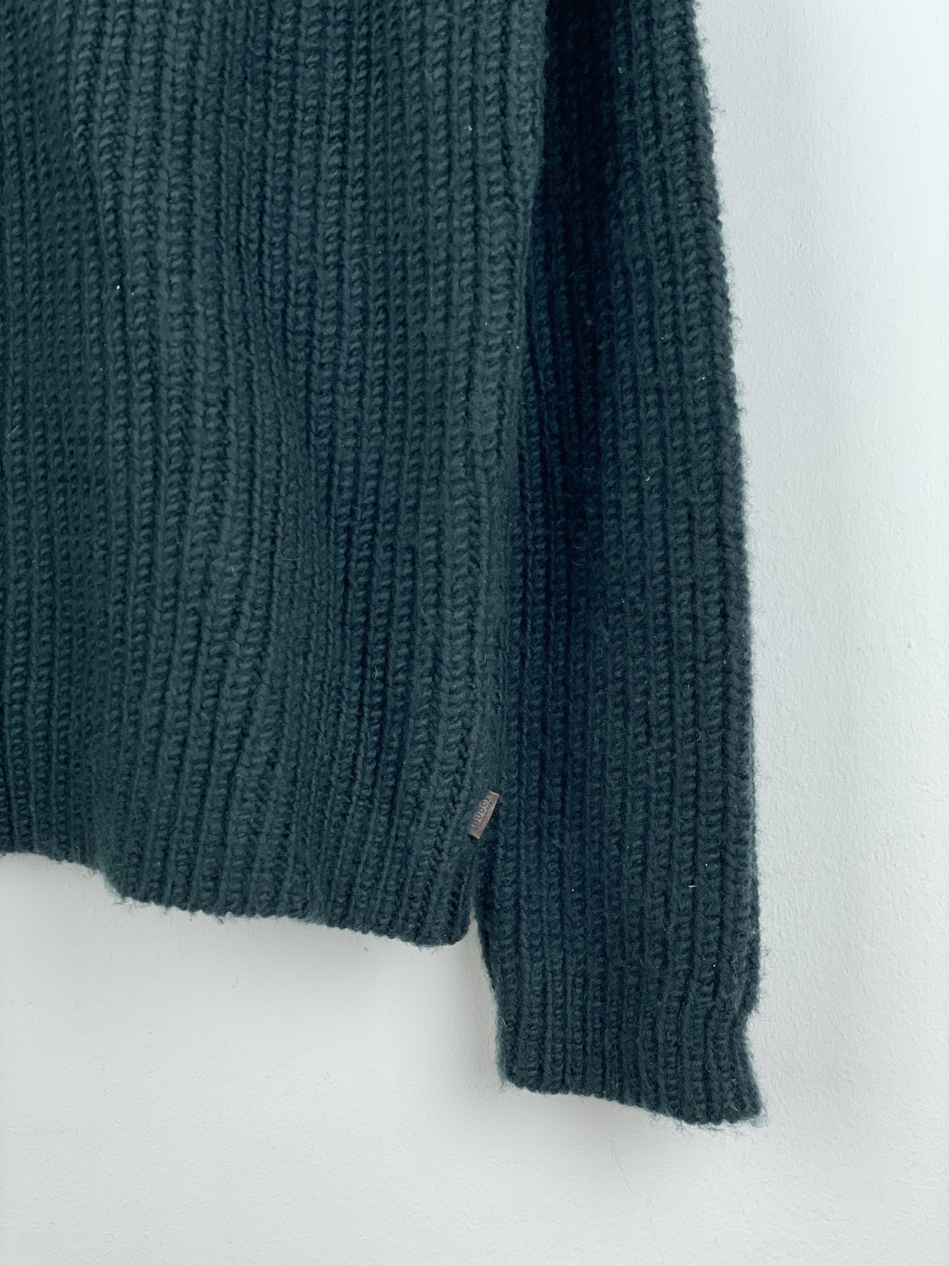 Heavyweight cable knit sweater in greenish-black, from the 2000s.