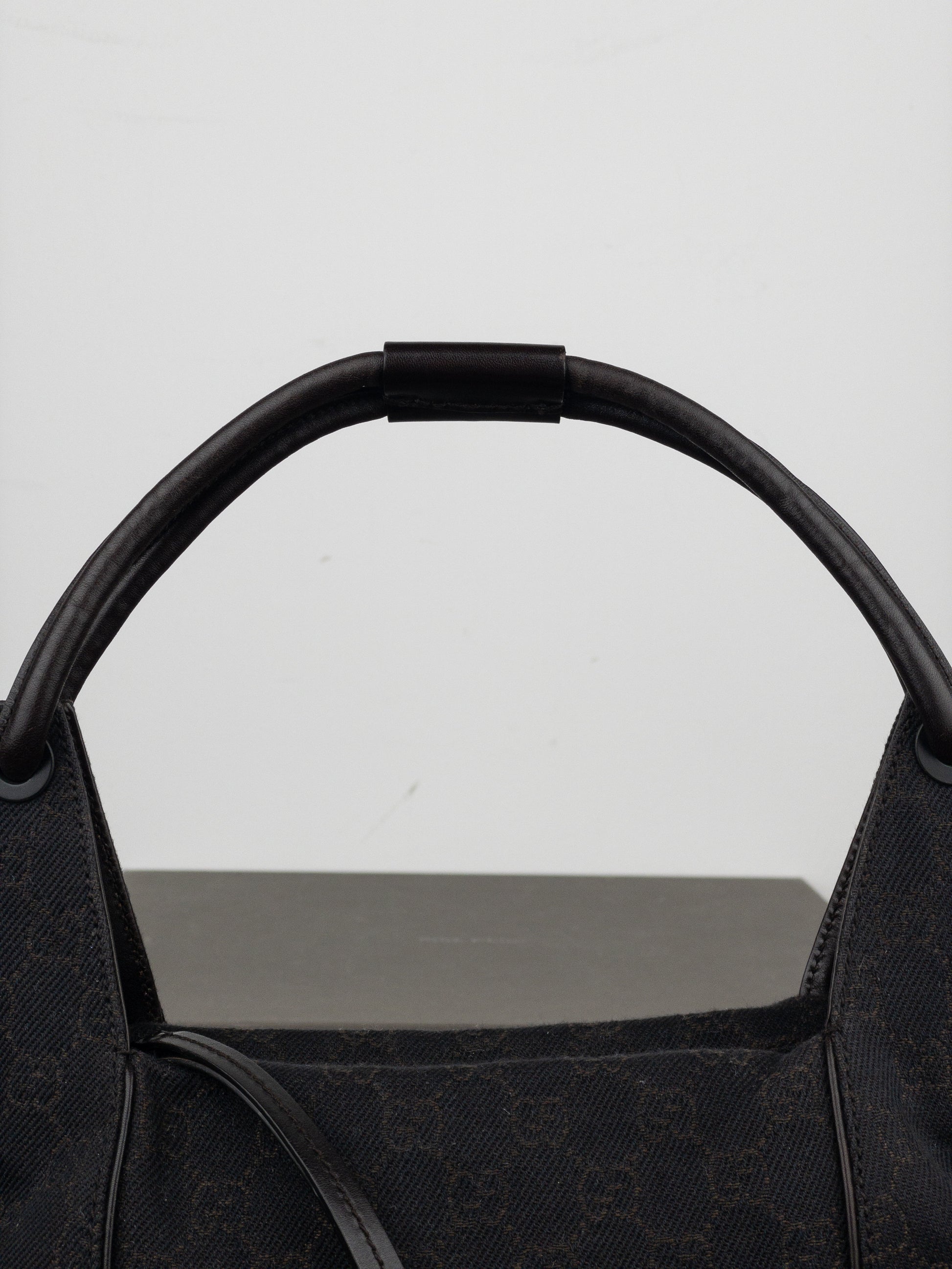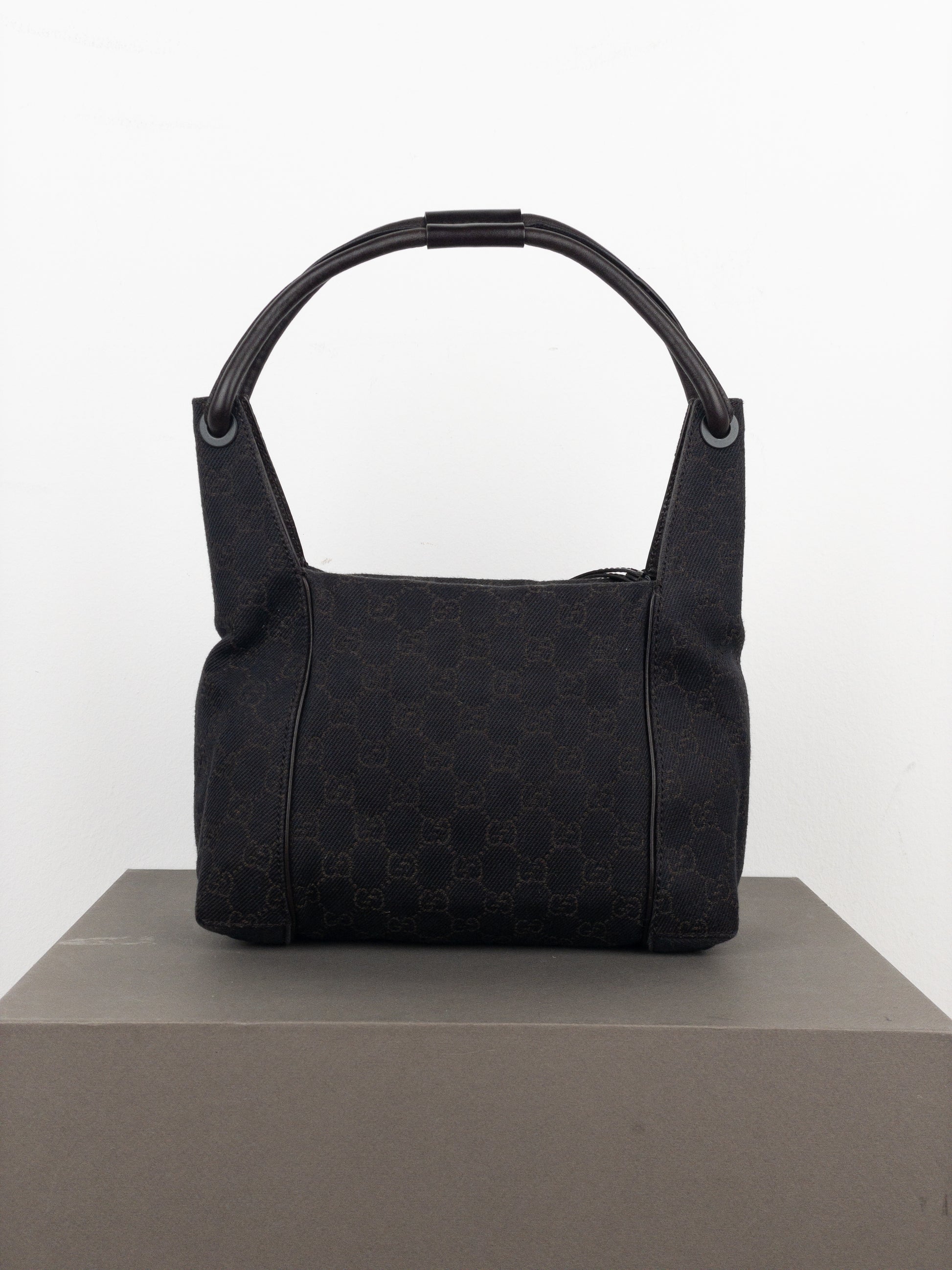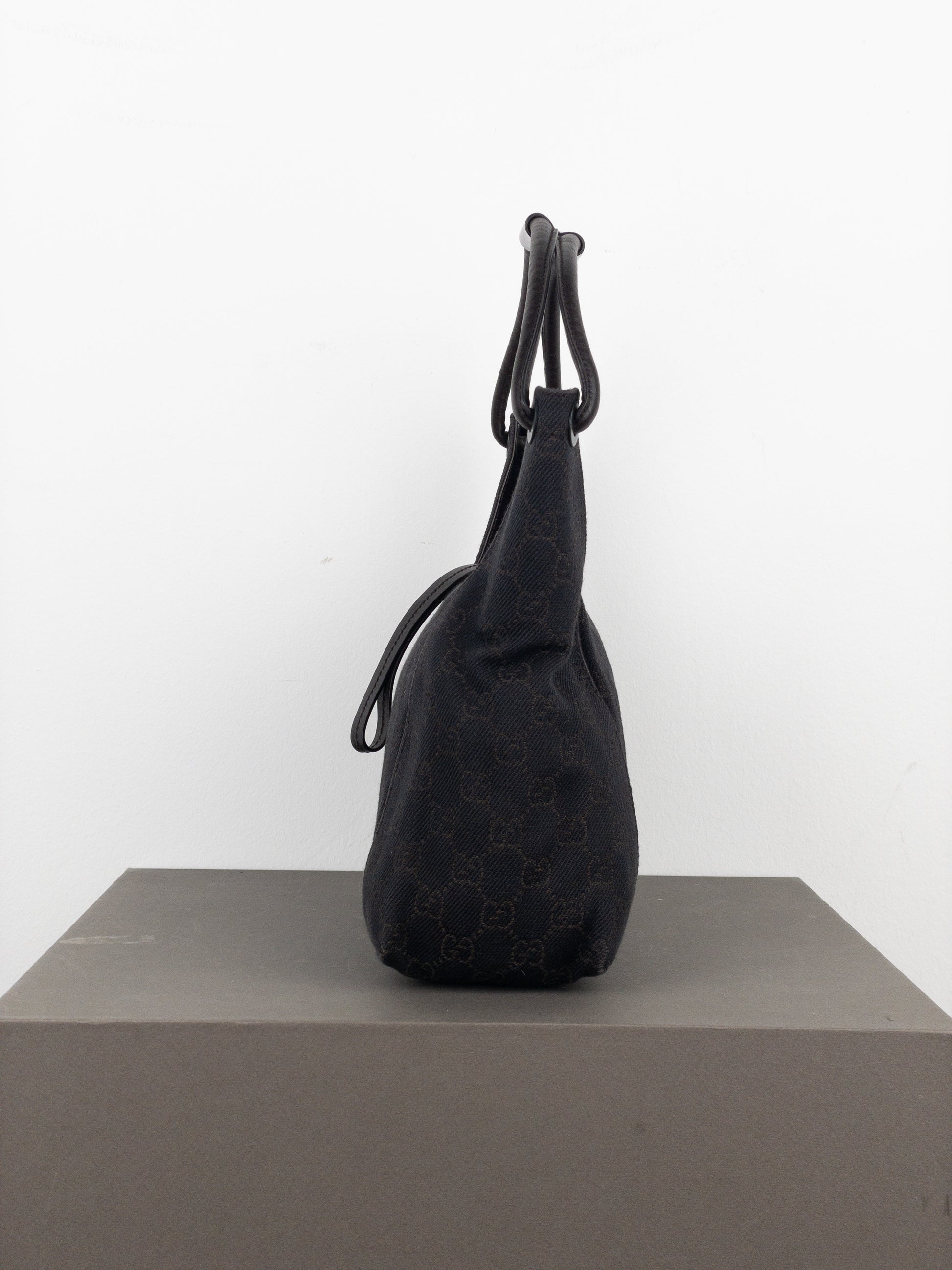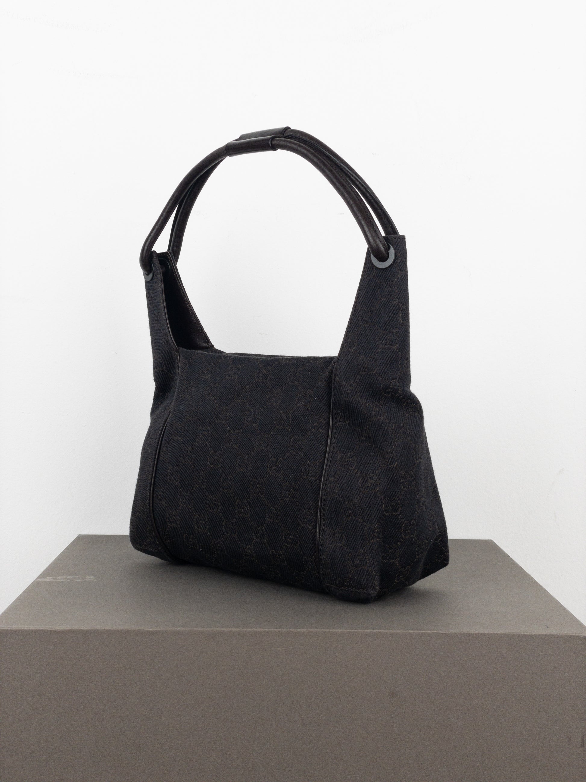 Hobo shoulder bag in black canvas with GG monogram throughout, featuring a double black leather handle, from the 2000s.