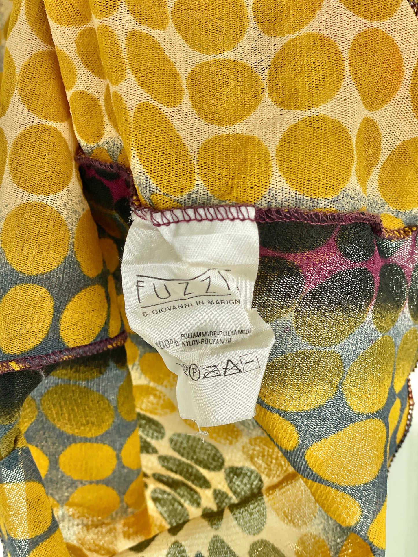 Multicolour mesh turtleneck longsleeve with knitting on sleeves and neck, Vasarely inspired "Cyberdot" print, from the autumn-winter 1995 collection.