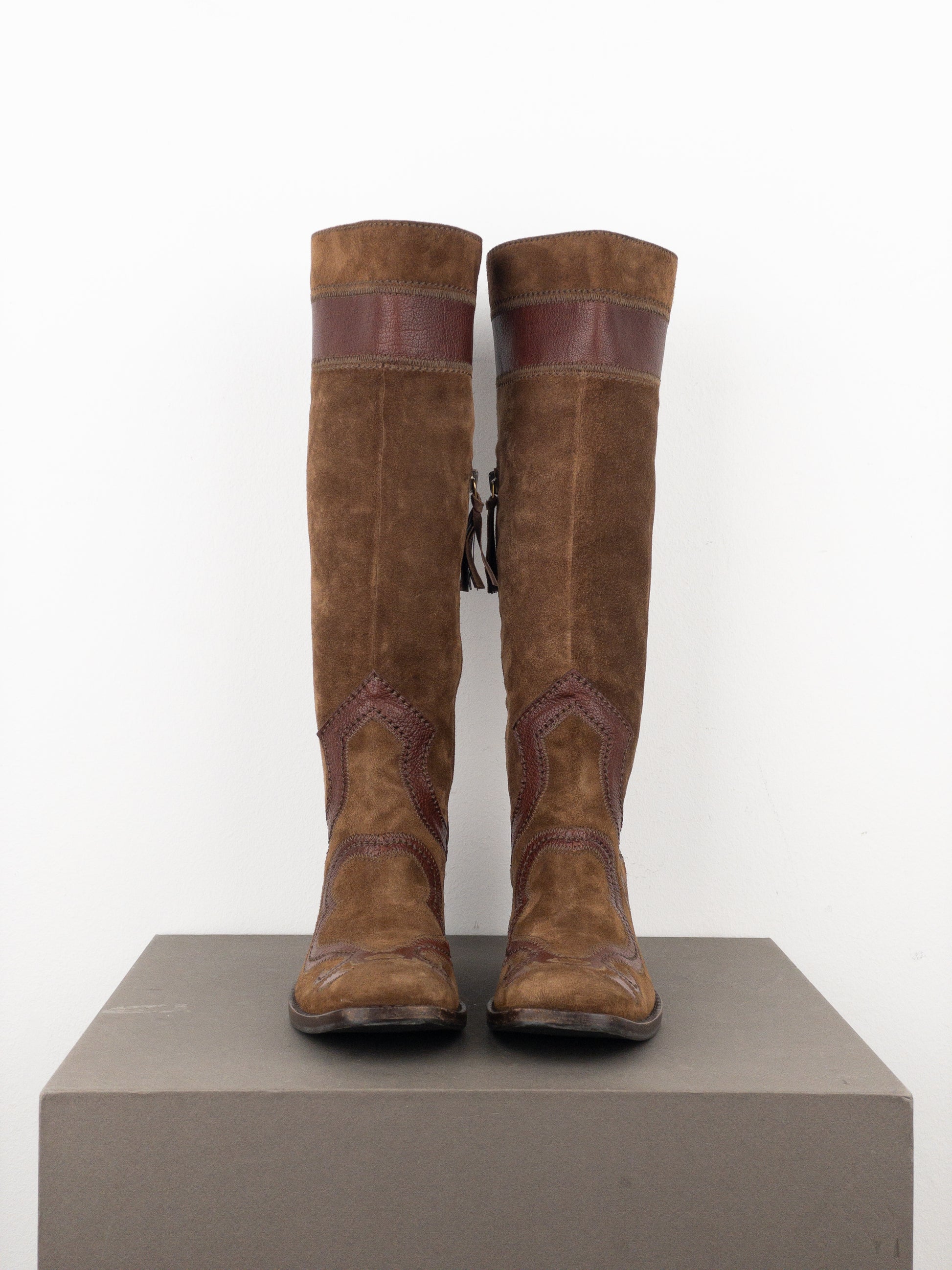 Miu Miu 2000s Knee-High Suede Cowboy Boots