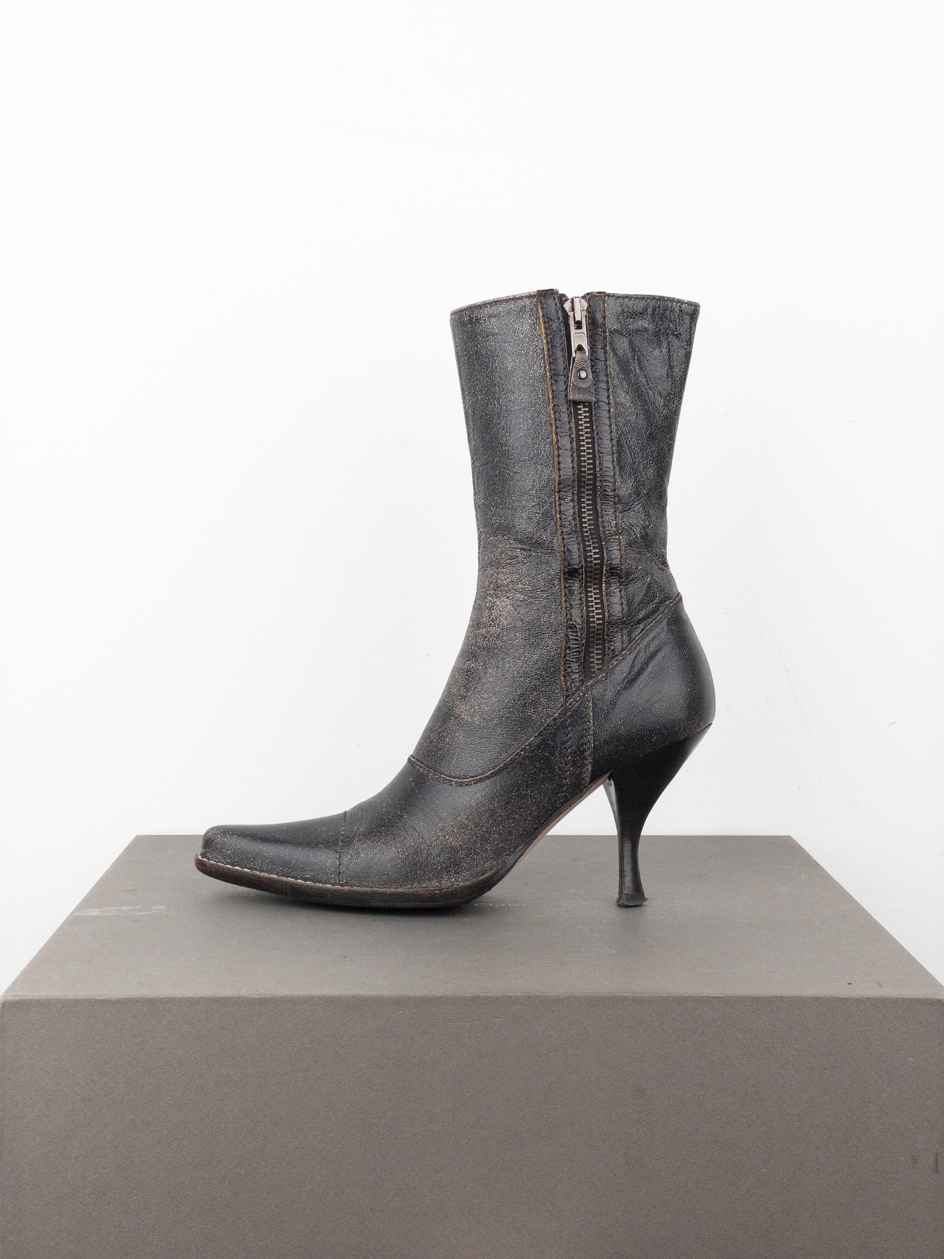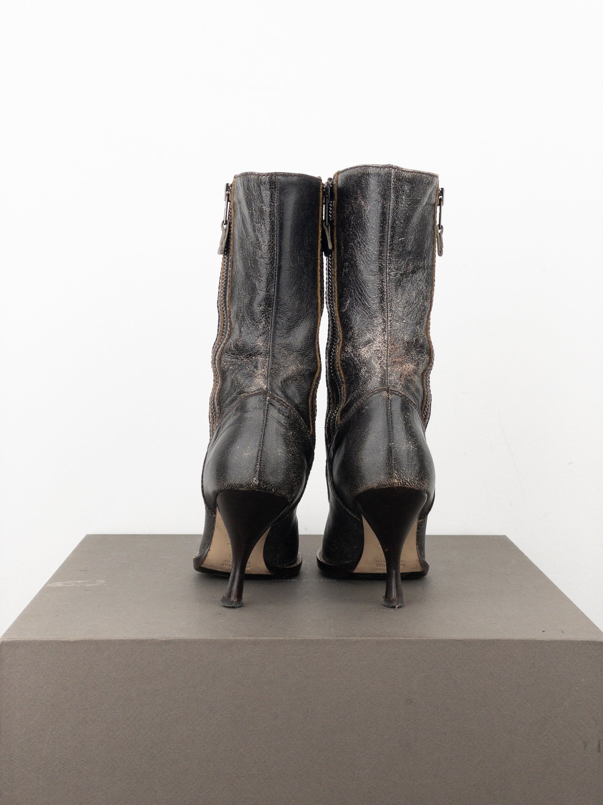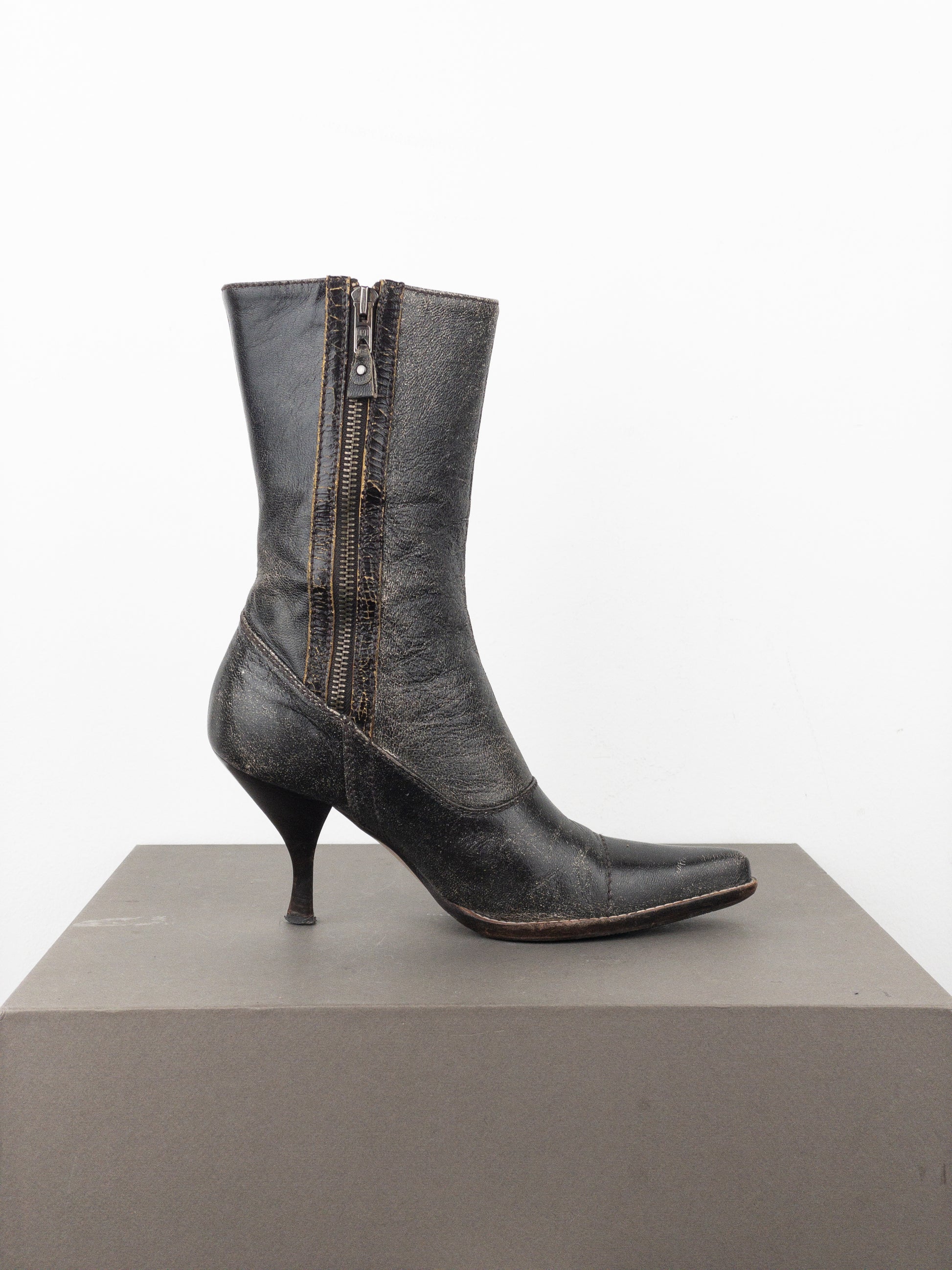 Miu Miu AW01 Double Side-Zip Cracked Leather Ankle Heel Boots