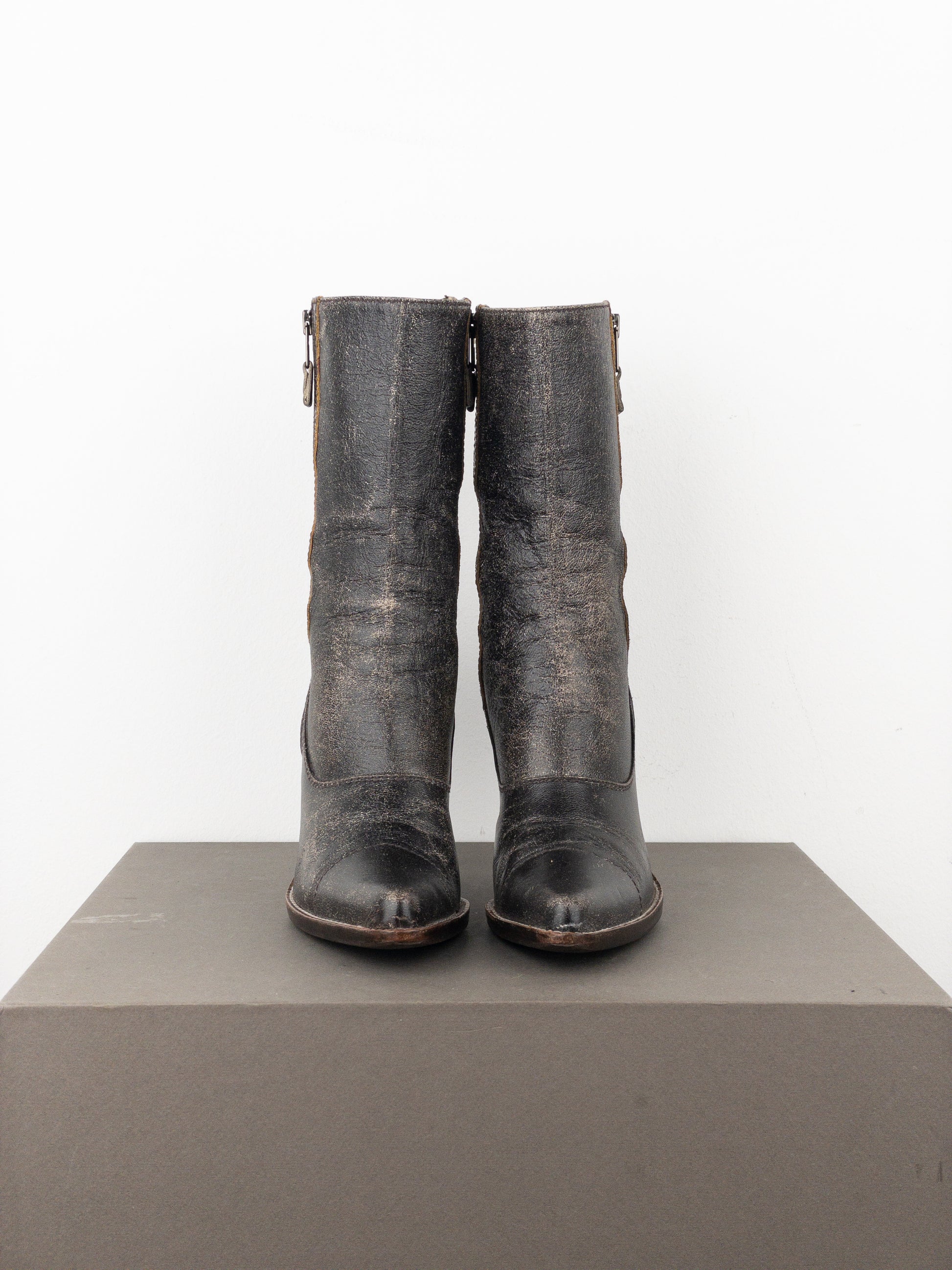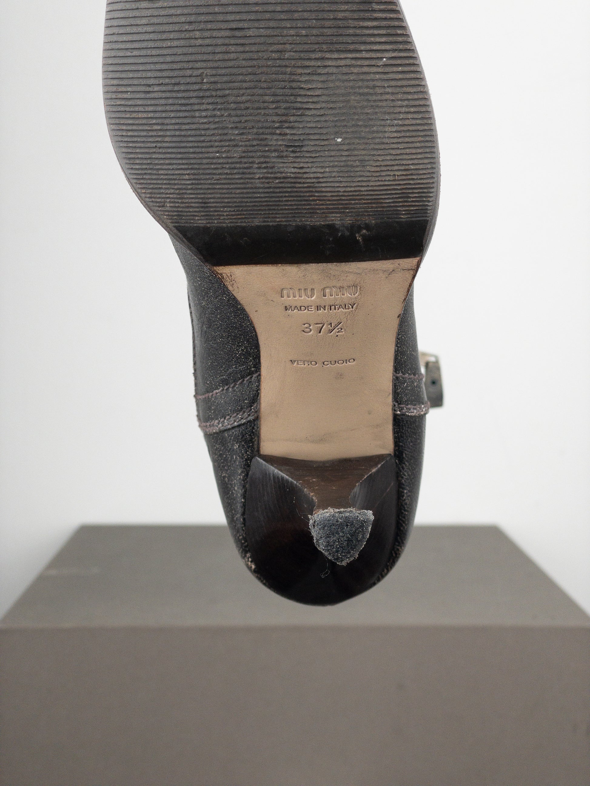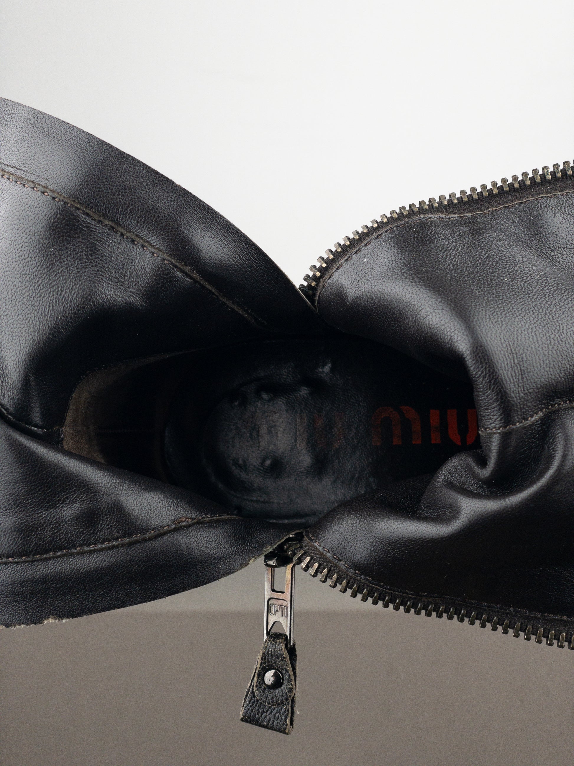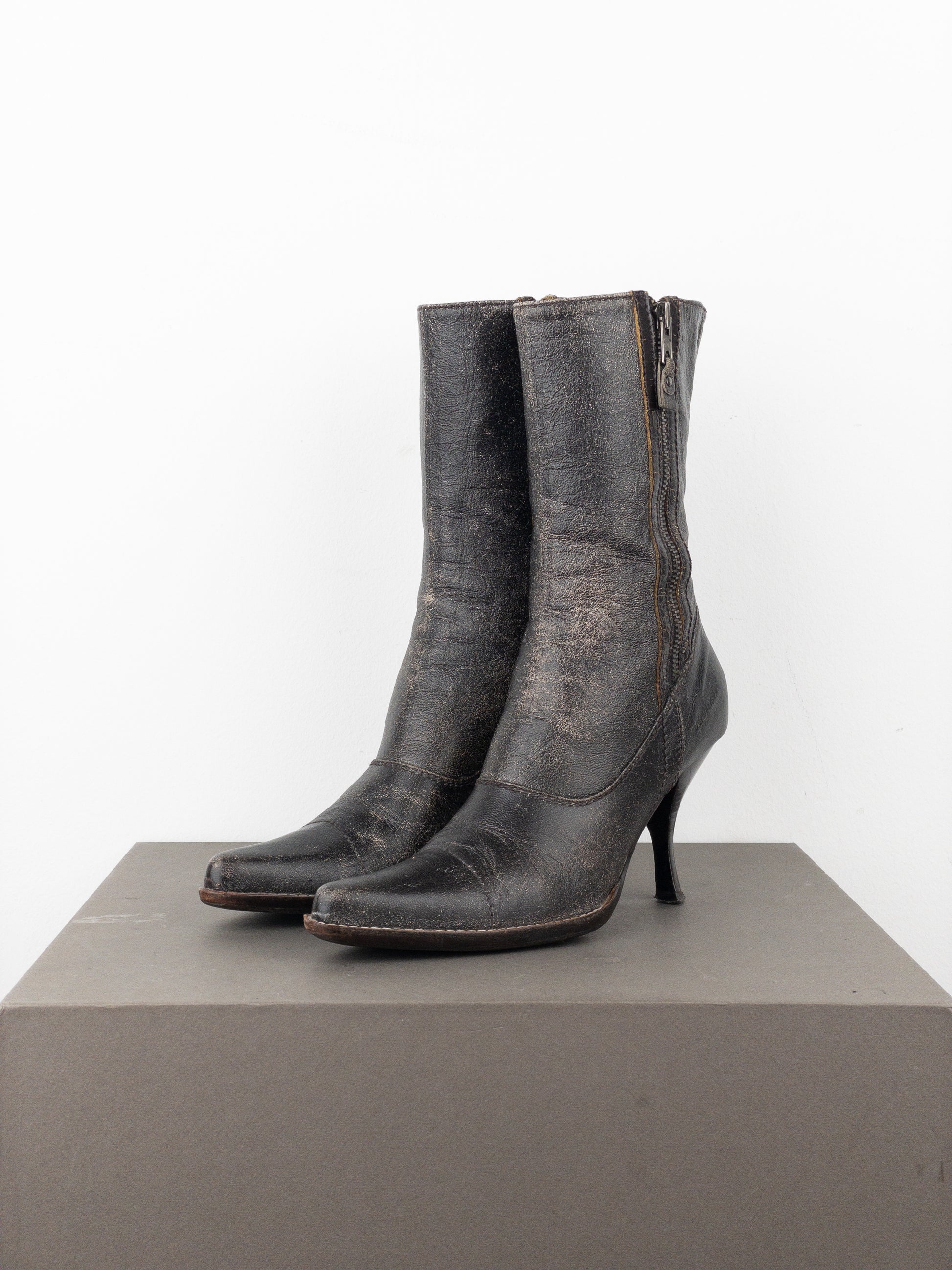 Miu Miu AW01 Double Side-Zip Cracked Leather Ankle Heel Boots
