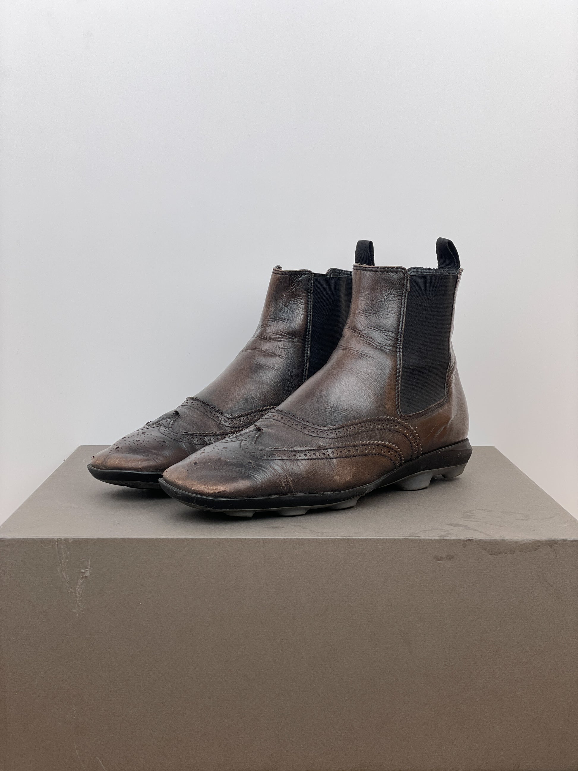 Miu Miu SS99 Square-Toe Spike-Sole Brogue Chelsea Boots