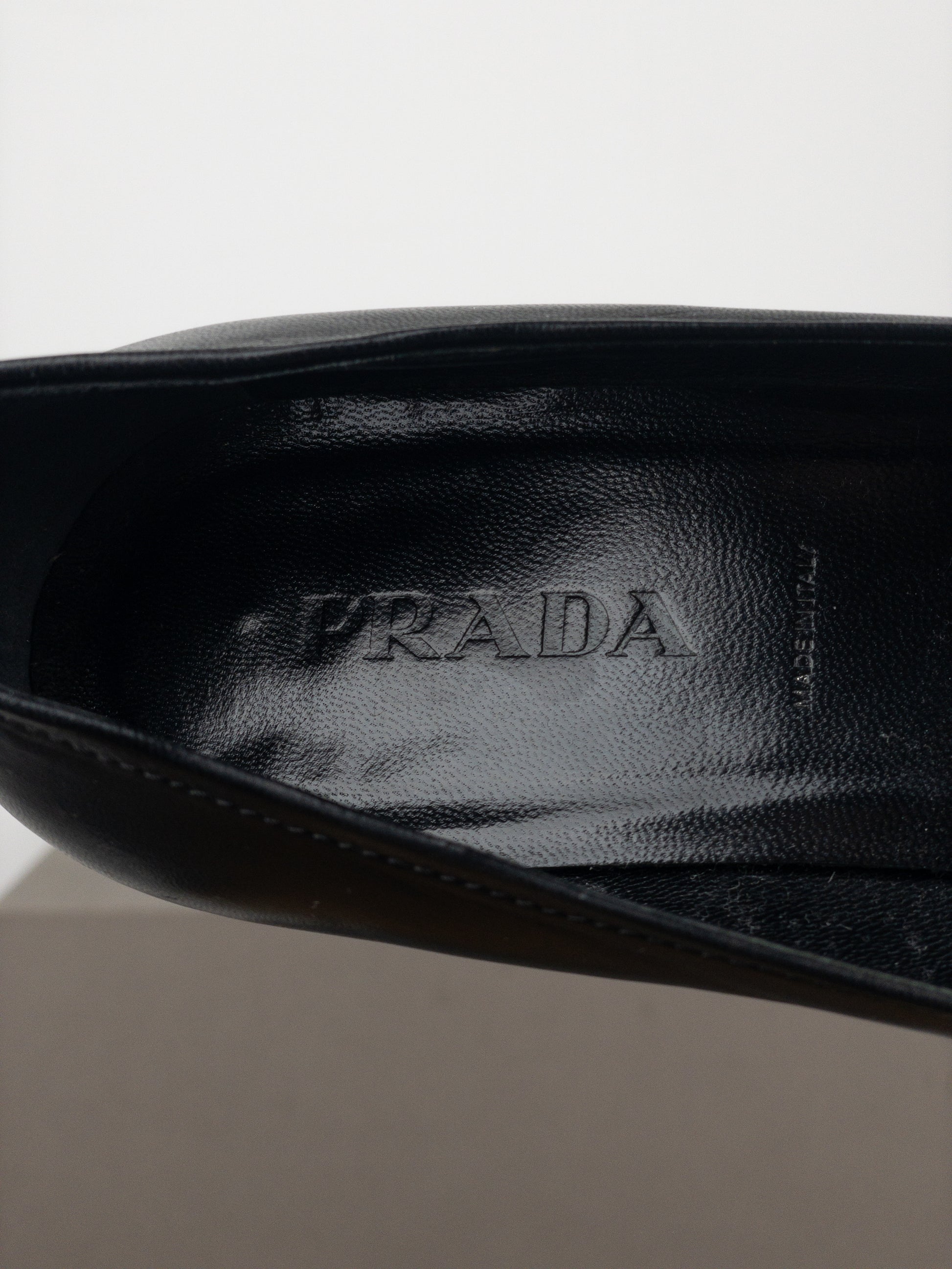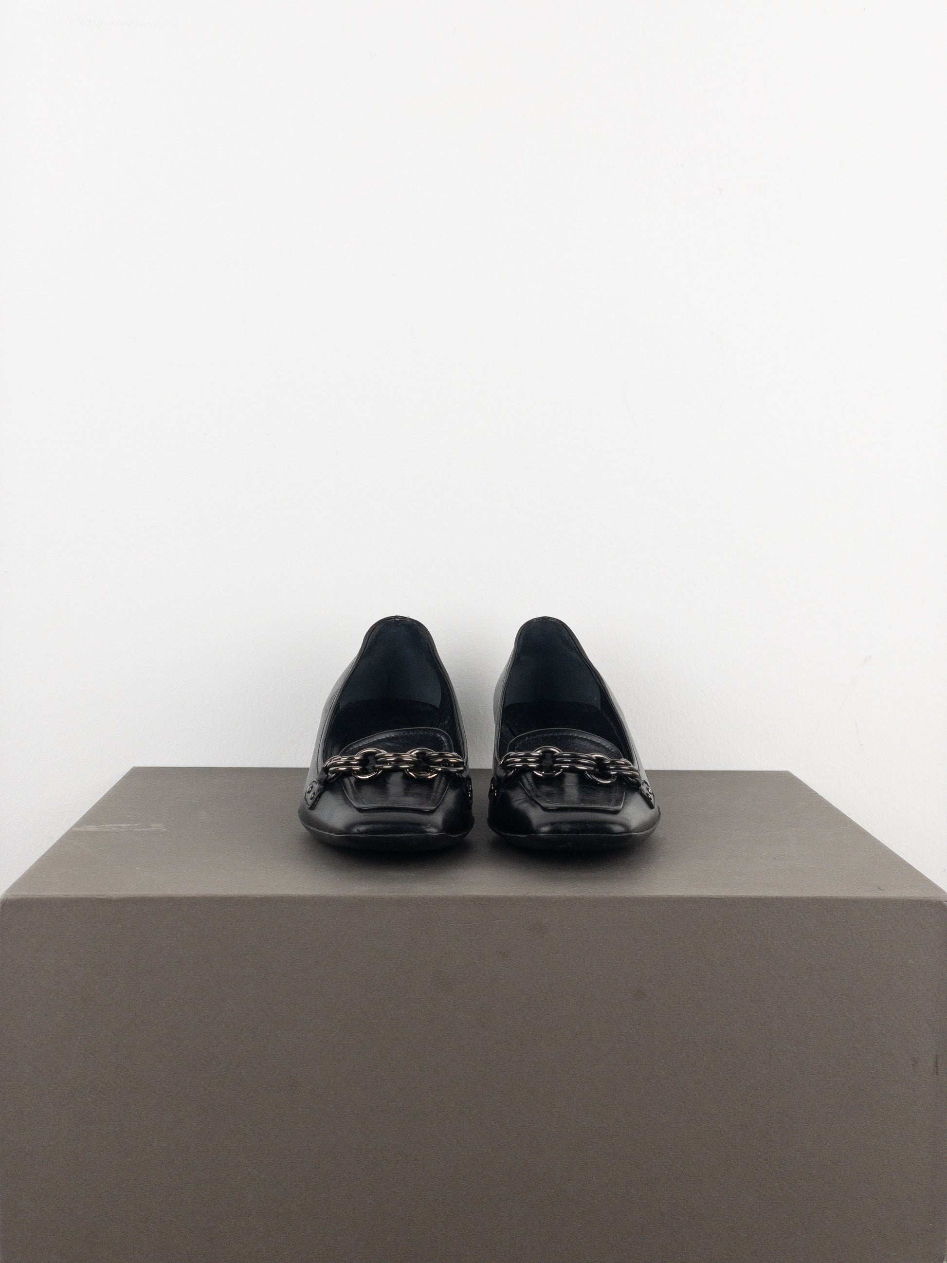 Prada 2000s Square Toe Chain Loafer Pump Kitten Heels