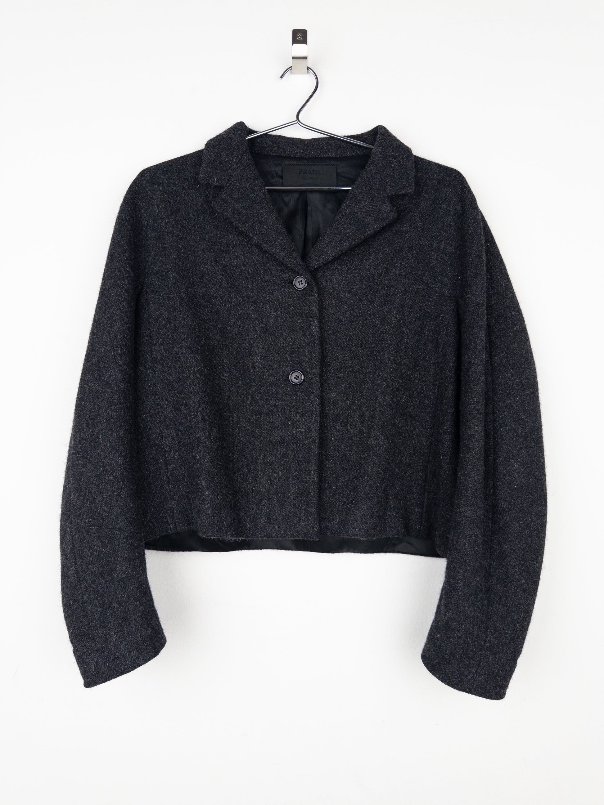 Cropped coat jacket in dark grey felt, from the 2000s.