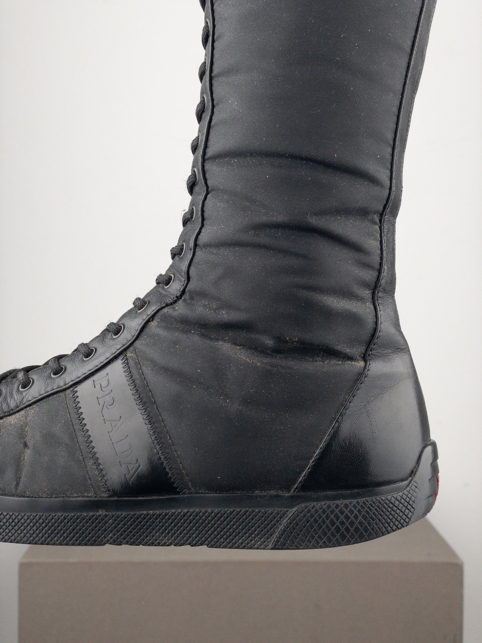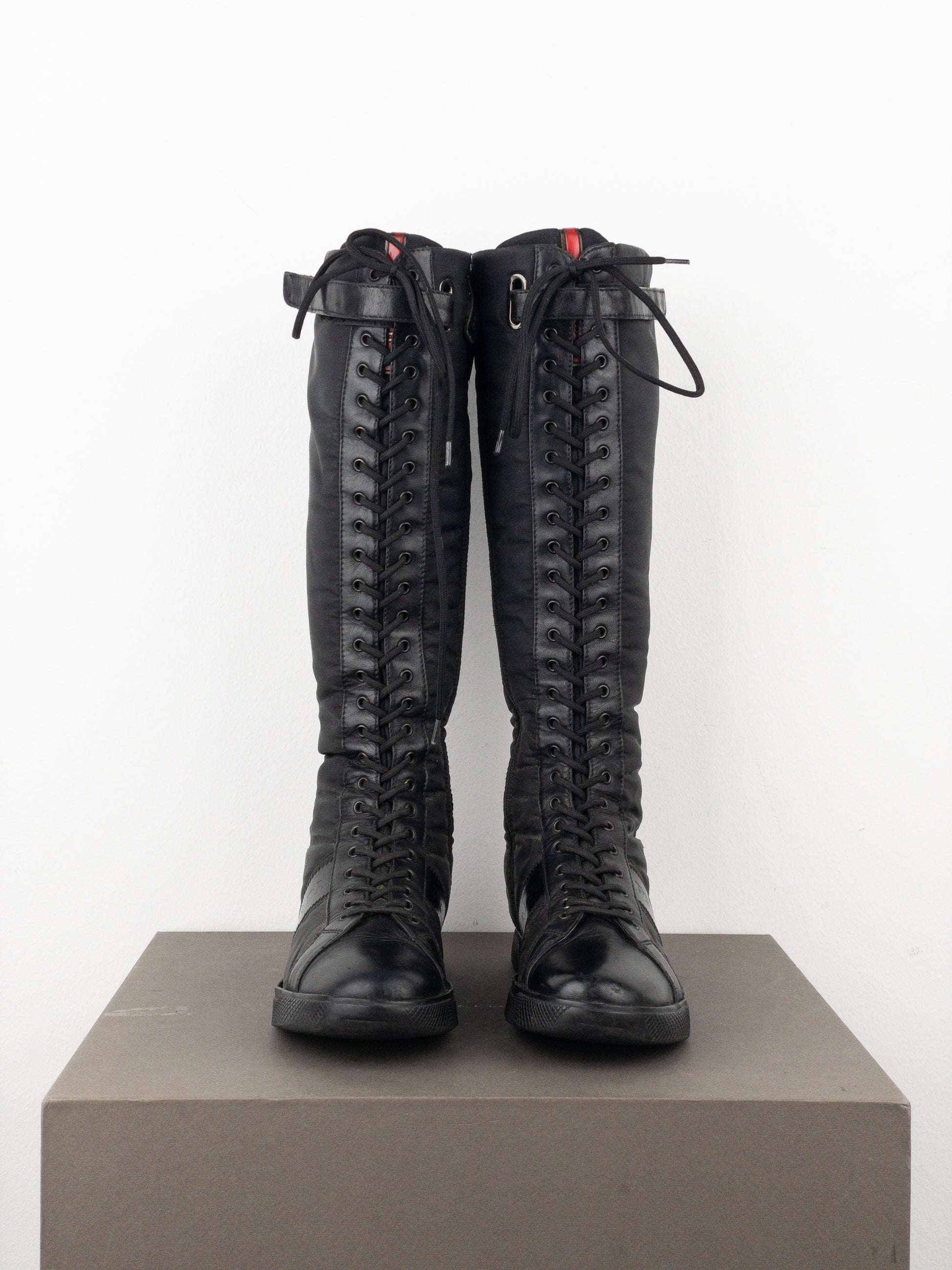 Prada 2000s Knee-High Boxing Racing Lace-Up Sneaker Boots