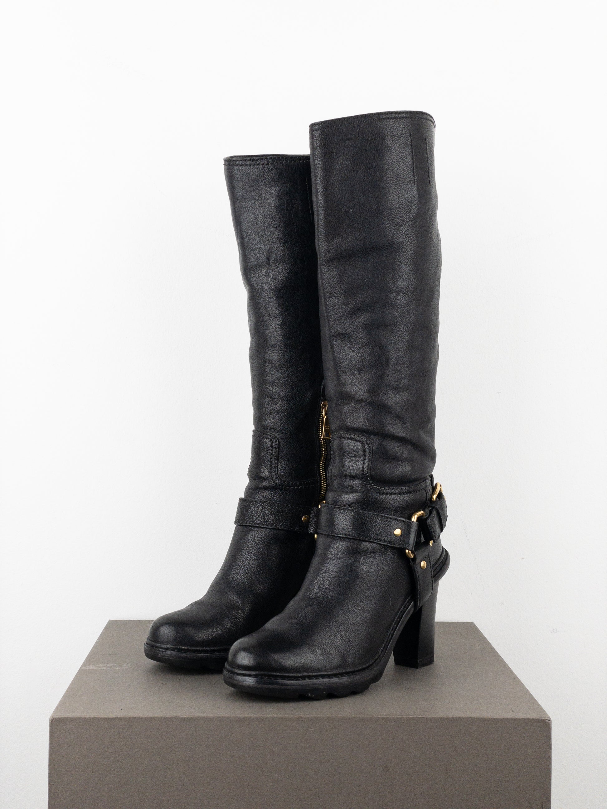 Prada 2000s Knee-High Buckle Biker Heel Boots