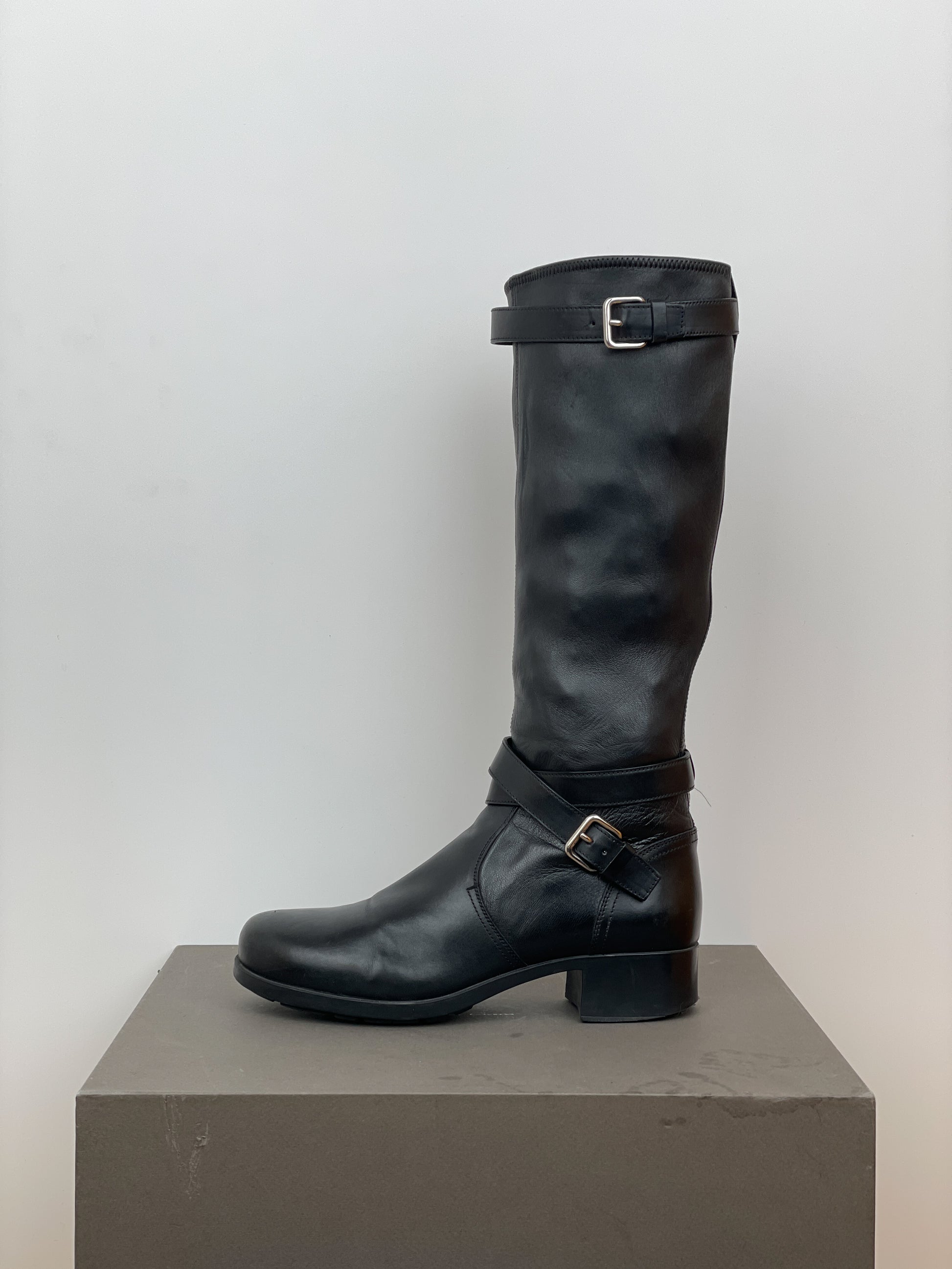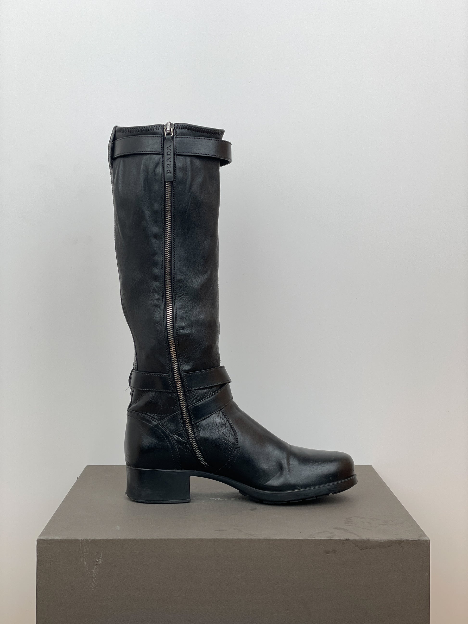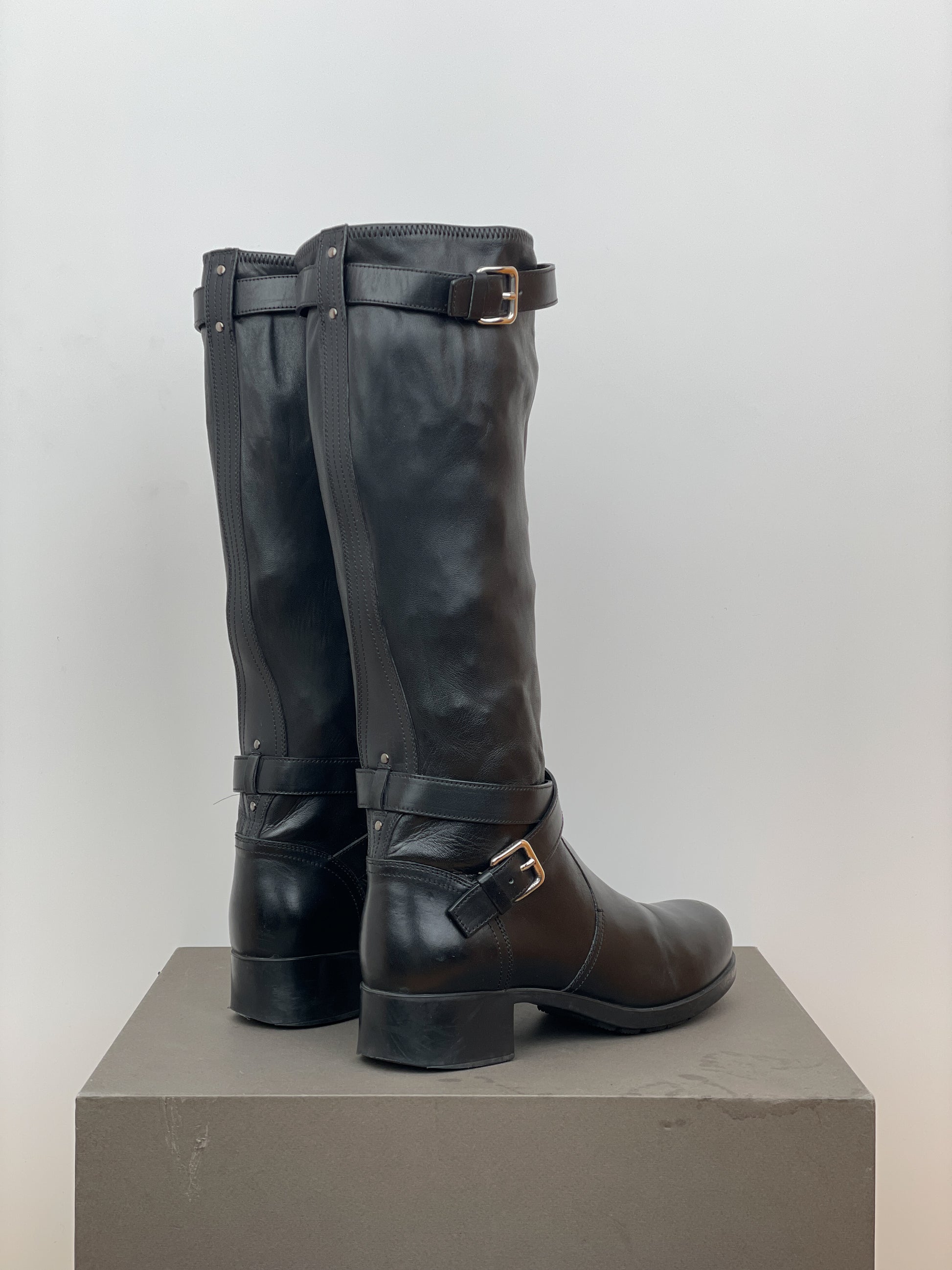 Prada 2000s Knee High Double-Buckle Riding Boots