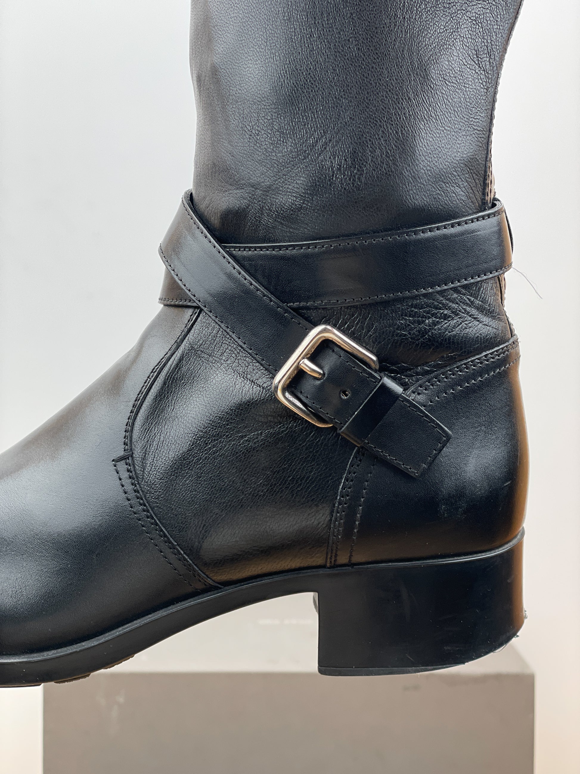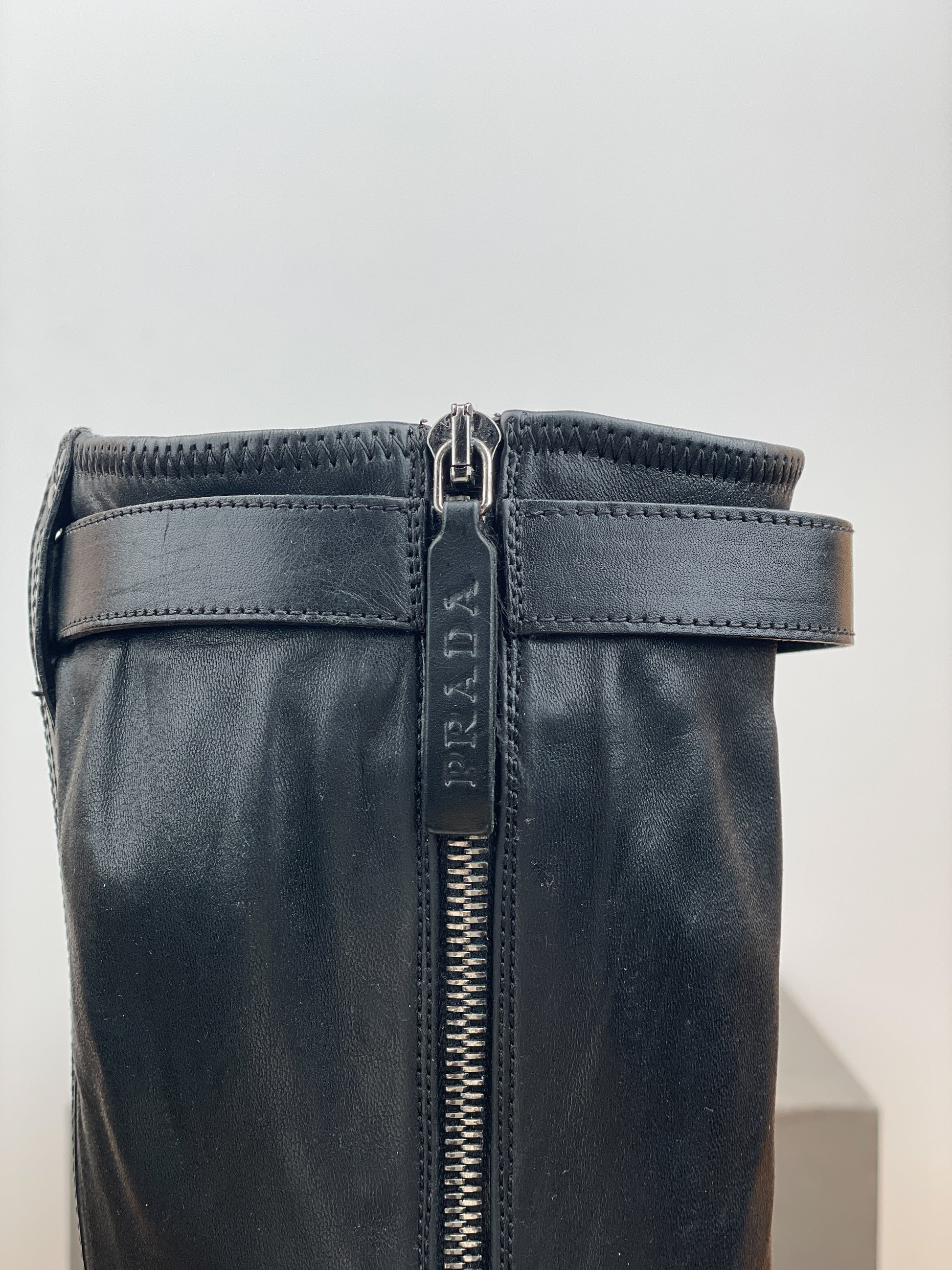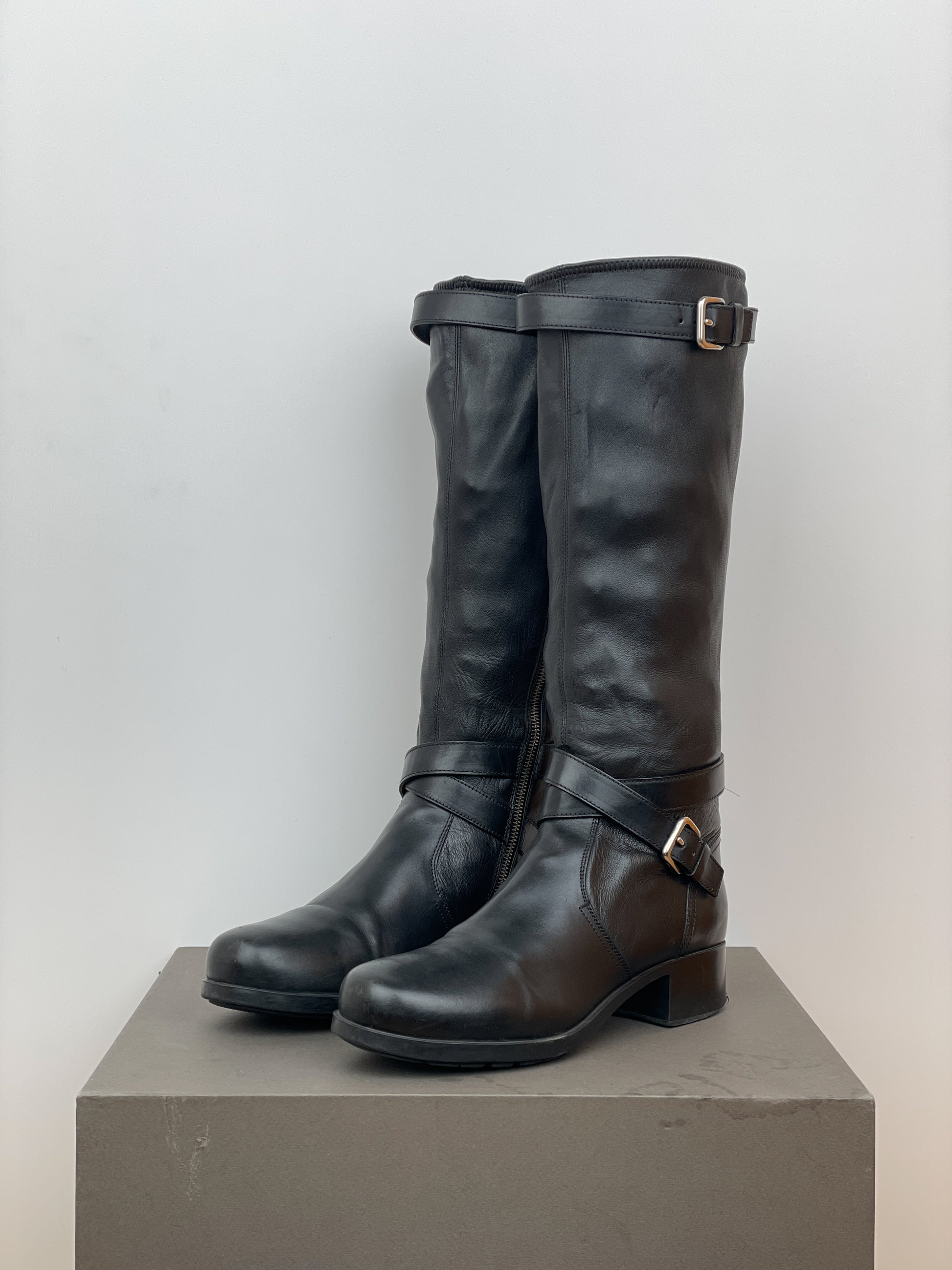 Prada 2000s Knee High Double-Buckle Riding Boots