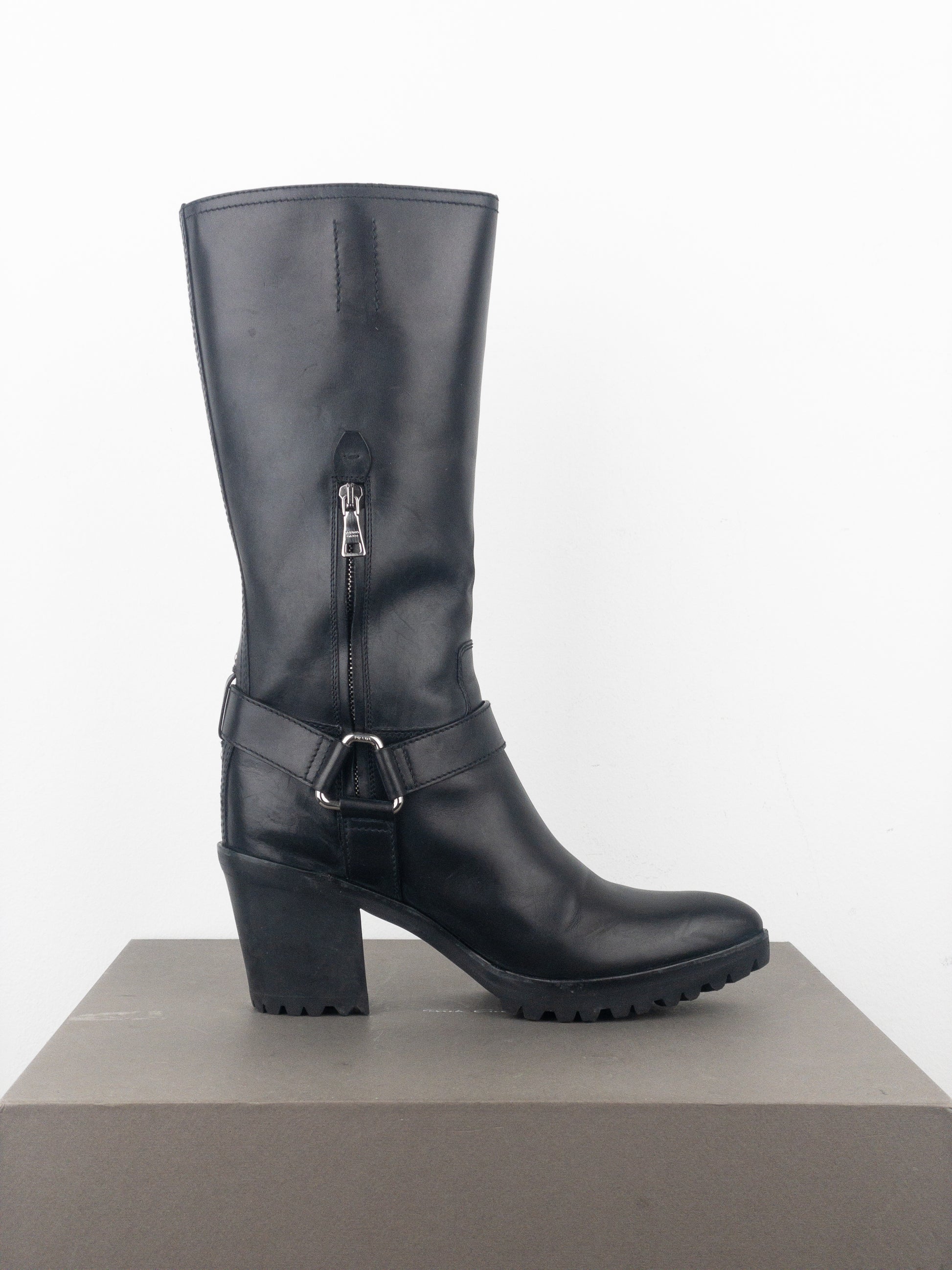 Prada 2000s Knee-High Harness Buckle Biker Cowboy Boots