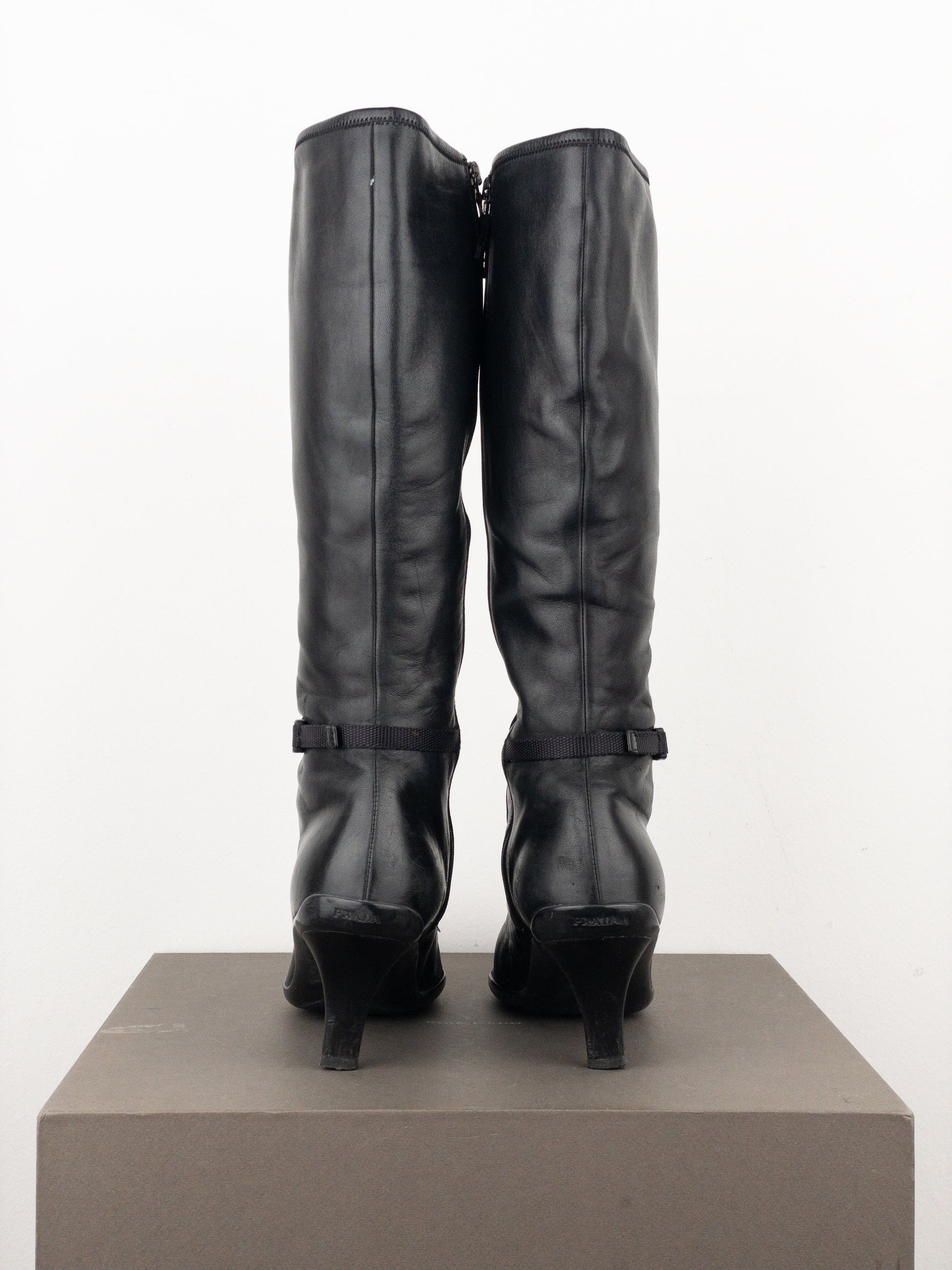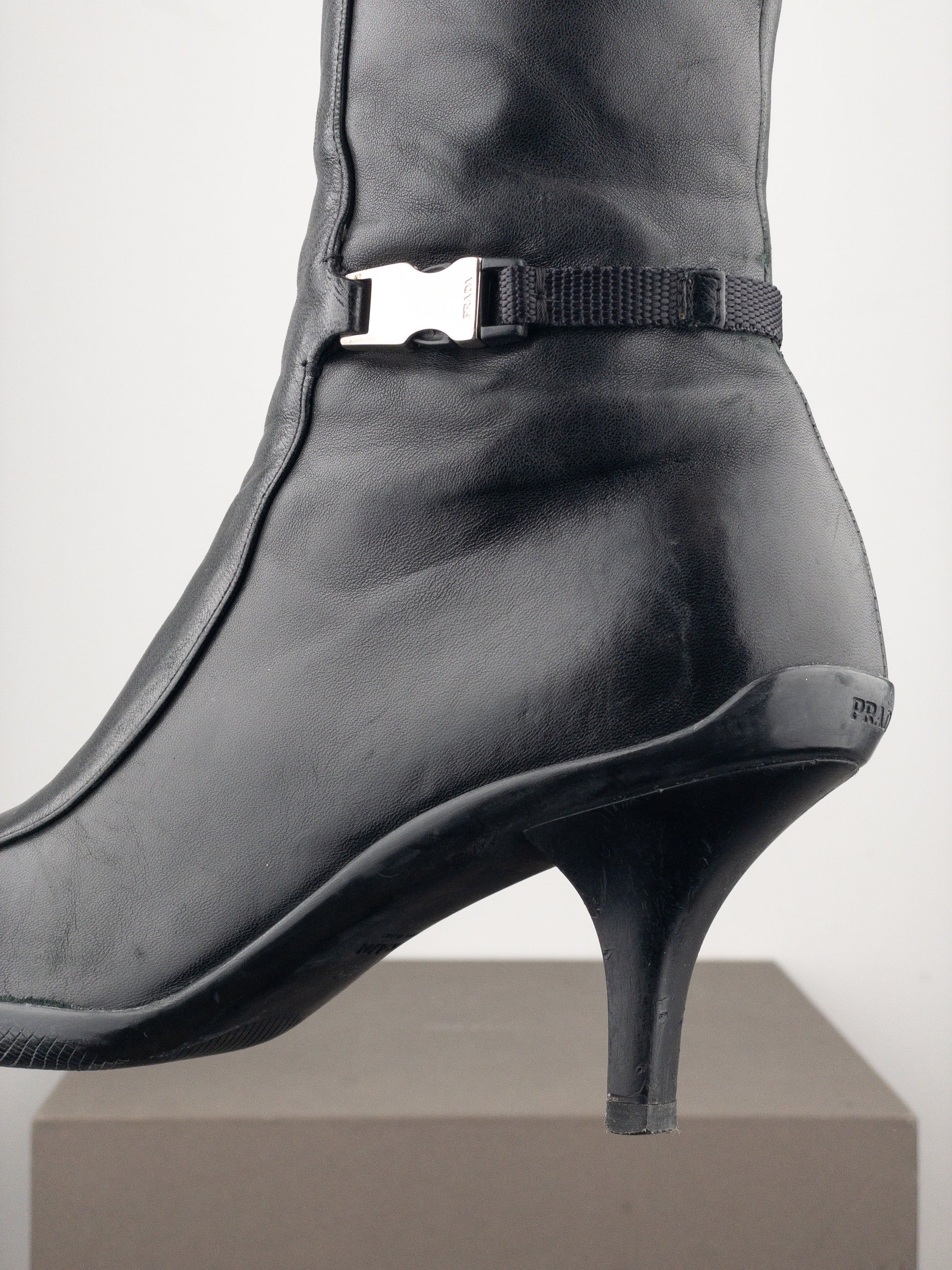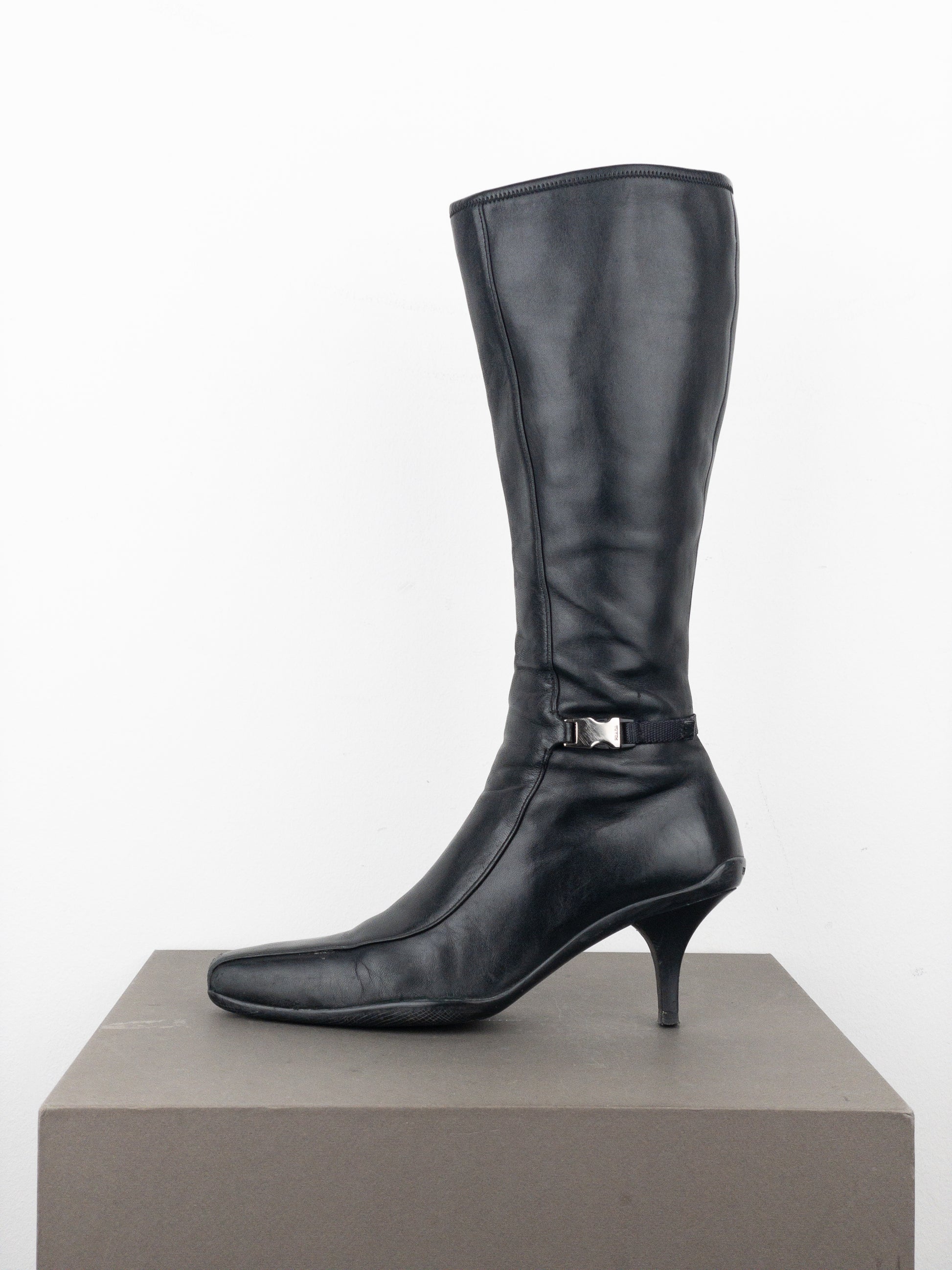 Prada 2000s Knee-High Sports Buckle Kitten Heel Boots