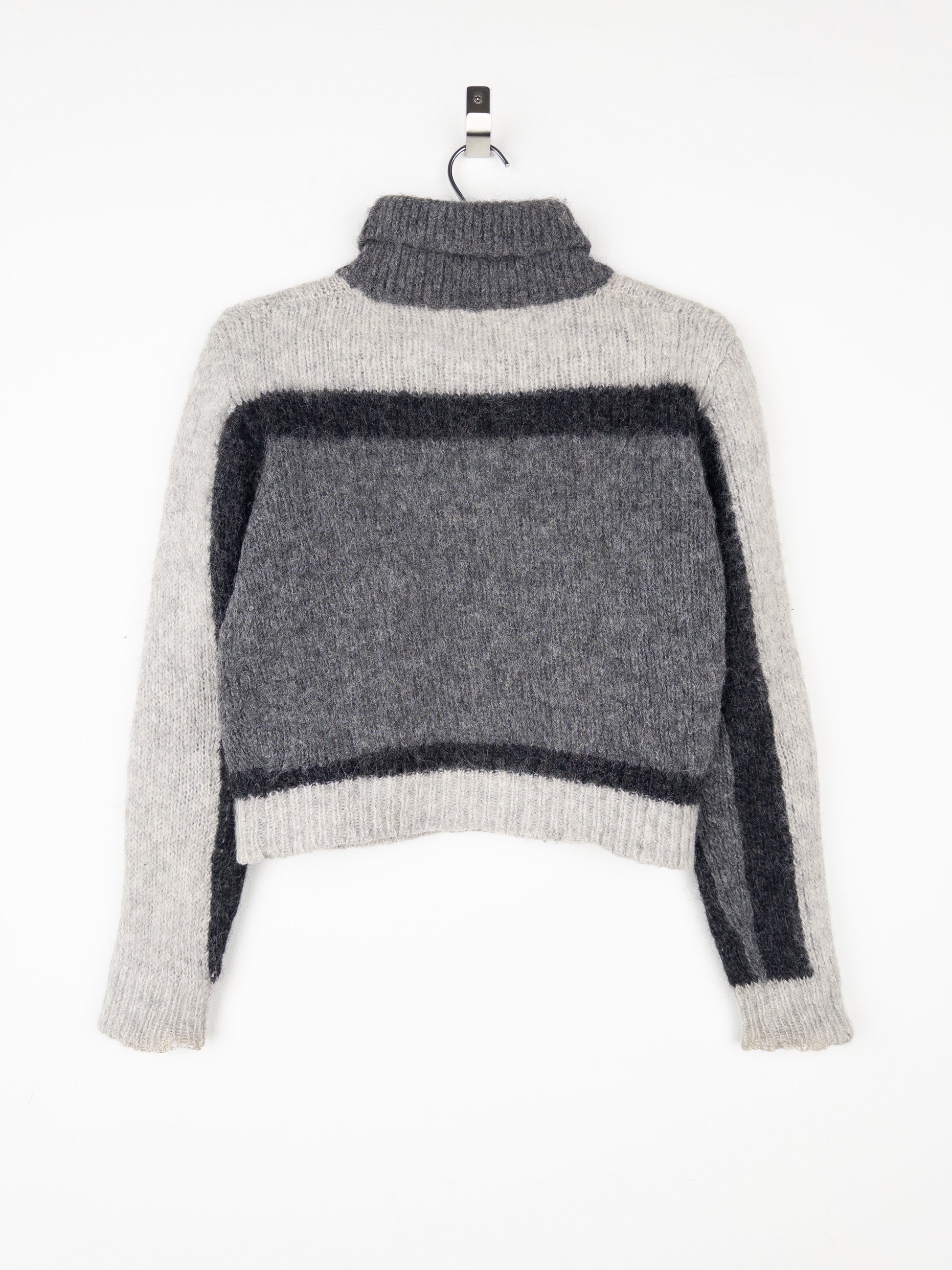 Prada 2000s Red Tab Geometric Fuzzy Knit Turtleneck Sweater