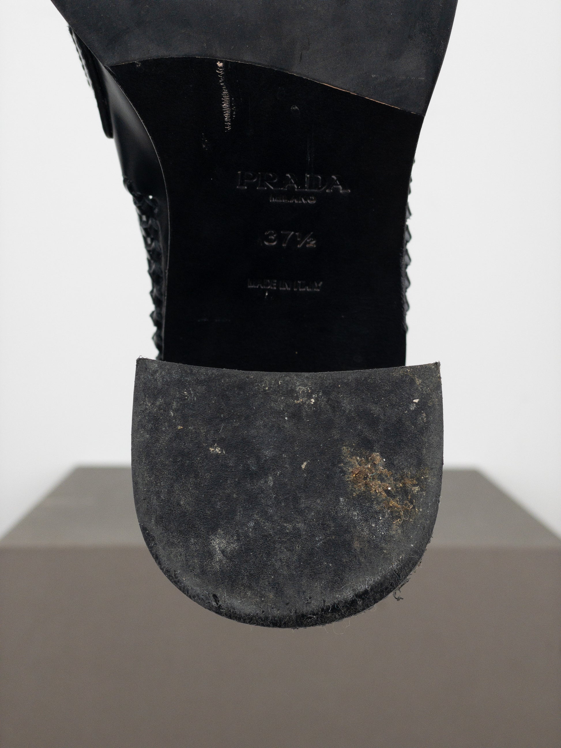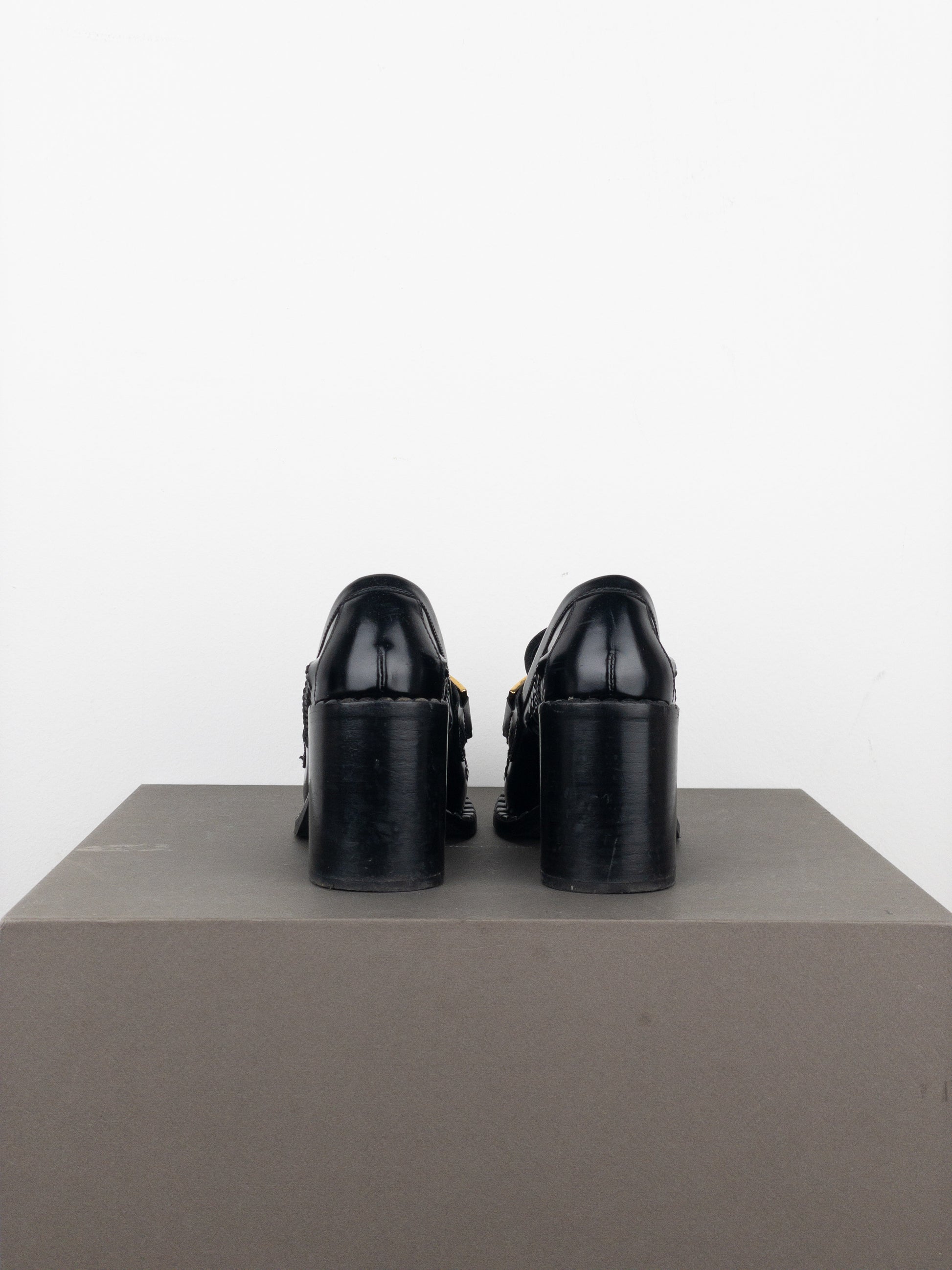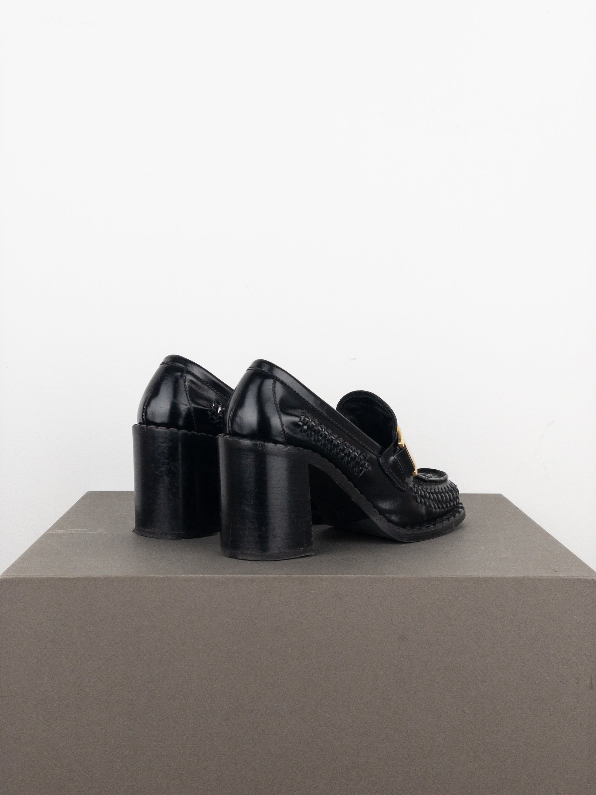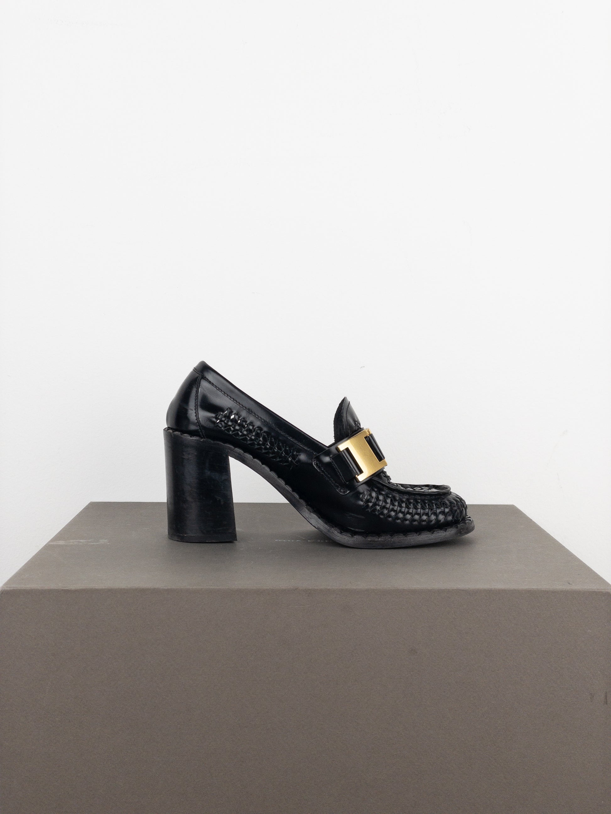 Prada Square Toe Buckle Loafer Pump Heels