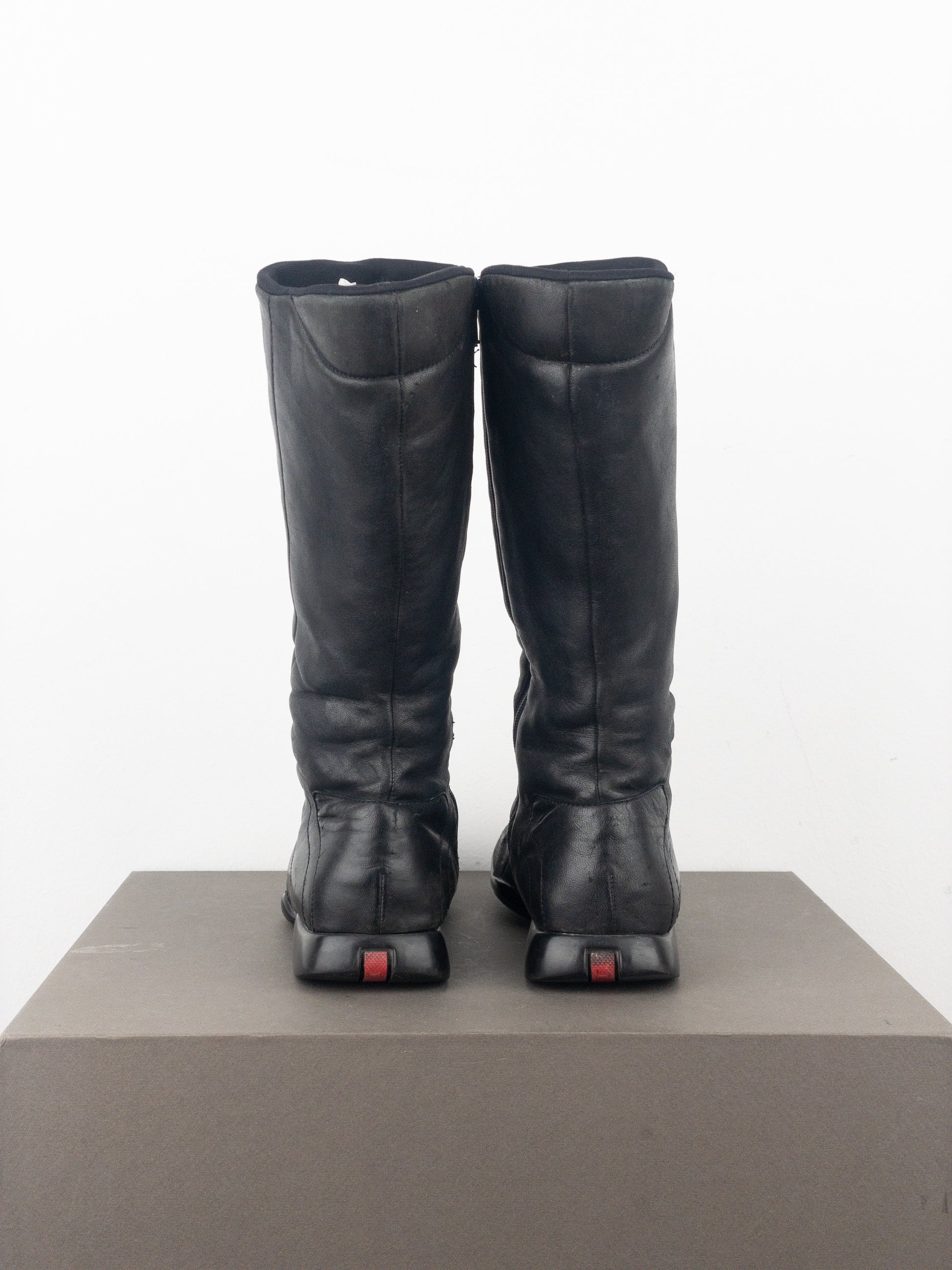Prada AW99 Knee High Square Toe Biker Moto Sports Boots