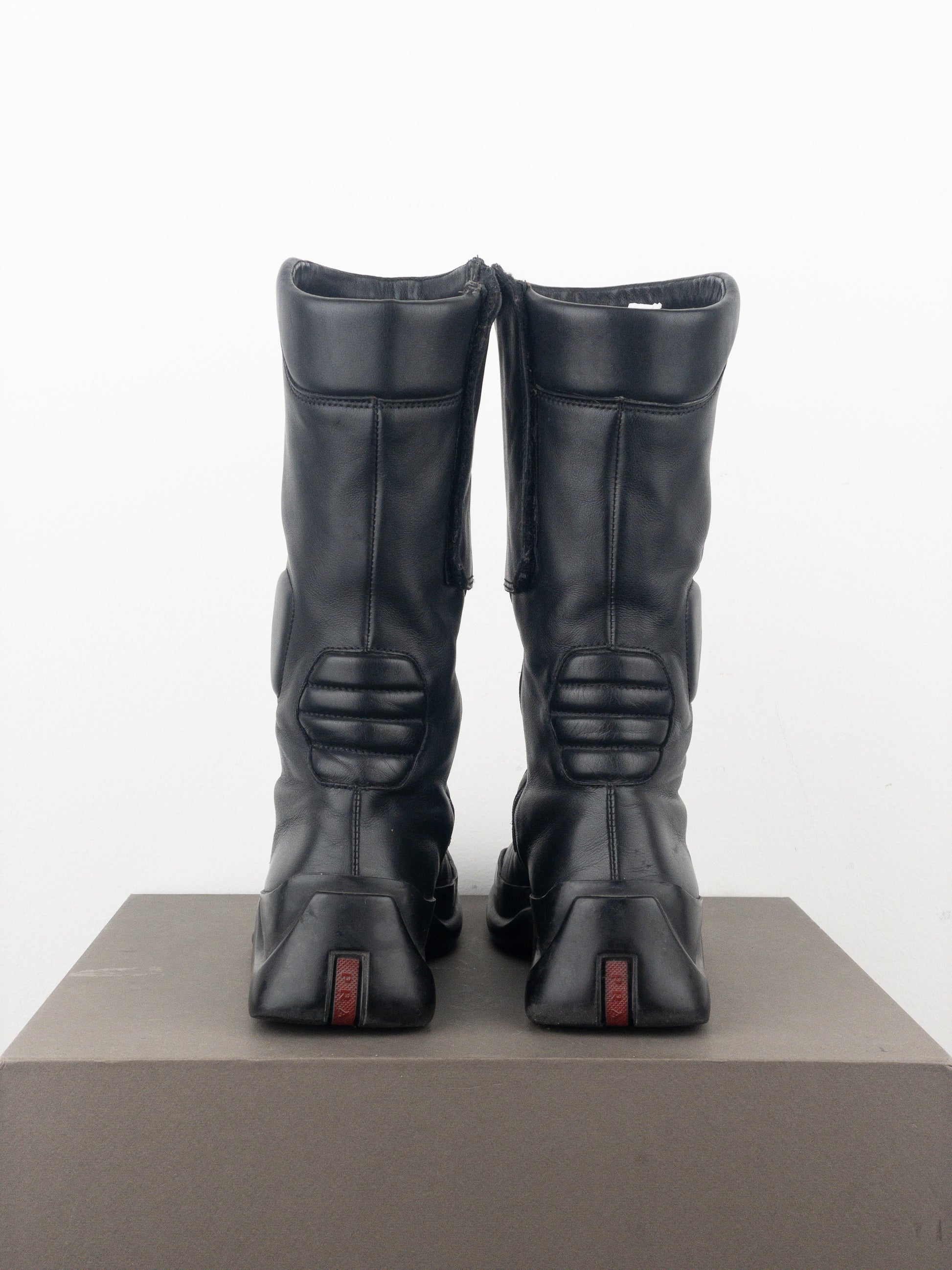 Prada AW99 Mid-Calf Square-Toe Astro Moto Biker Boots