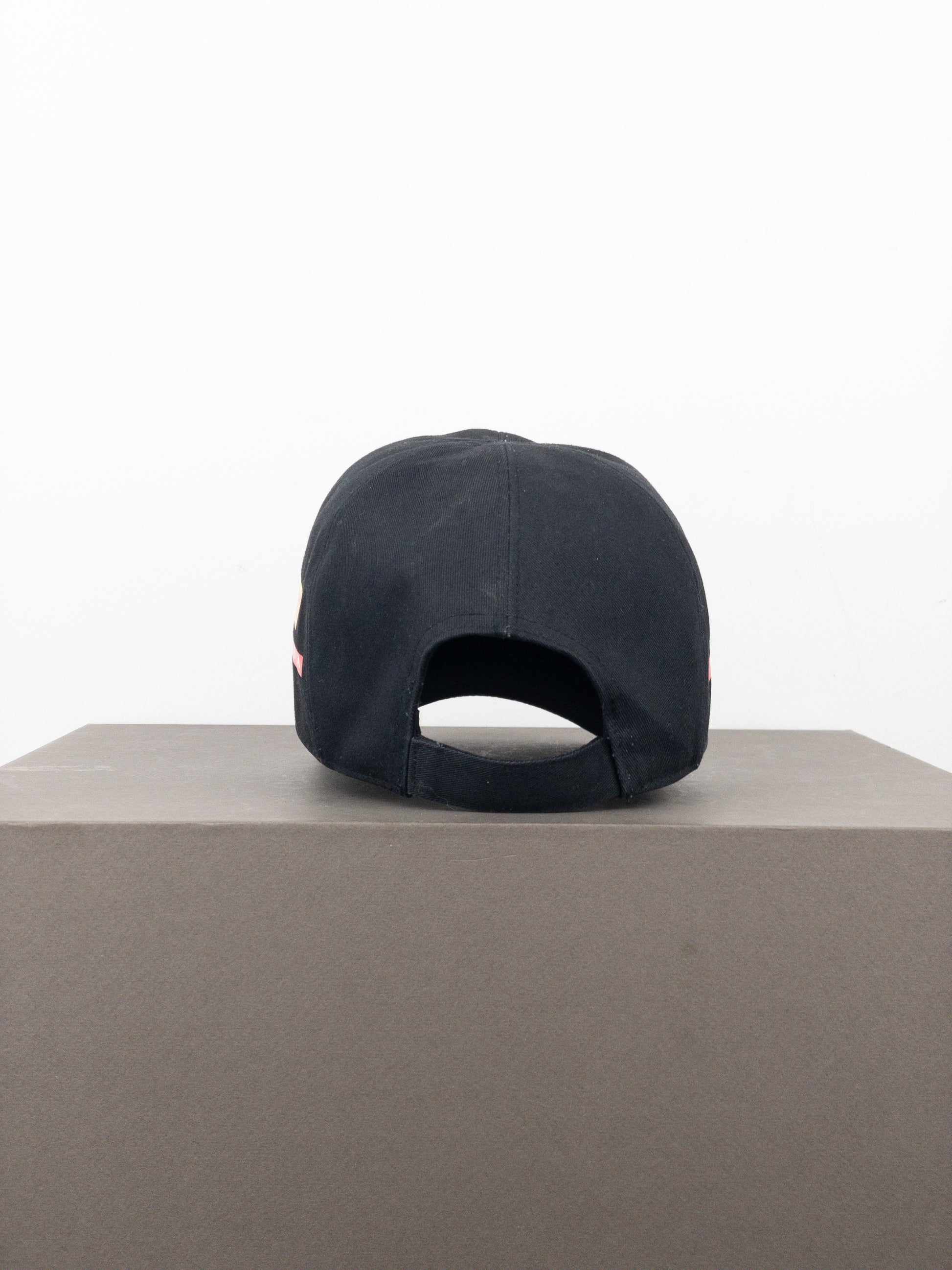 Black baseball cap with the signature “Luna Rossa” and sponsor prints throughout, from the 2023 American Cup sailing race.