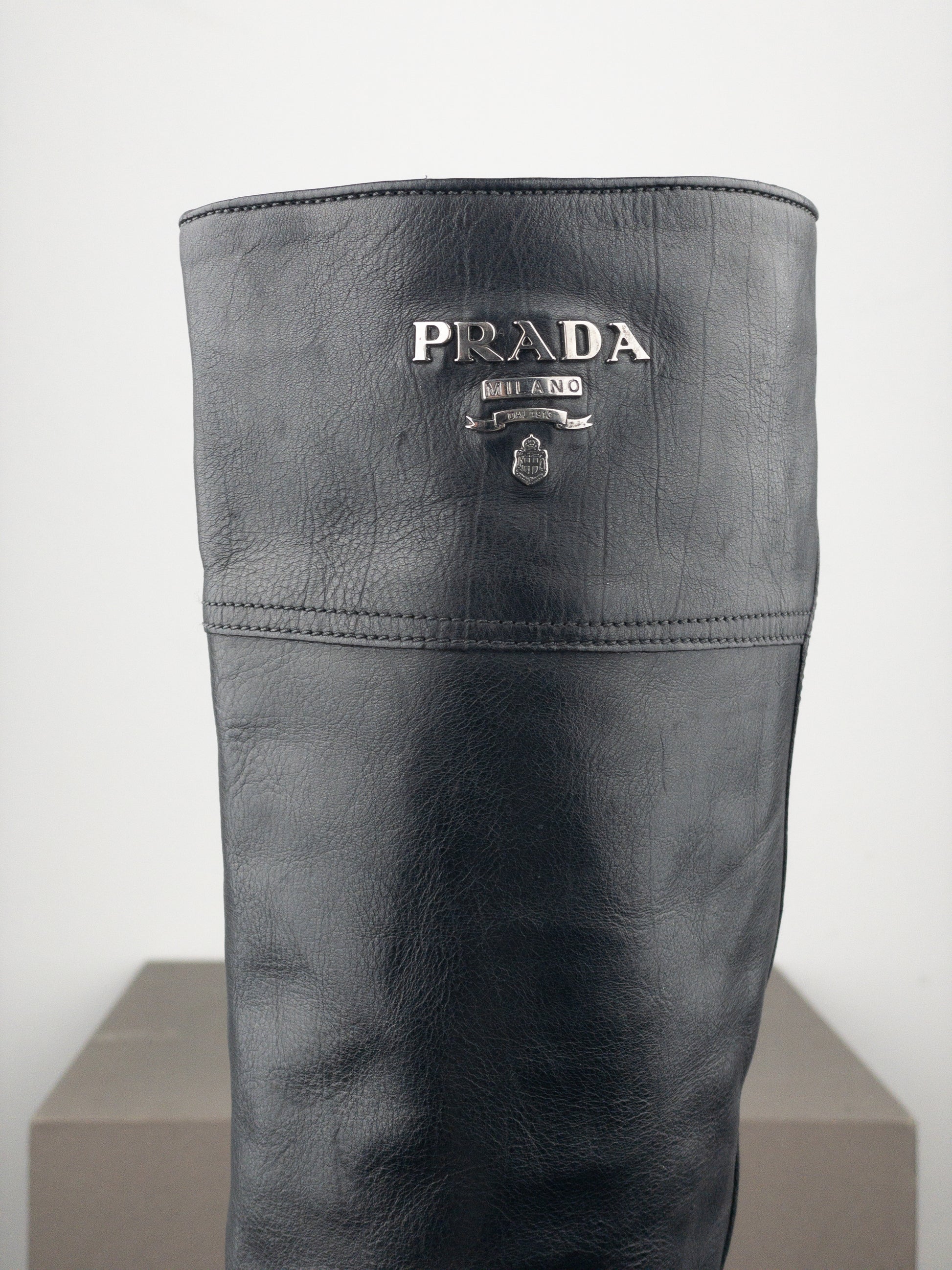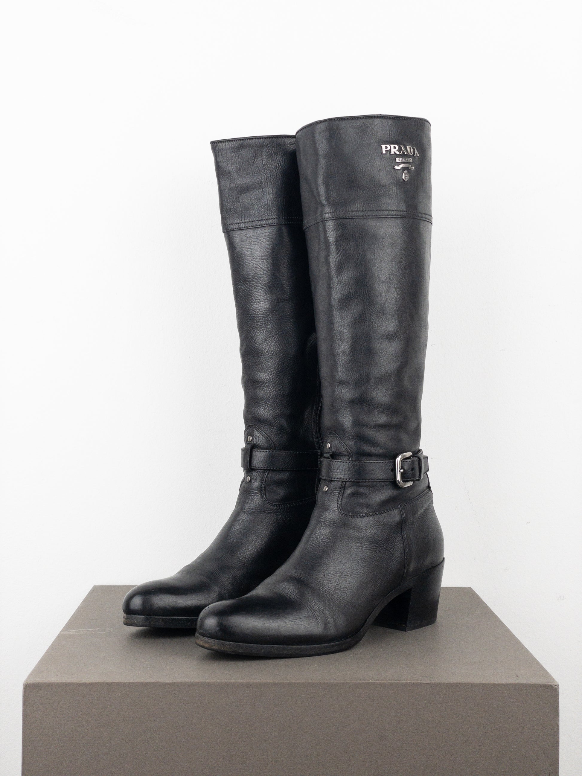 Prada SS06 Knee-High Buckle Biker Riding Boots