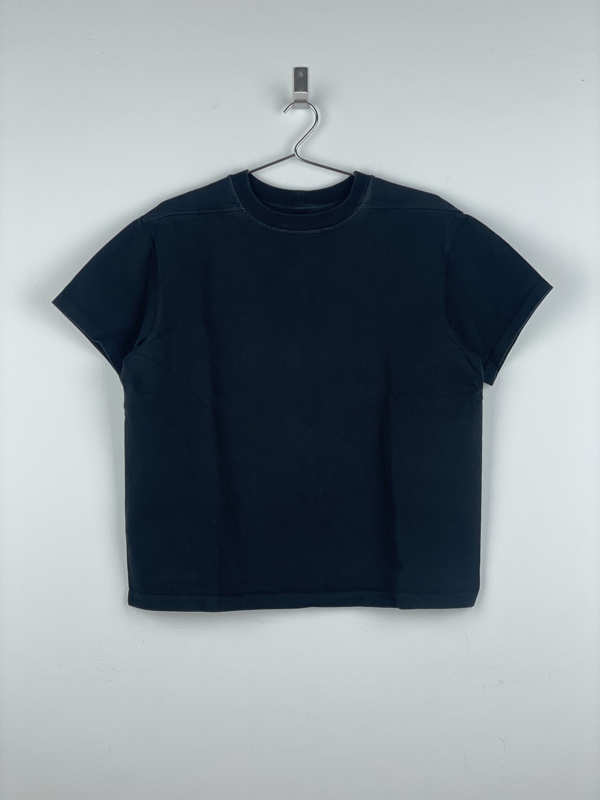 Heavy-weight t-shirt in faded black, featuring the signature “Level” seams across the shoulders and a thick ribbed collar, from the autumn-winter 2020 collection.