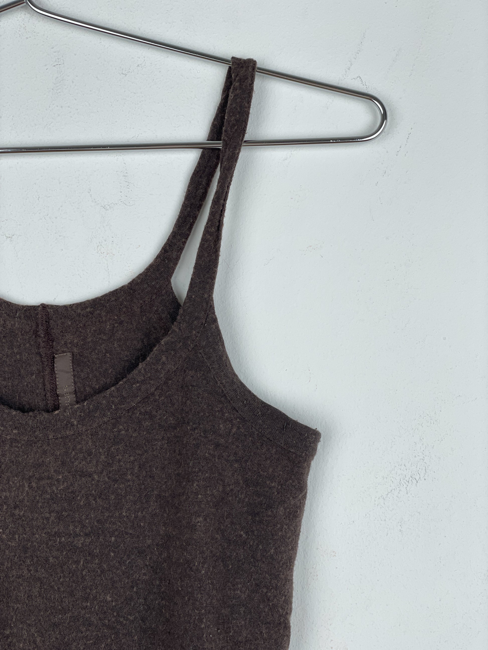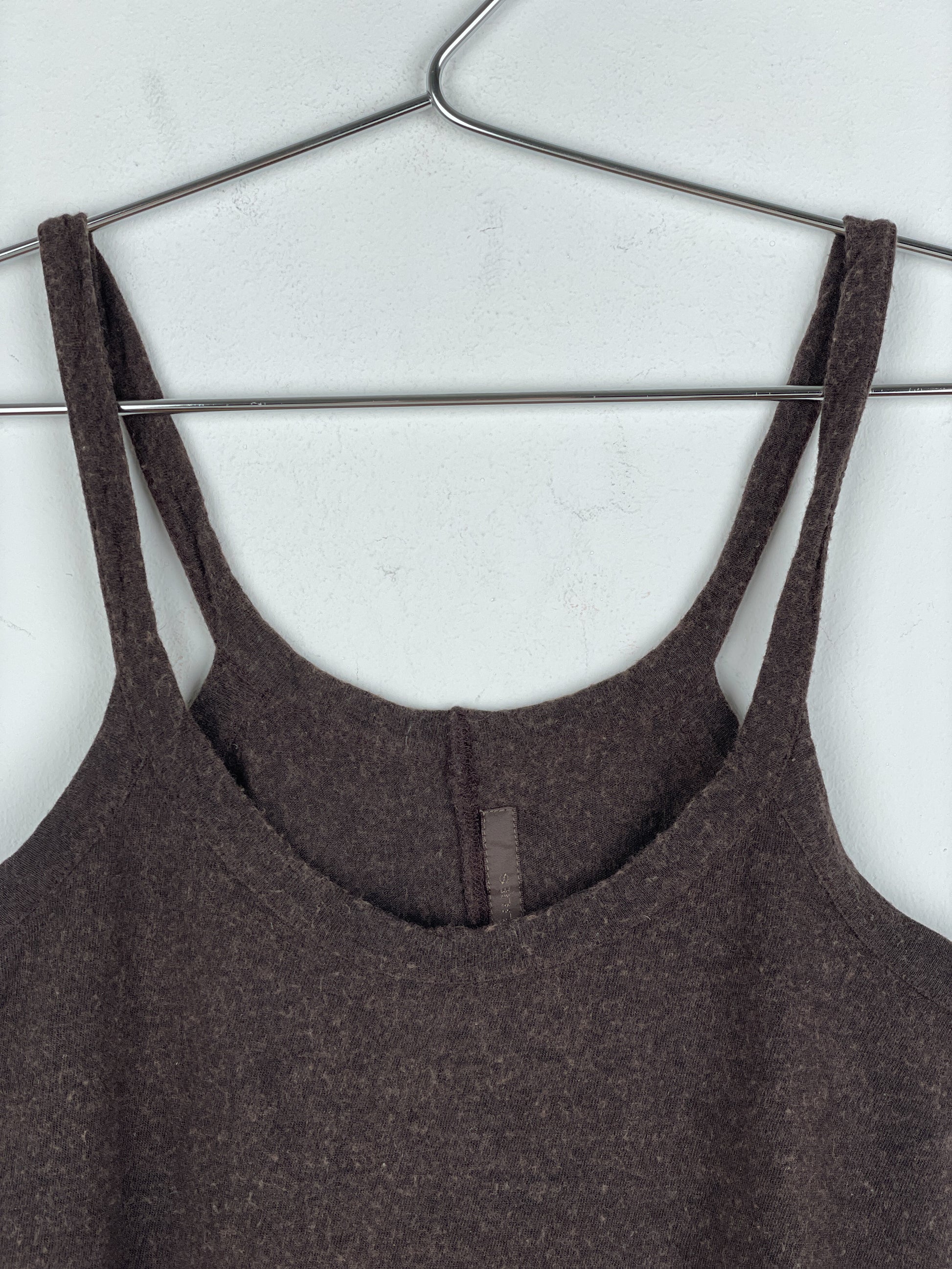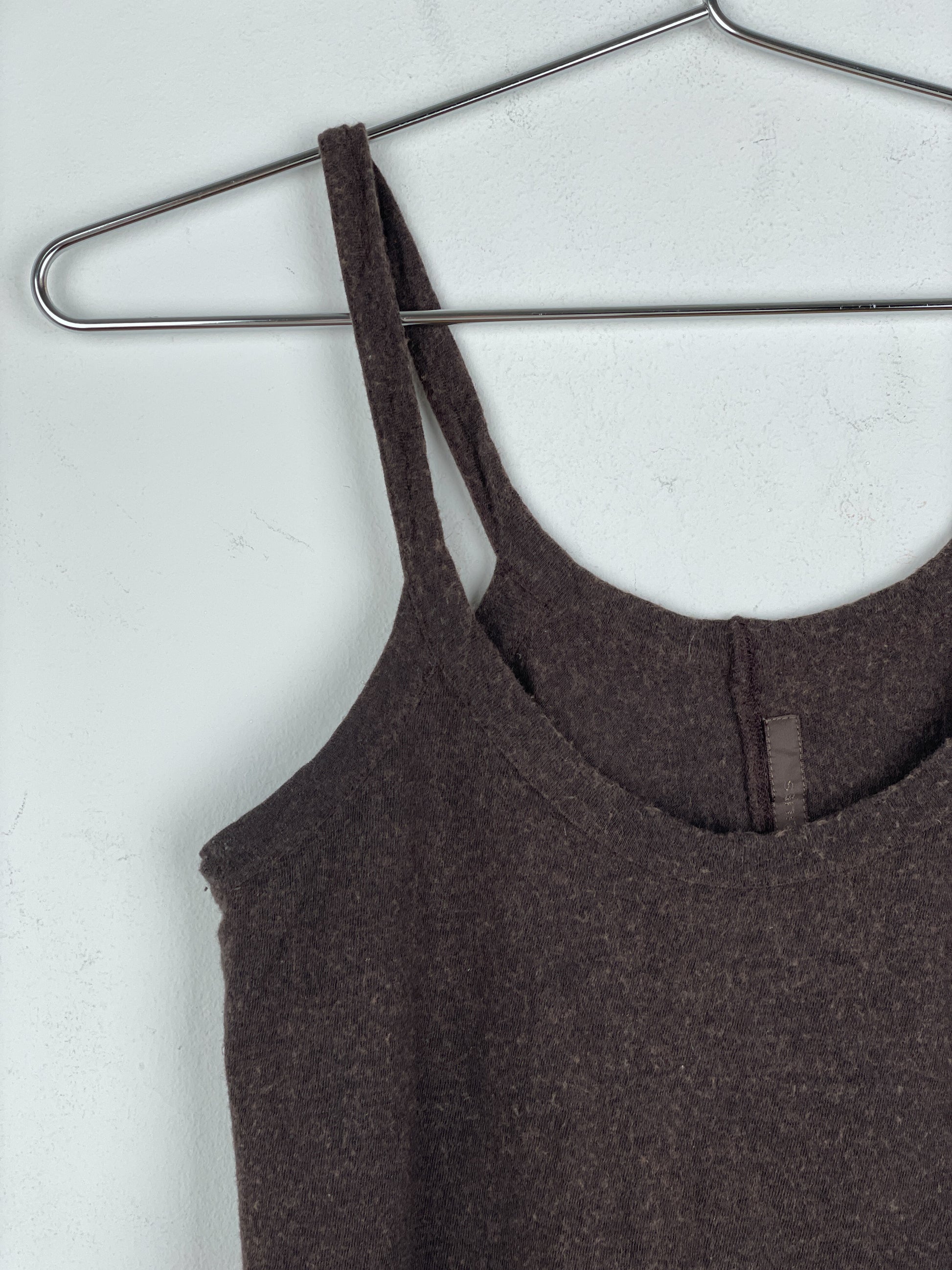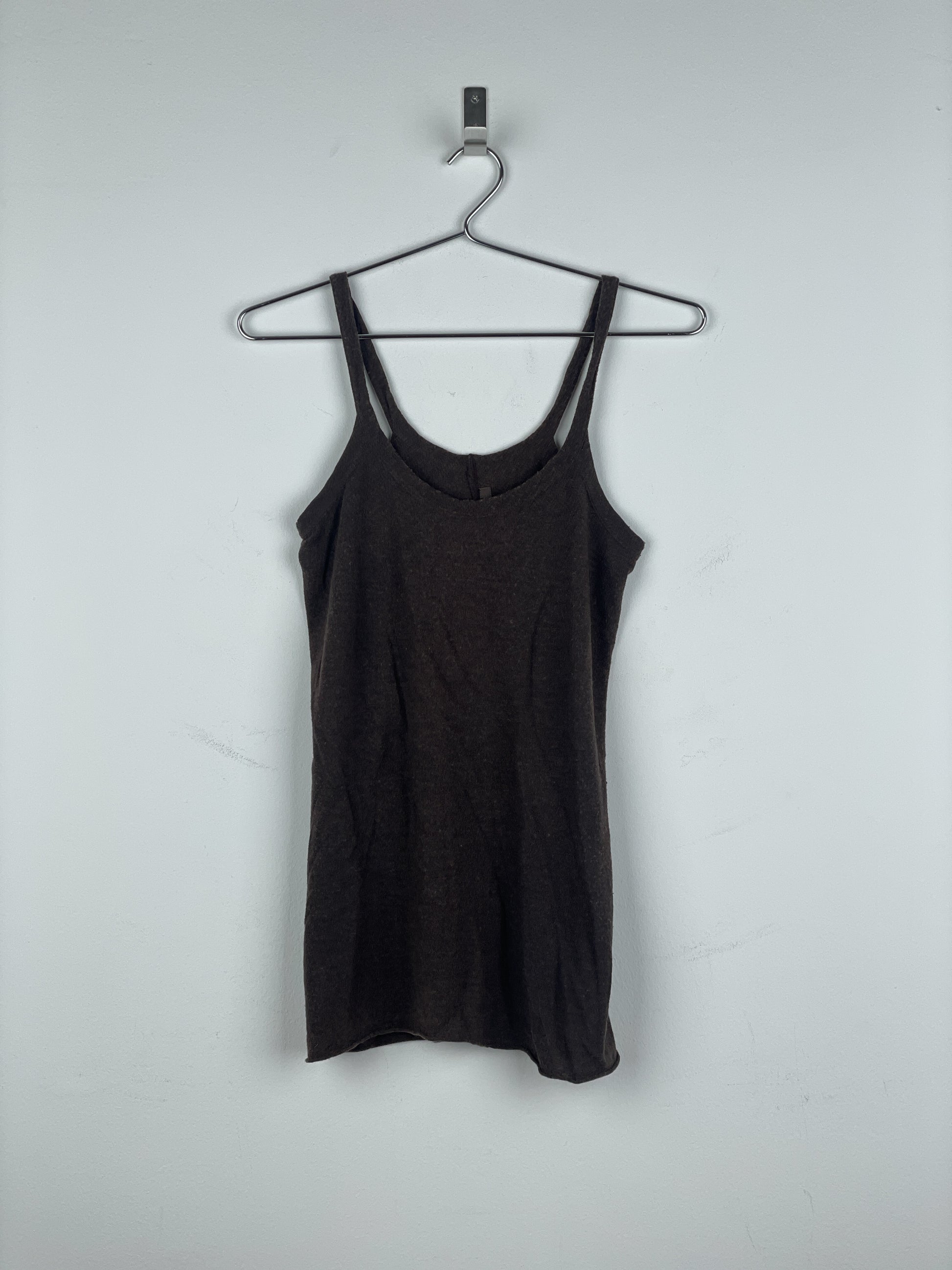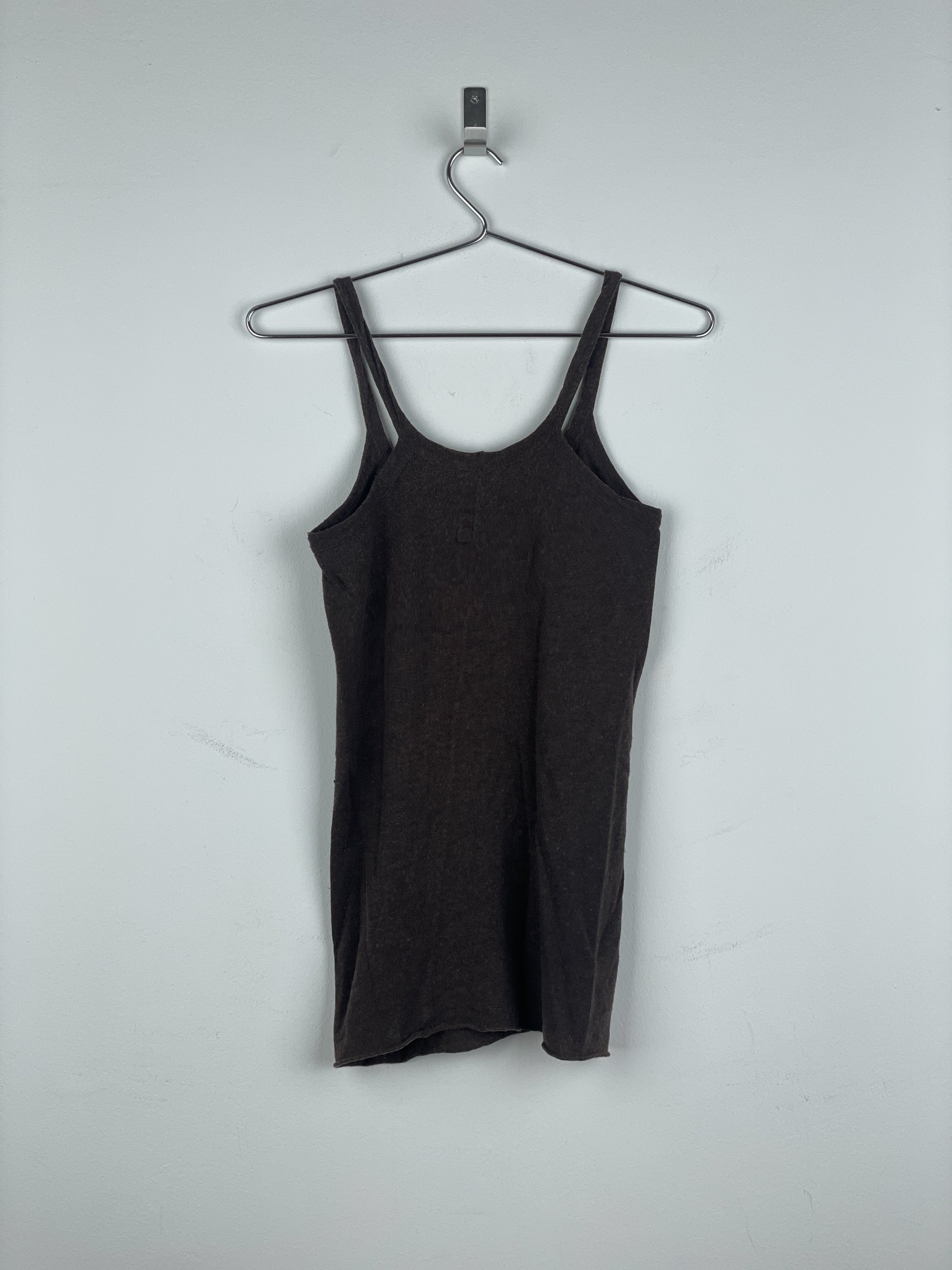 Brown tank top with a ribbed scoop neck, from the spring-summer 2007 collection.